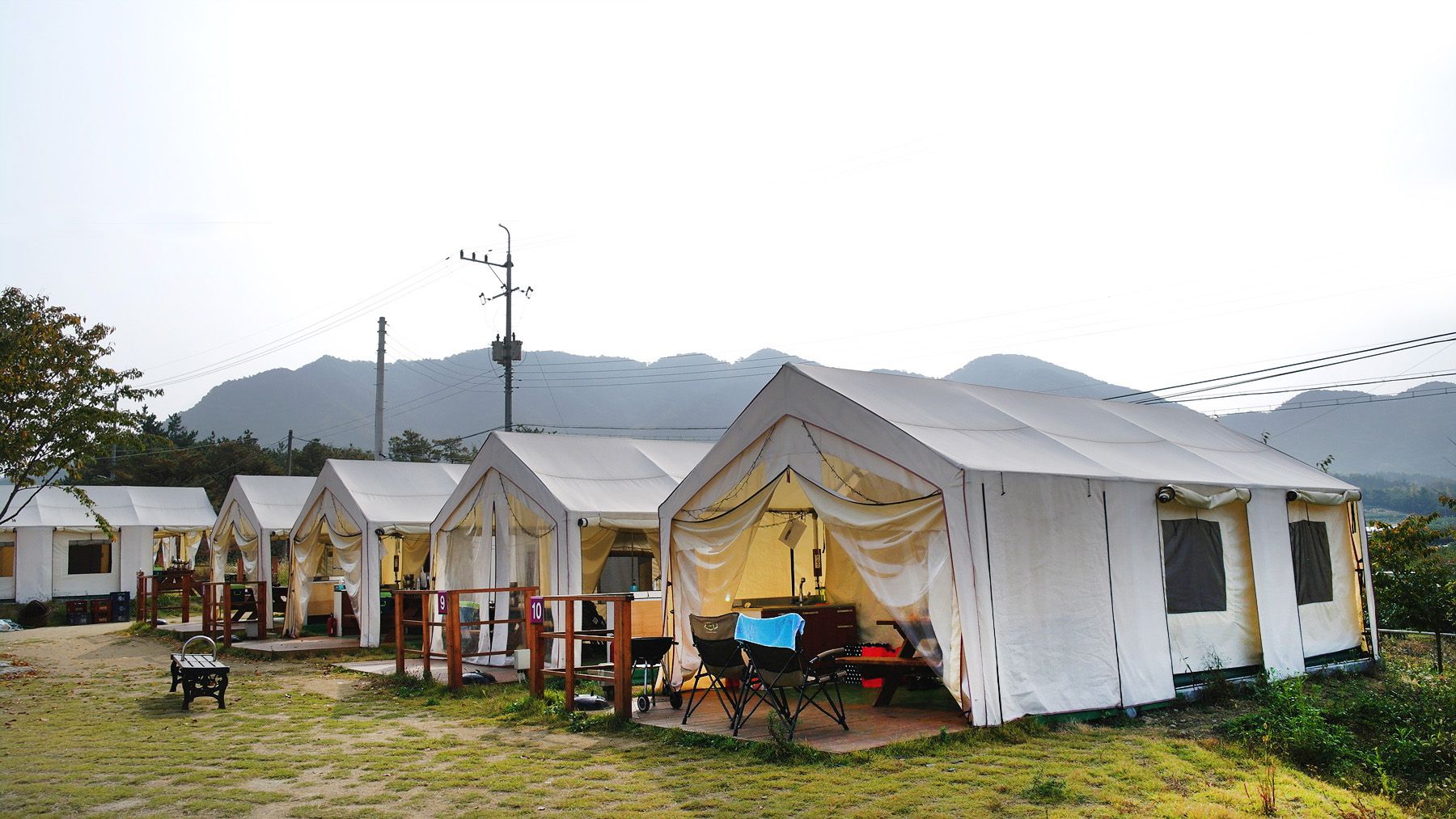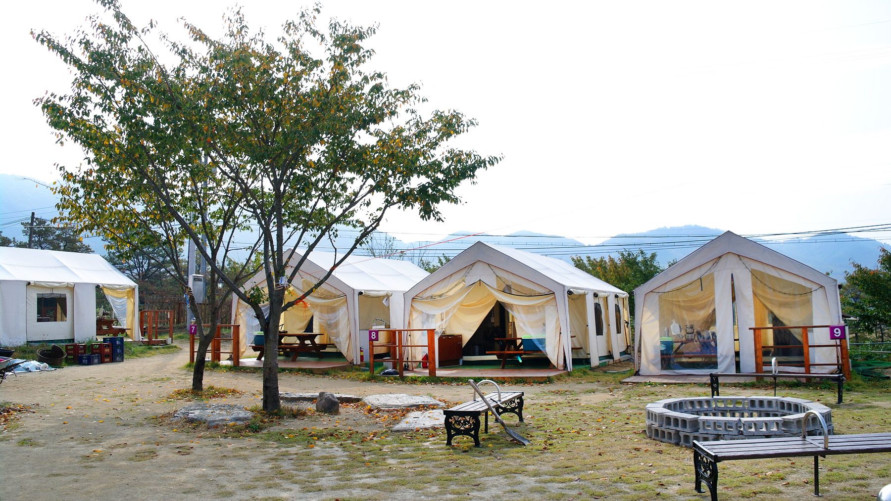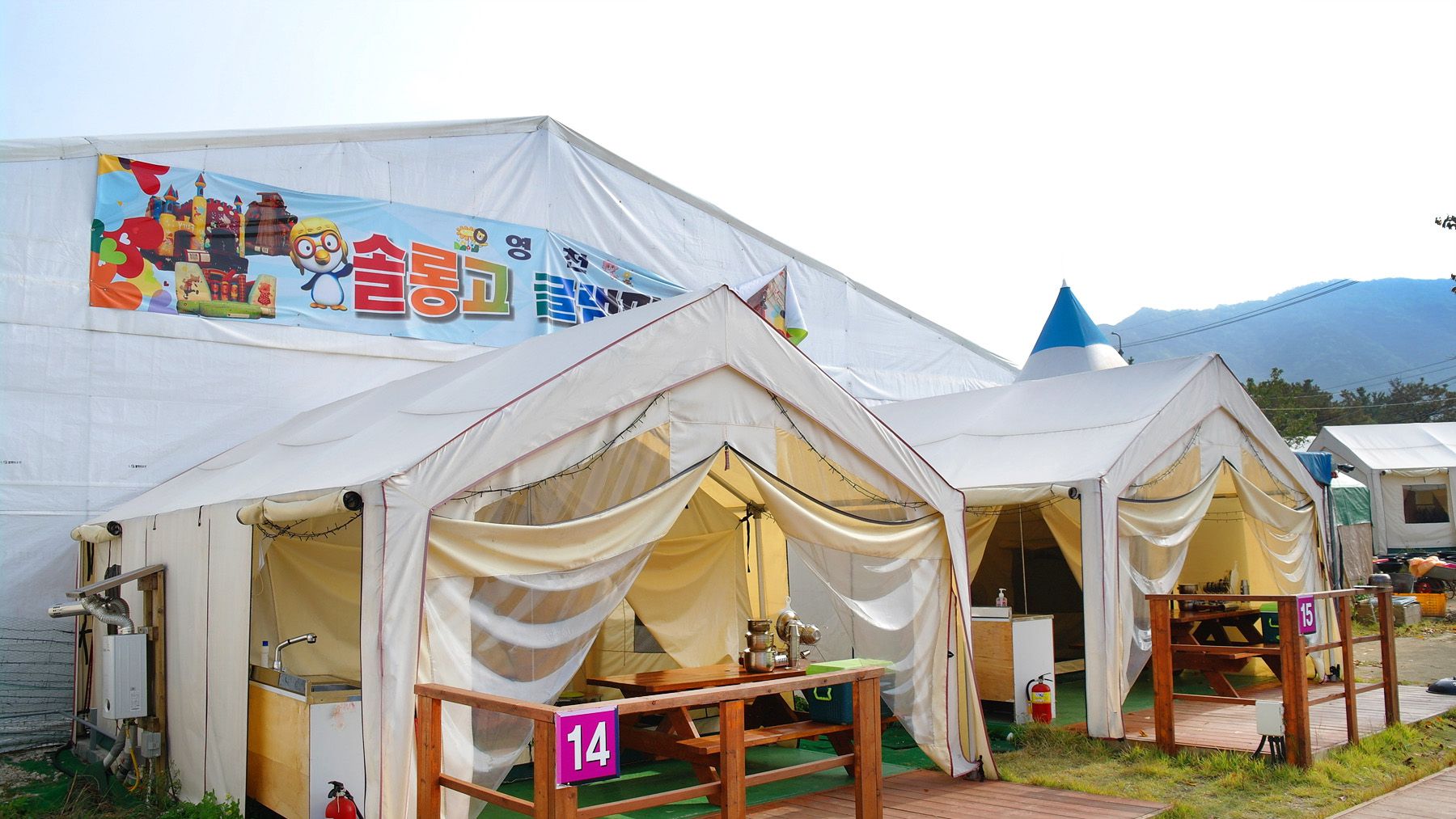 모든 시설을 갖춘 텐트에서 누리는 즐기기 좋은 솔롱고캠핑장은