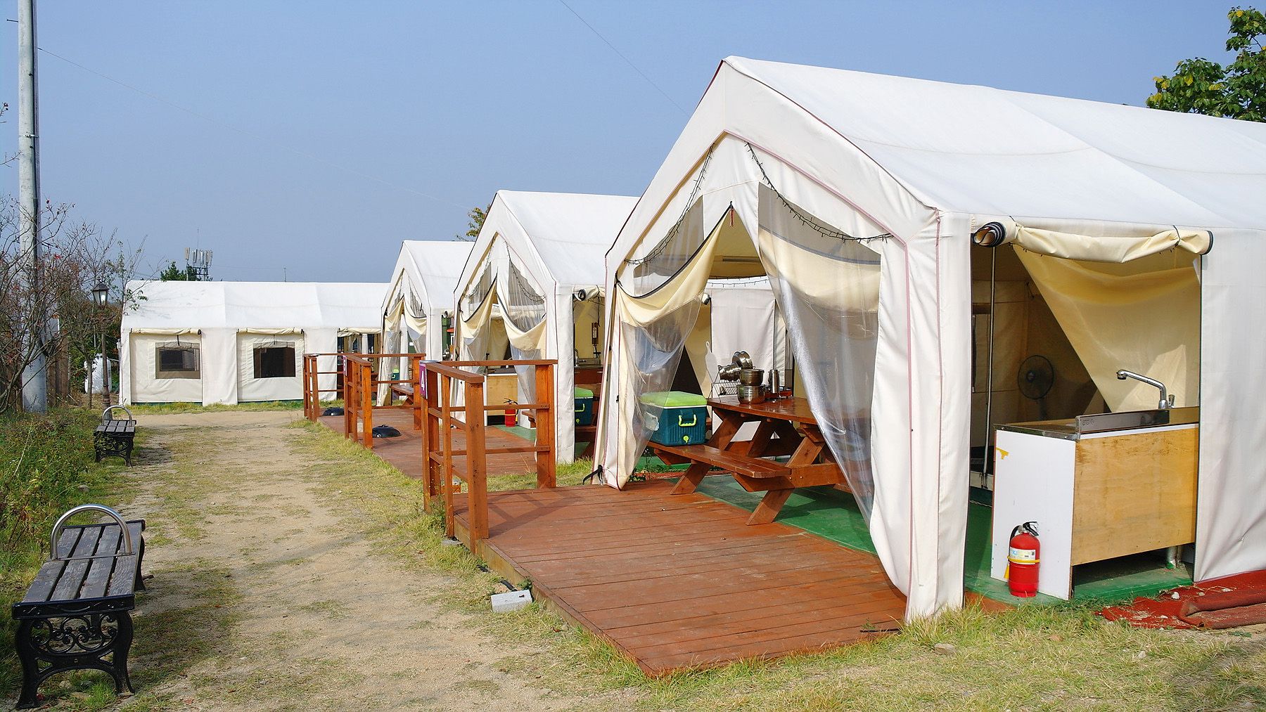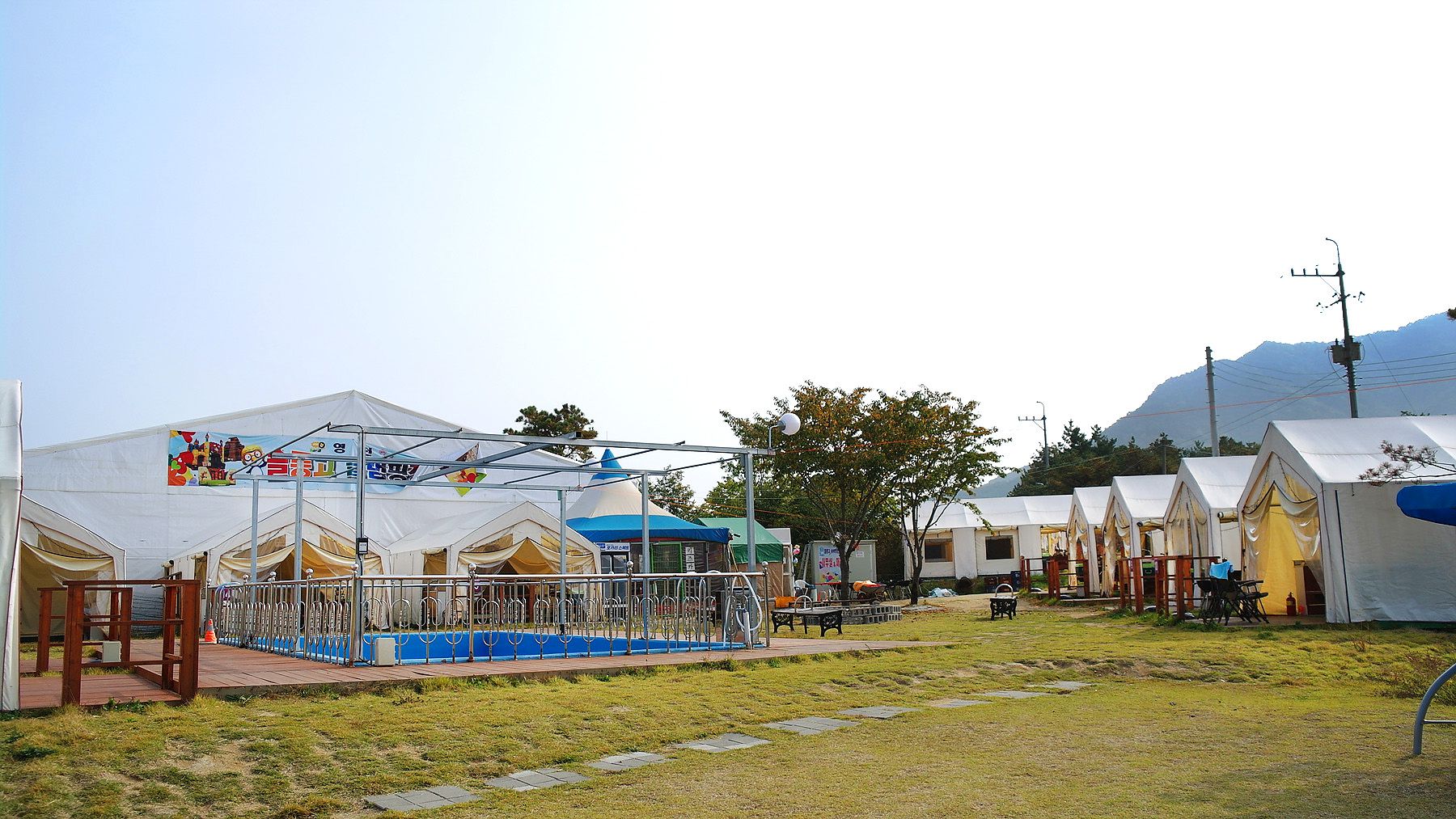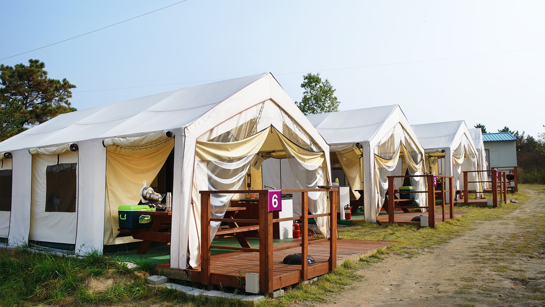 모든 시설을 갖춘 텐트에서 누리는 즐기기 좋은 솔롱고캠핑장은