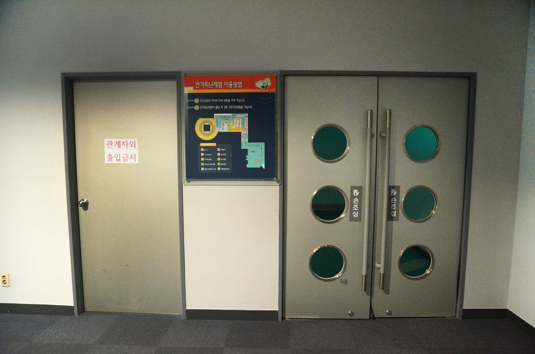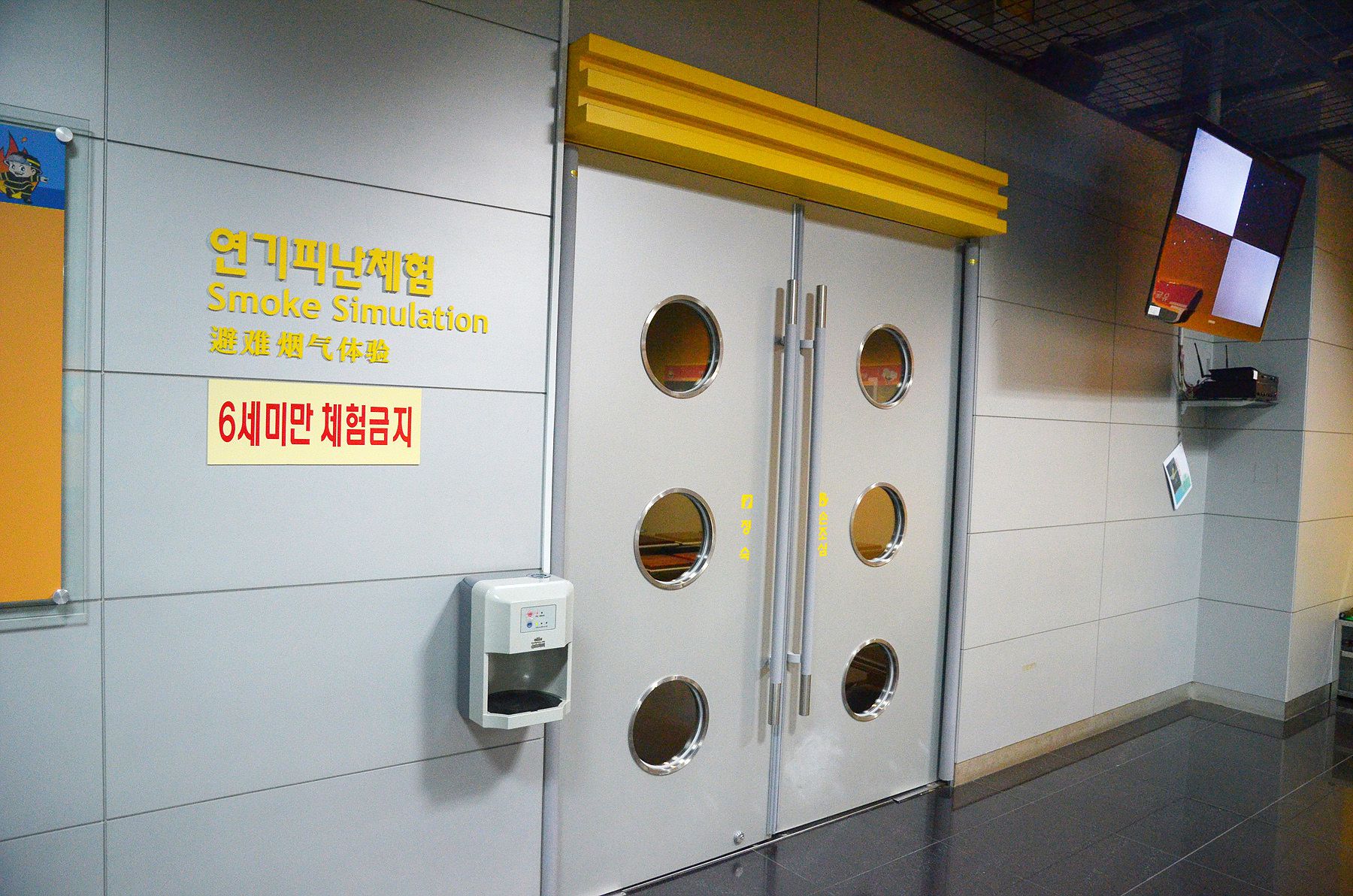 연기피난체험은 화재발생 시 어둡고 연기가 가득한 실내에서 피난할 때의 행동요령을 배워보는 곳으로,