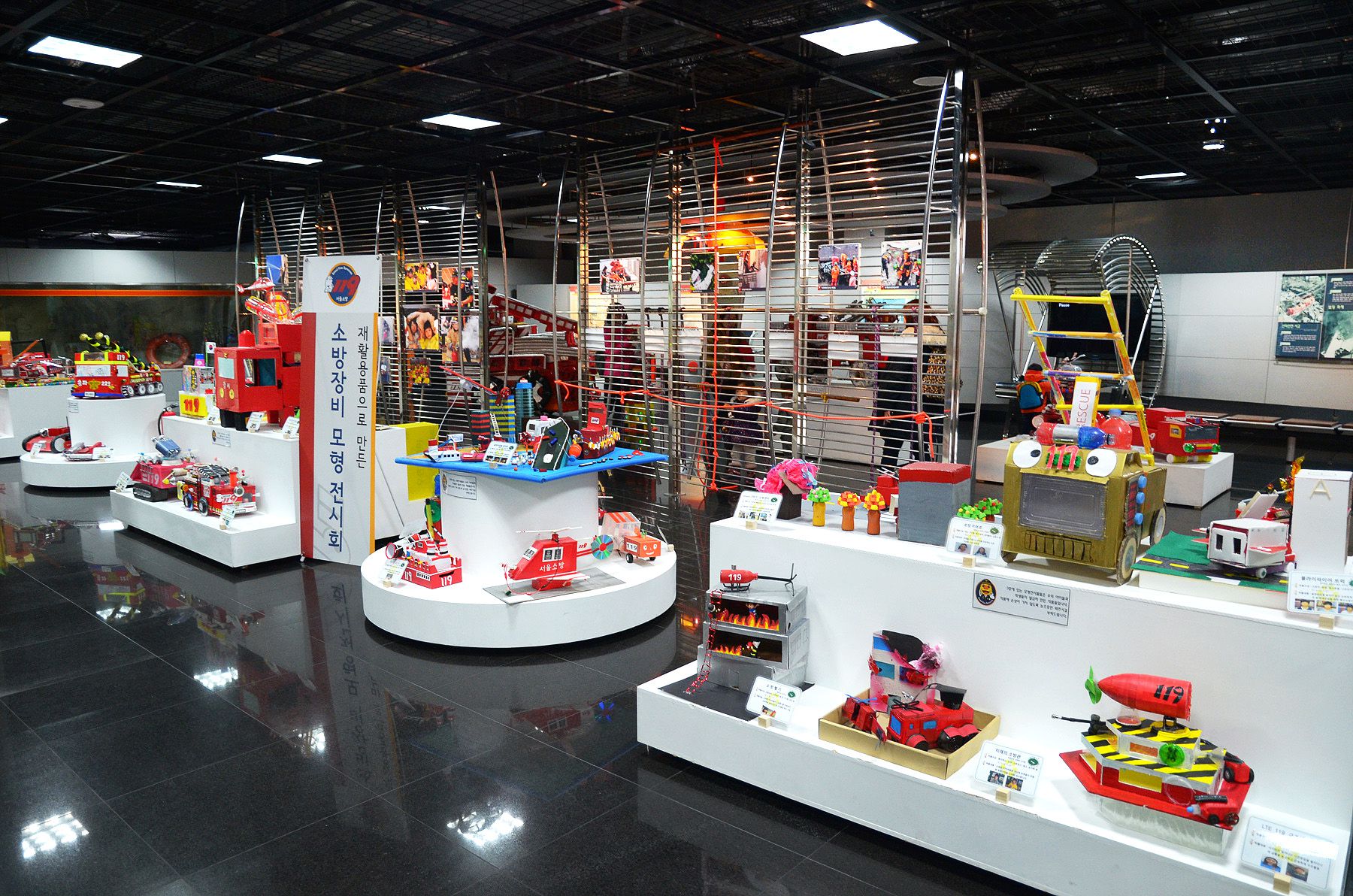 재활용품을 이용해 독창적으로 만든 소방 장비 모형들은 보는 즐거움도 함께 선사합니다.