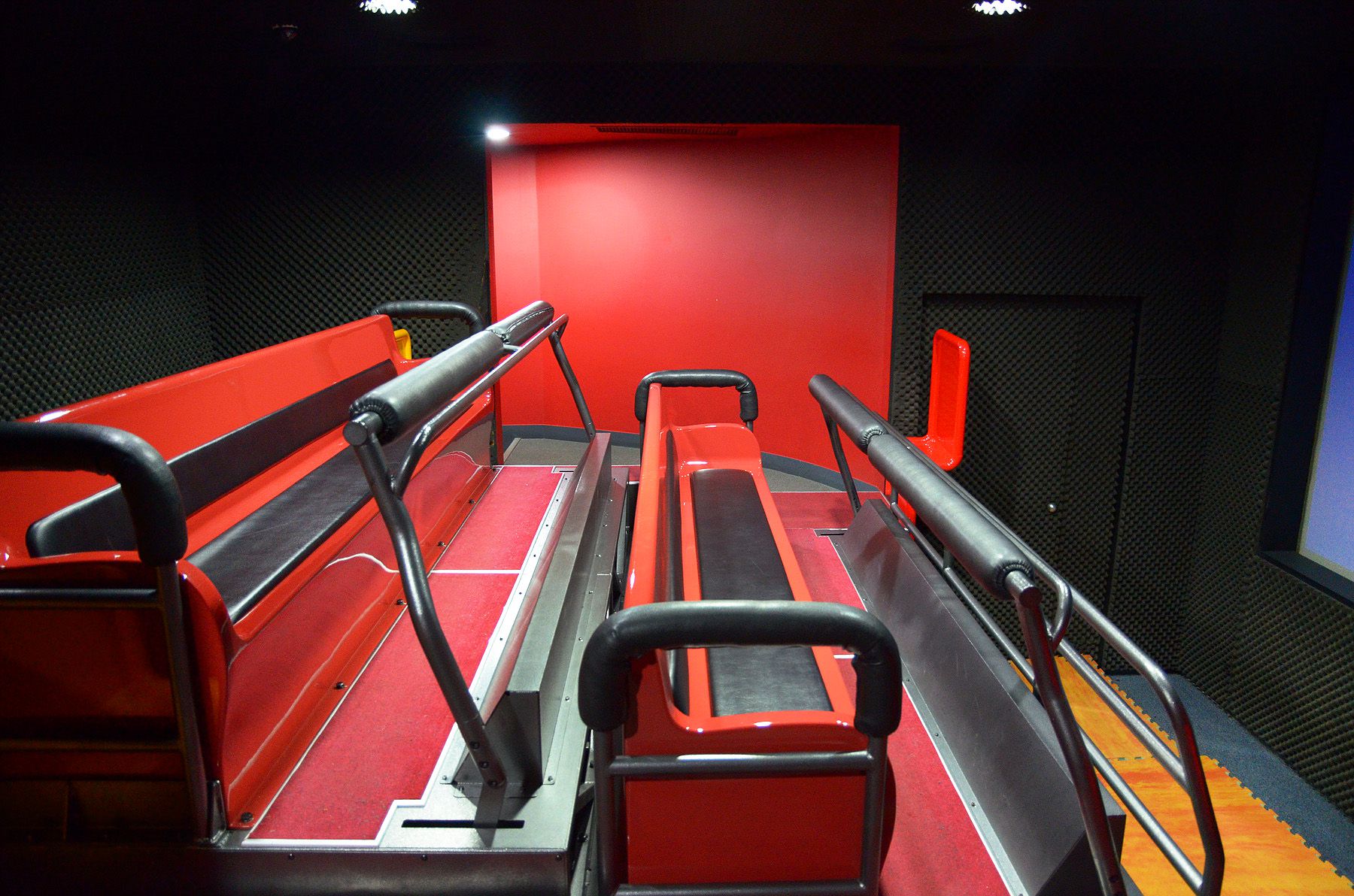 움직이는 의자에 앉아 소방관 아저씨가 불 끄는 모습을 함께 따라가며 직접 불을 끄는 것처럼 체험할 수 있습니다.