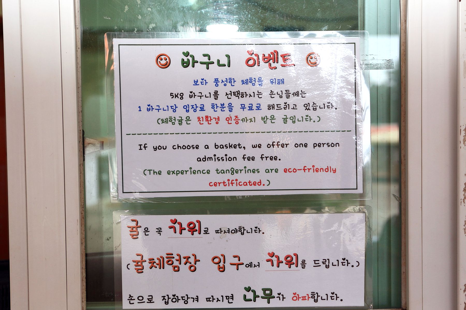 본인이 딴 귤은 비용을 지불하고 가지고 가실 수 있습니다.