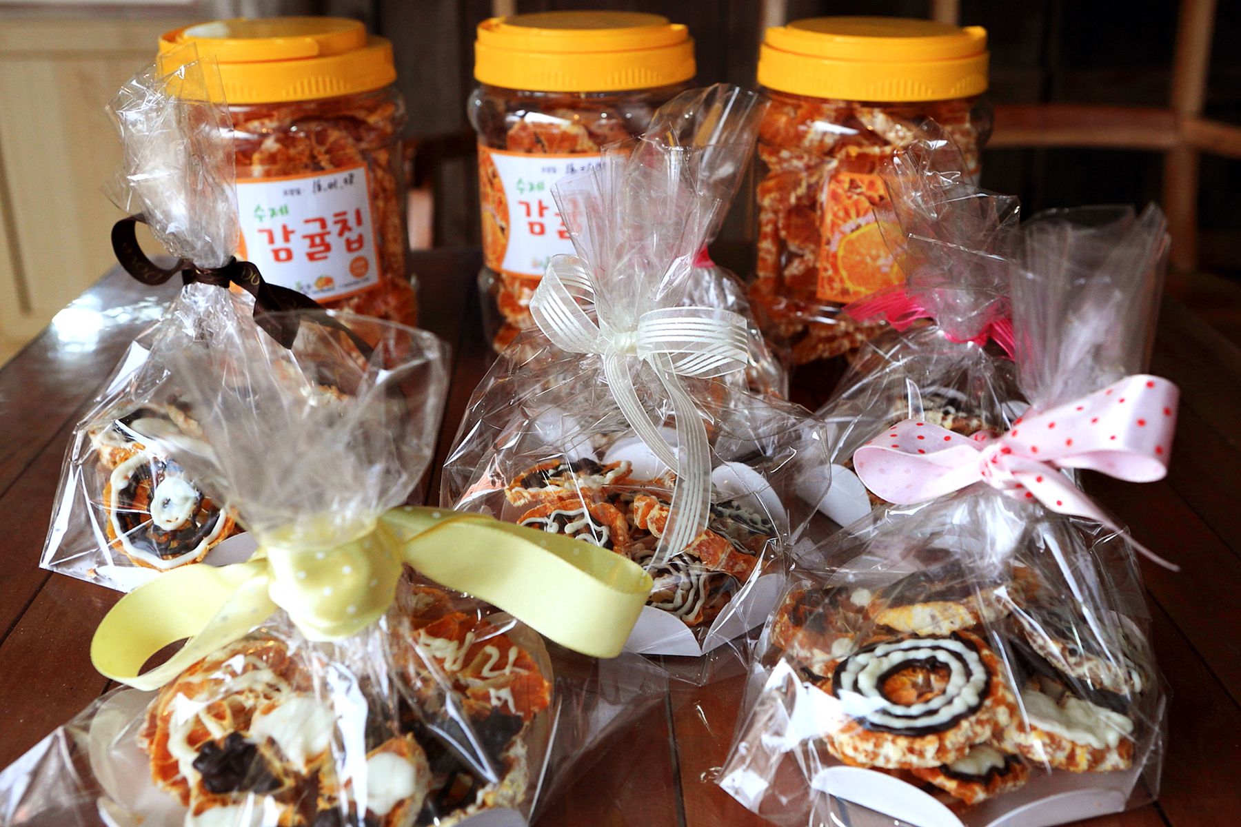 귤을 말려 초콜릿으로 장식하여 간식으로 좋은 감귤칩도 만들어 보시면 즐거운 추억이 될 것 같습니다.