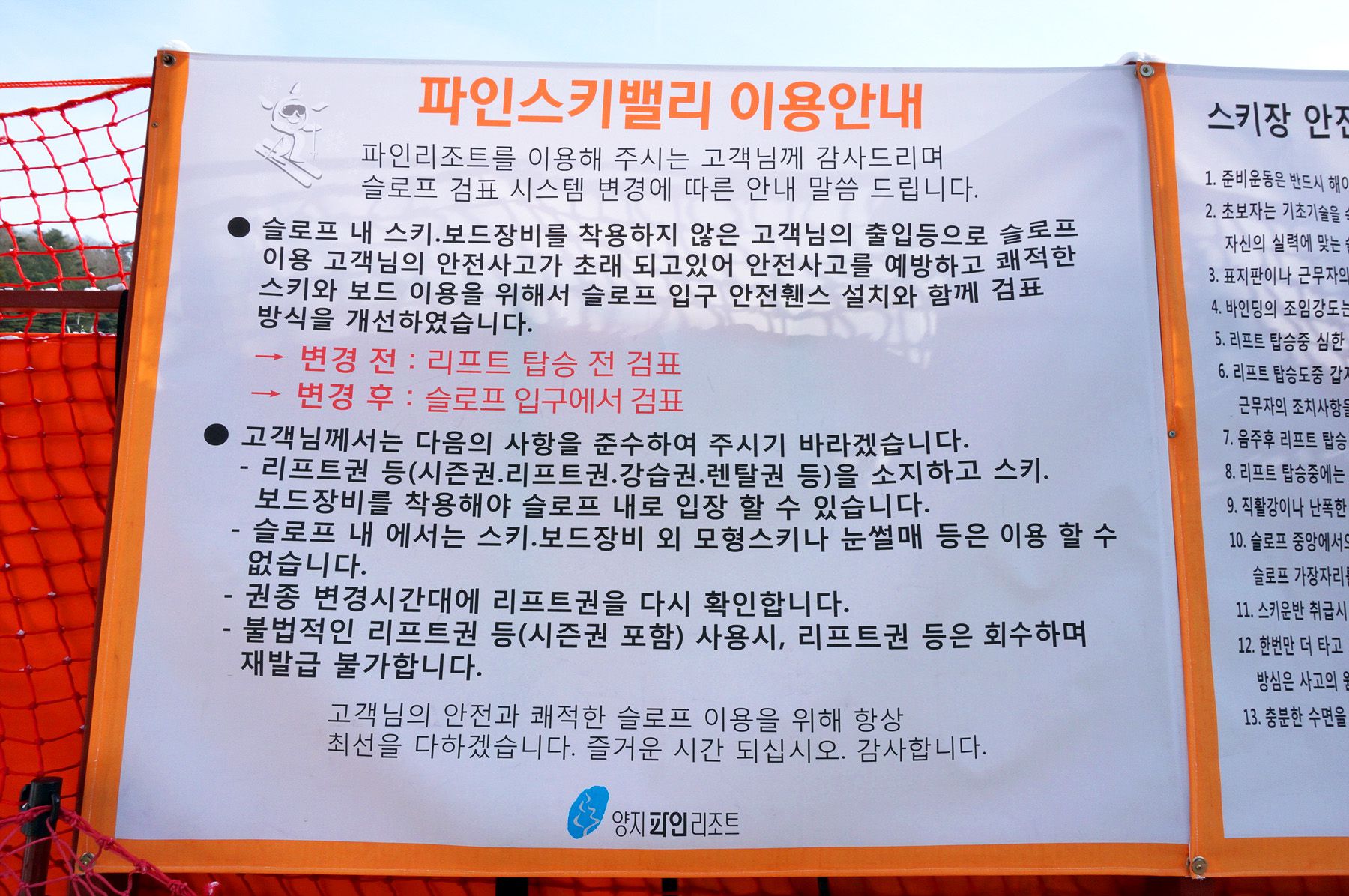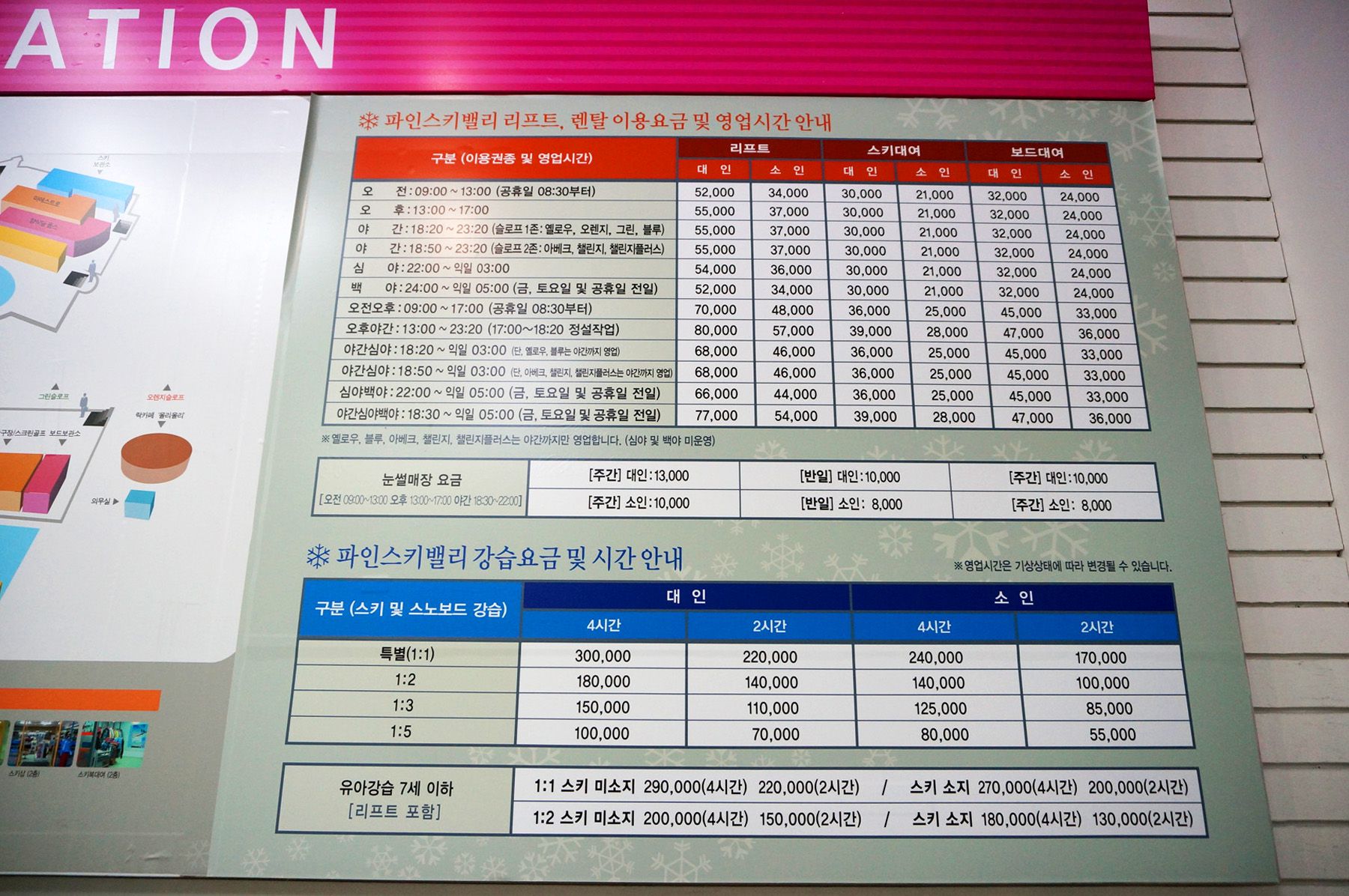 종합안내실에서 파인스키밸리 리프트, 렌탈 이용요금 및 영업시간을 확인할 수 있습니다.