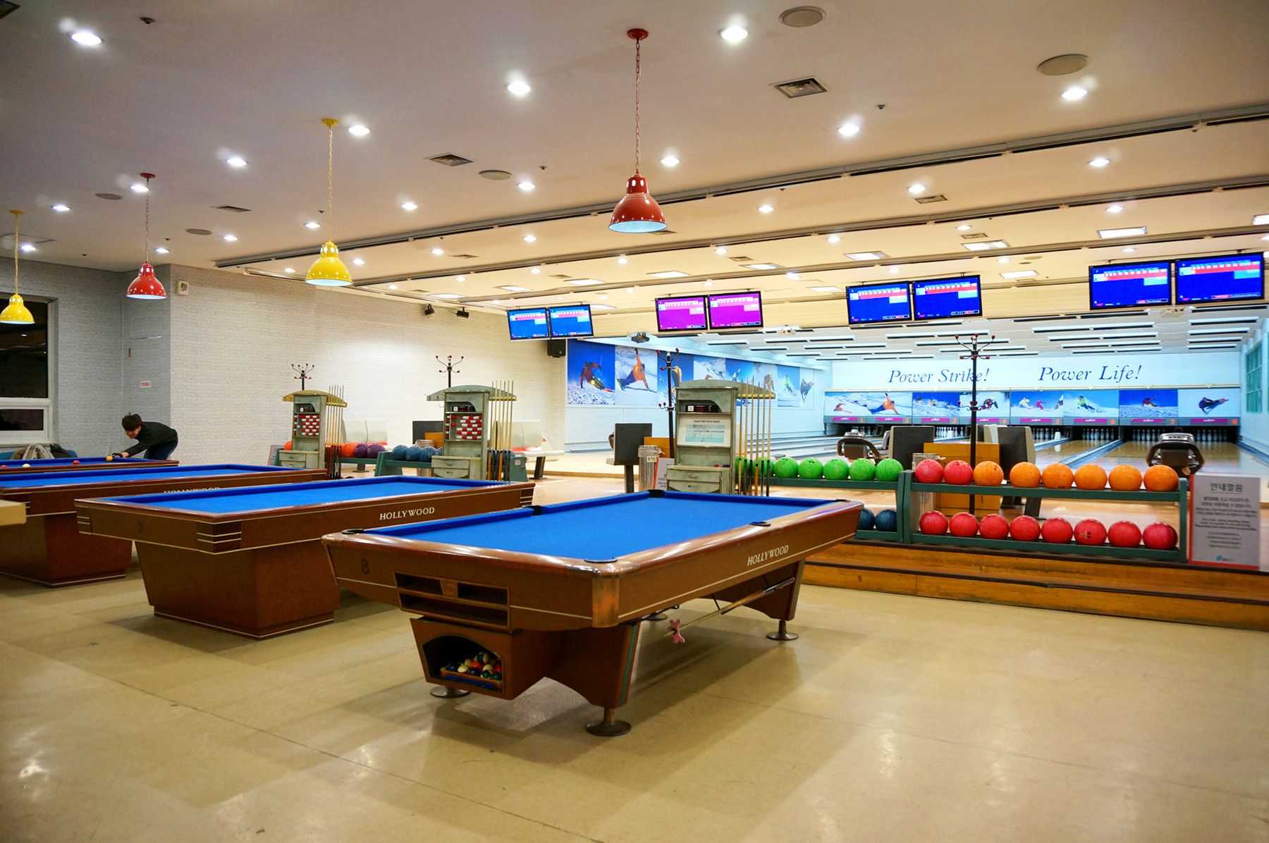 스넥동 1층에는 컴퓨터 게임장, 노래방, 볼링장, 당구장 등의 각종 오락시설도 갖추고 있습니다.