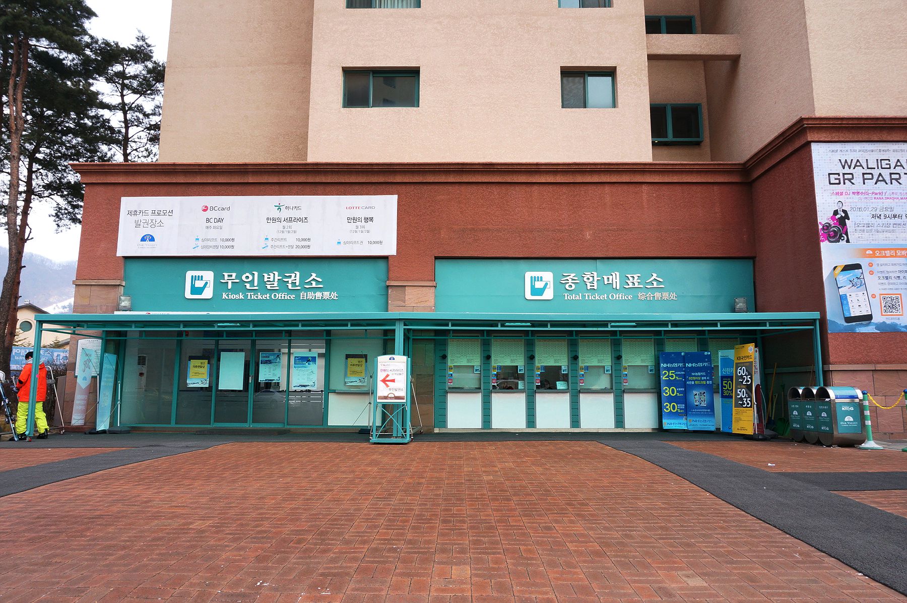 스키 콘도 1층에 종합 매표소와 무인 발권소가 있어 쉽게 찾을 수 있습니다.