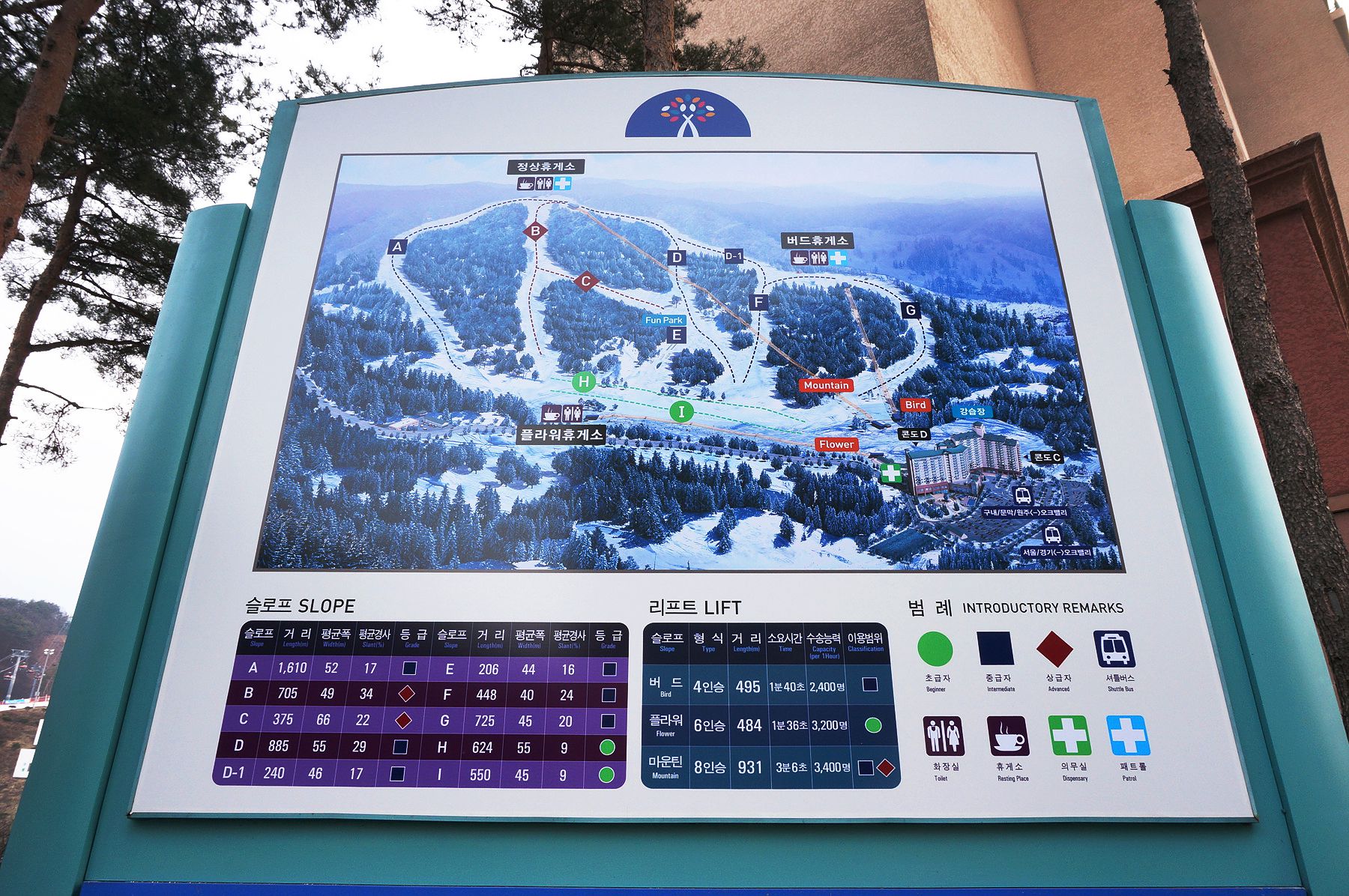 초급 2코스, 중급 5코스, 상급 2코스 총 9개의 슬로프가 구성되어 있어