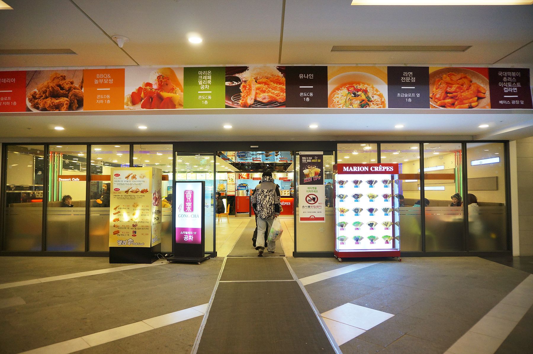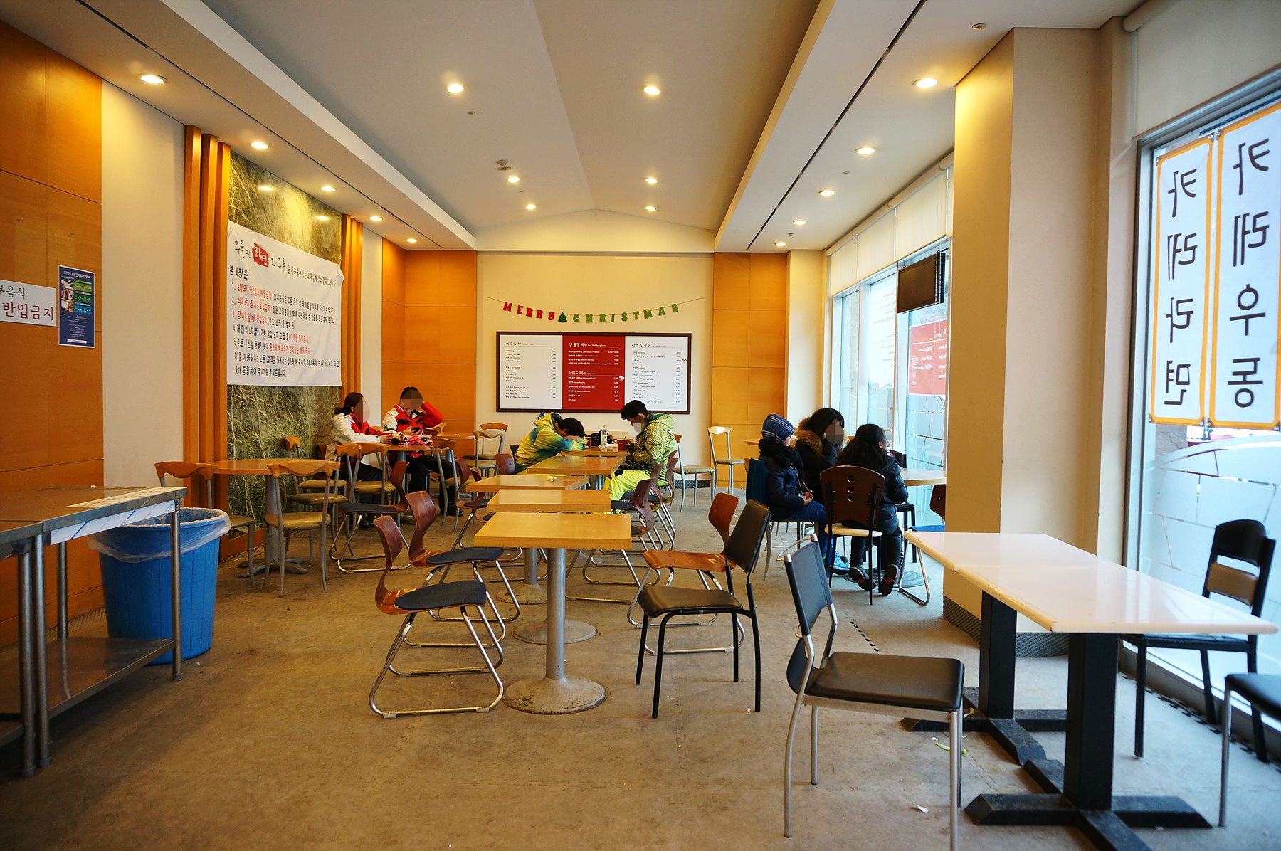 스키빌리지 C, D 콘도 1, 2층, 지하 곳곳에 카페테리아부터 디저트 카페, 롯데리아, BBQ 치킨, 놀부보쌈, 분식 등의 다양한 푸드코트가 마련되어 있어