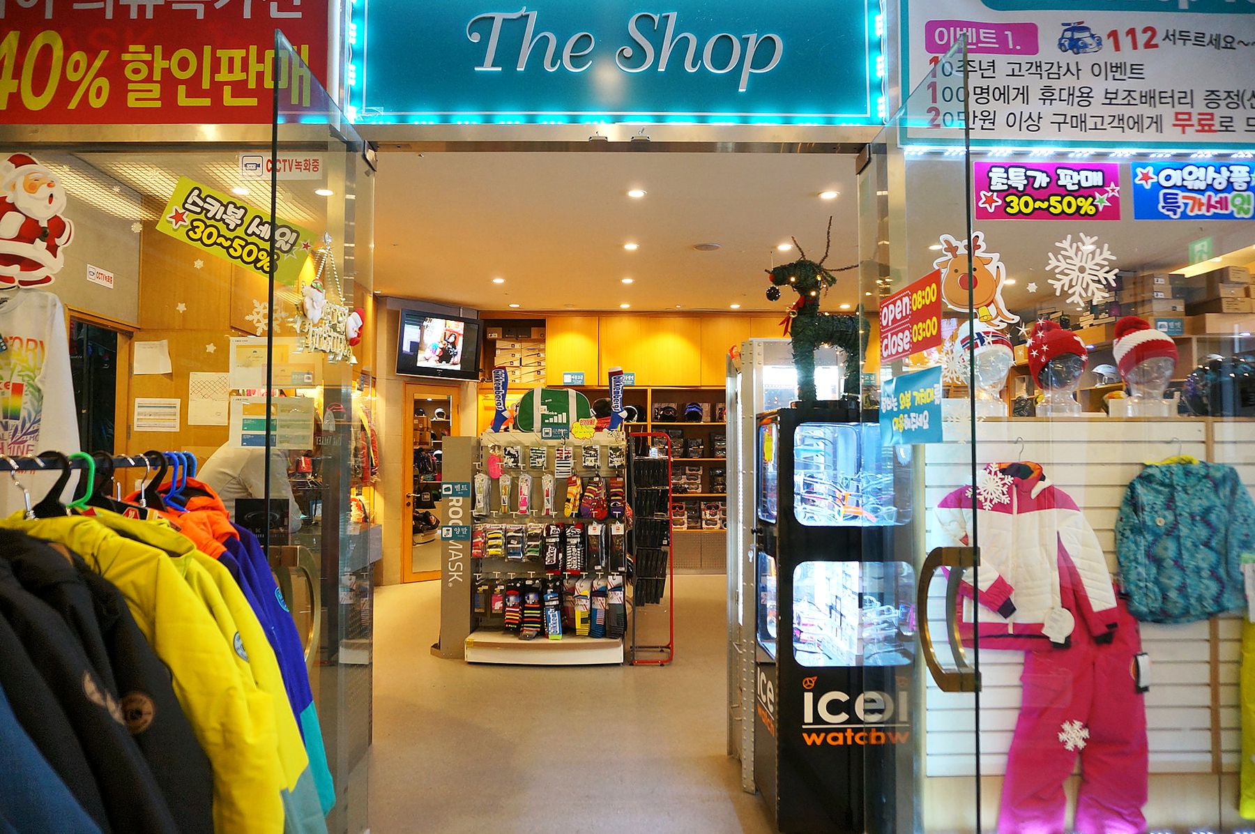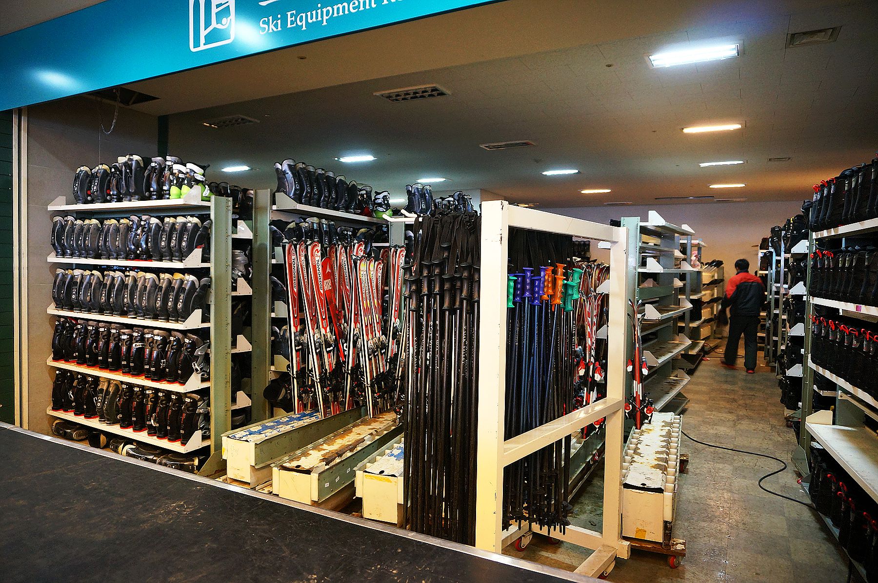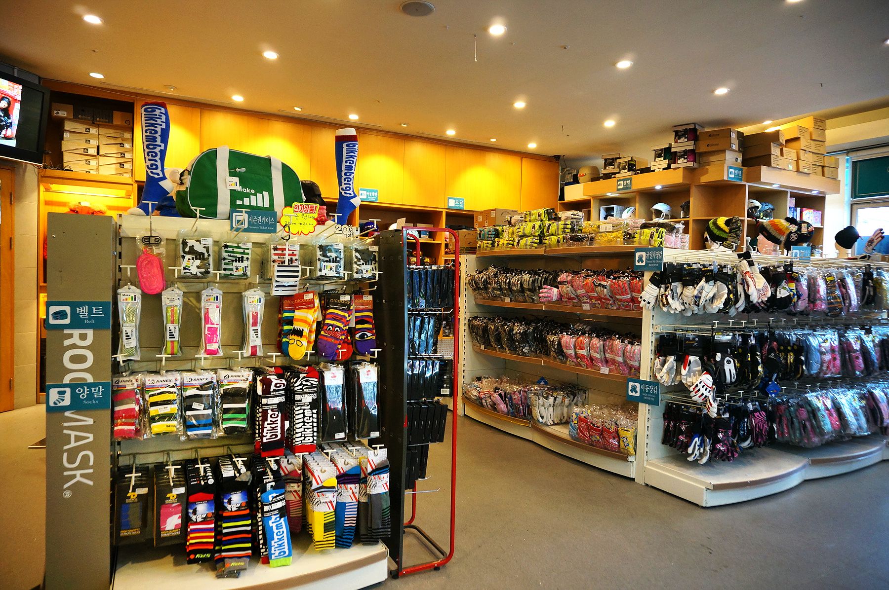스키 콘도 C동 1층 내부에는 스키/보드 장비 렌탈샵과 스키/보드 수리실, 스키복 대여점, 스키/보드 장비 판매샵 등의 시설이 마련되어 있습니다.