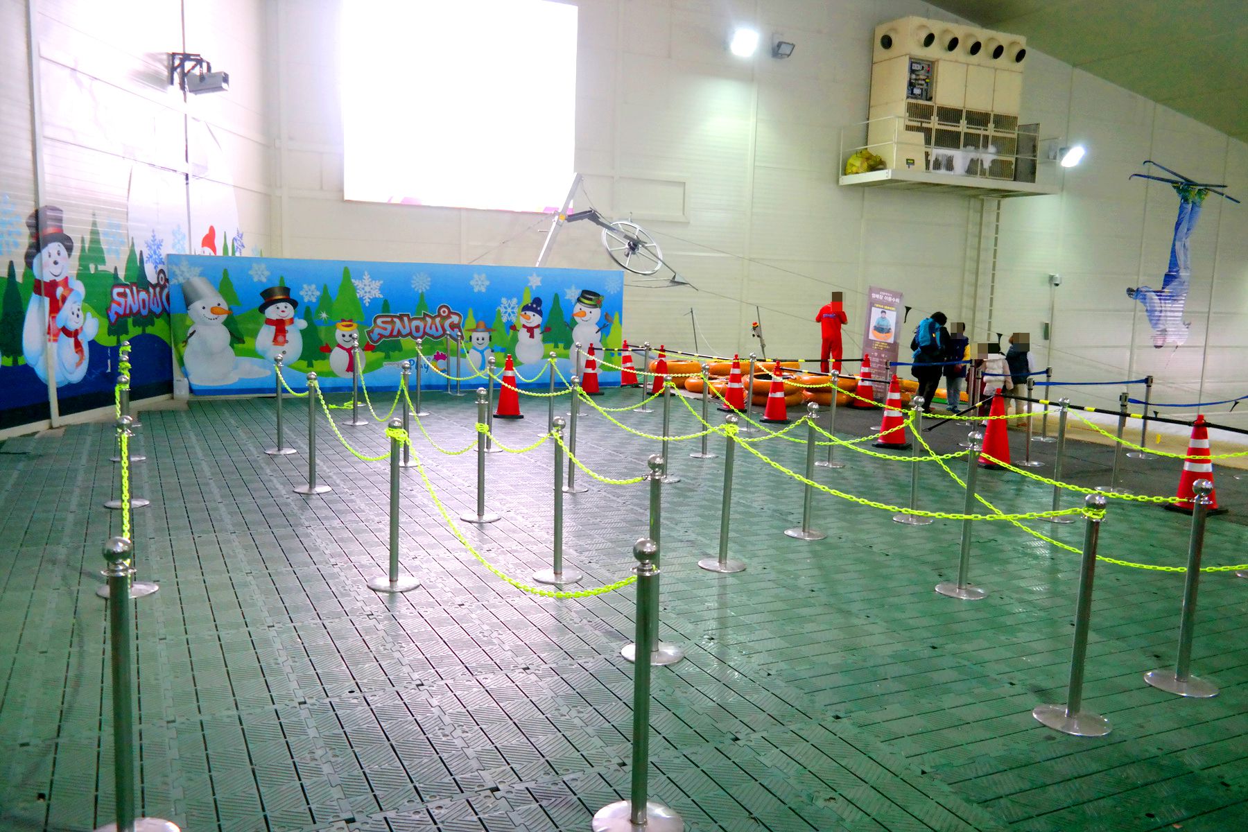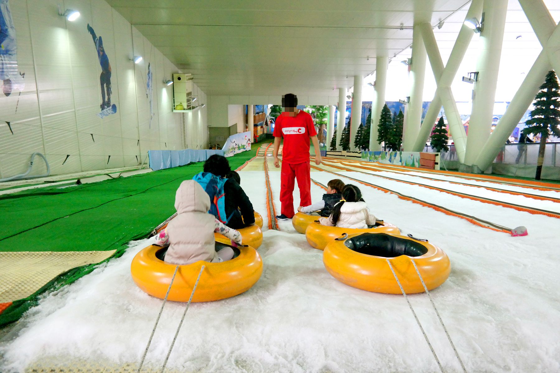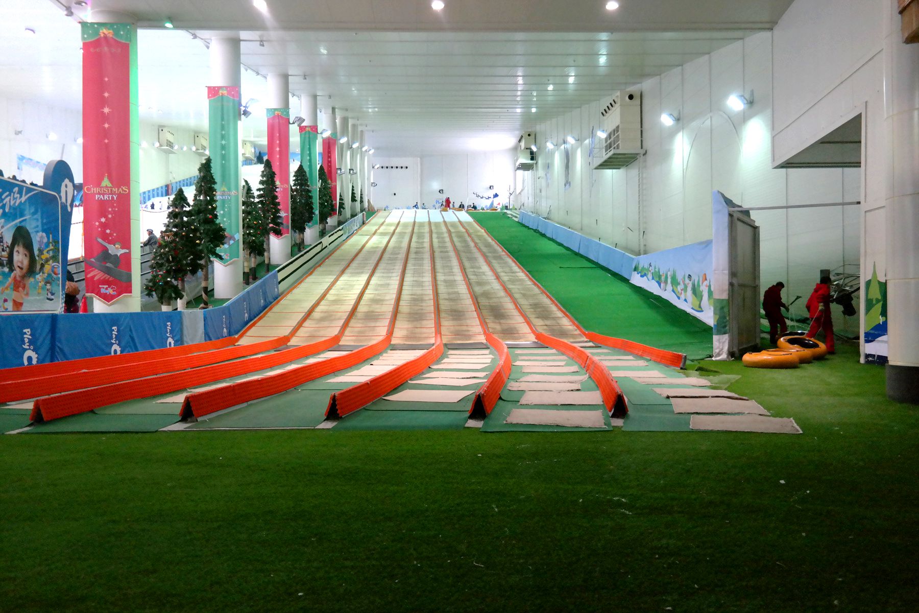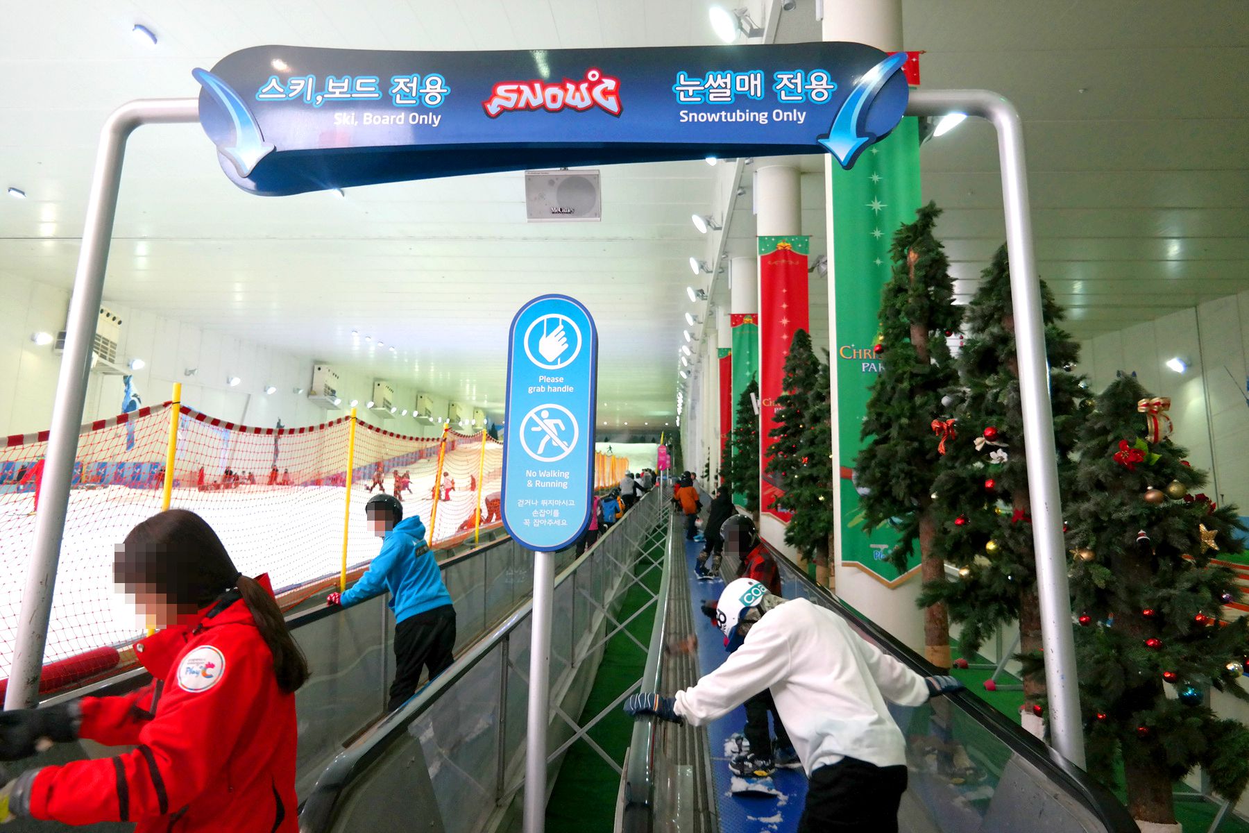 고무튜브 썰매장의 경우 슬로프 위까지는 무빙 벨트를 이용해서 이동할 수 있습니다.