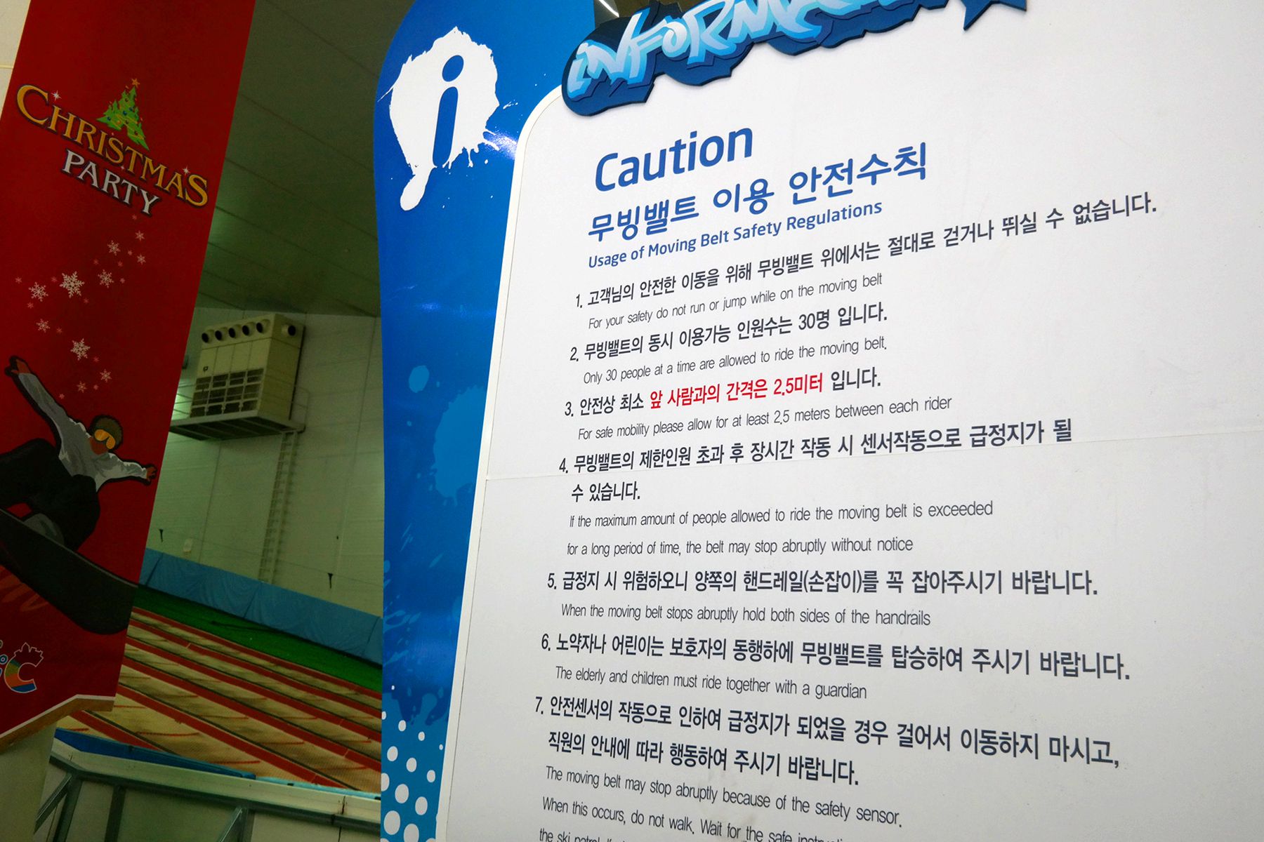스키, 보드와 눈썰매 무빙 벨트가 나눠져 있기는 하지만 인원 차이가 있어서 그런지 함께 이용하고 있습니다.