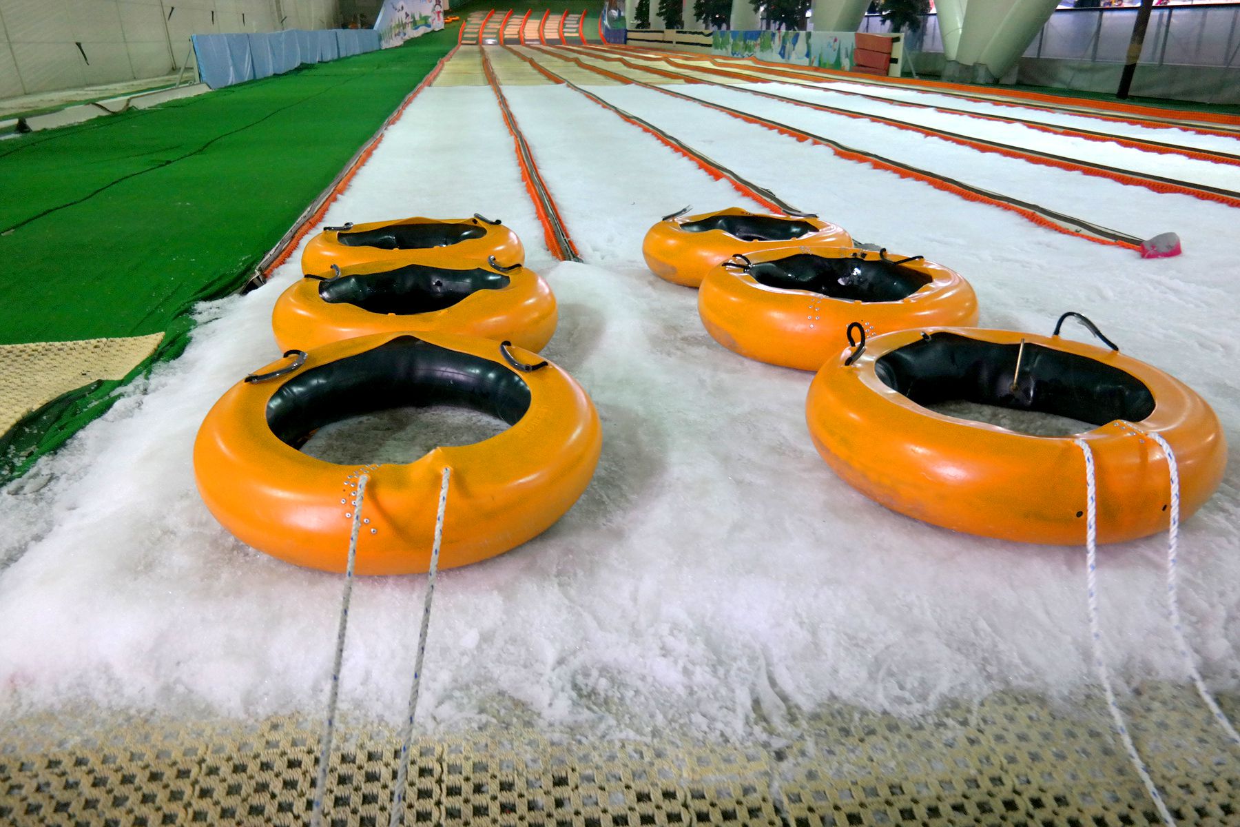 썰매장은 두 가지 형태가 있는데요. 하나는 일반 썰매이고, 하나는 고무튜브입니다.