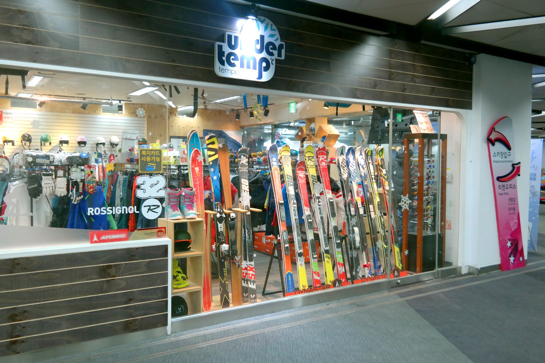 스노우파크와 스키장 입구 쪽으로 가면 스키 장비샵도 있고,