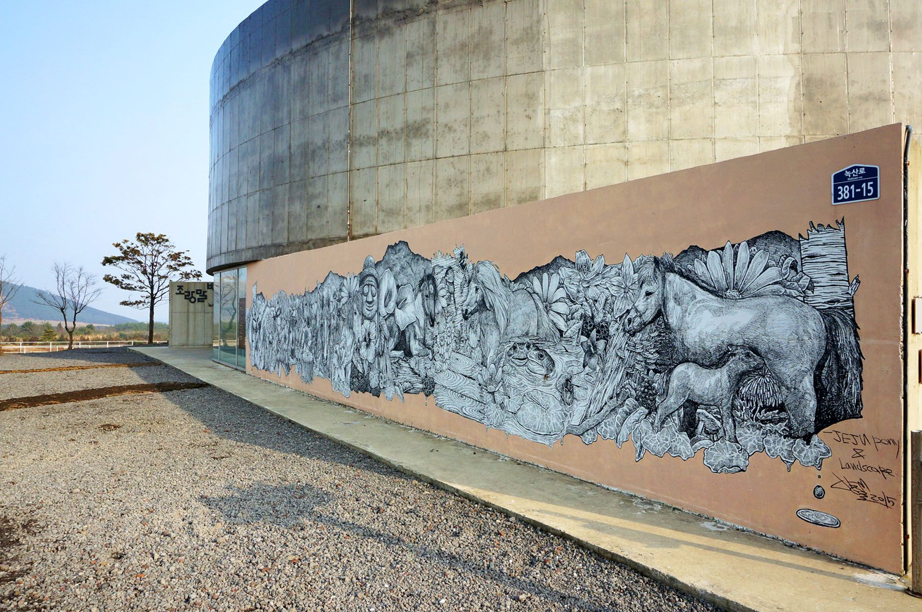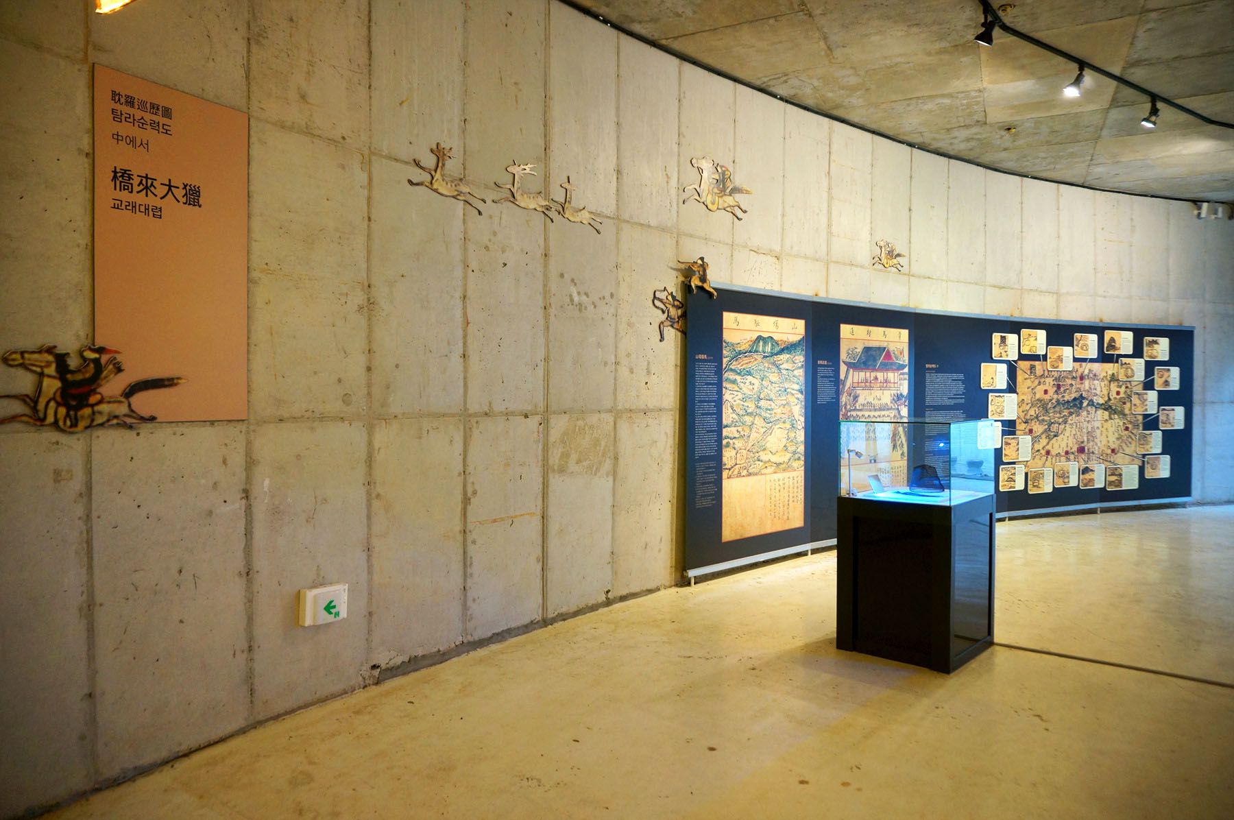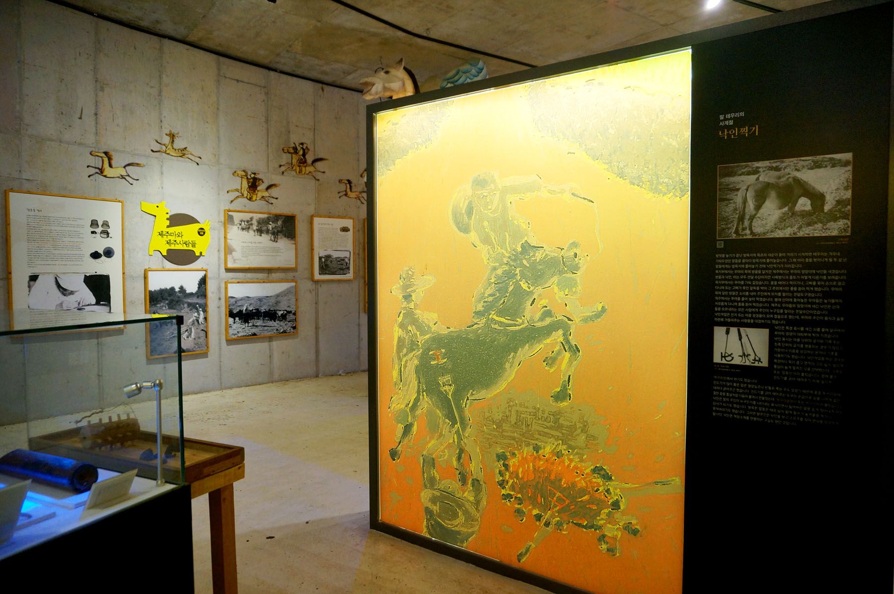 또한 가시리오름과 한라산을 배경으로 제주의 말 종류를 패널로 표현하고, 제주마와 사람들 사진,