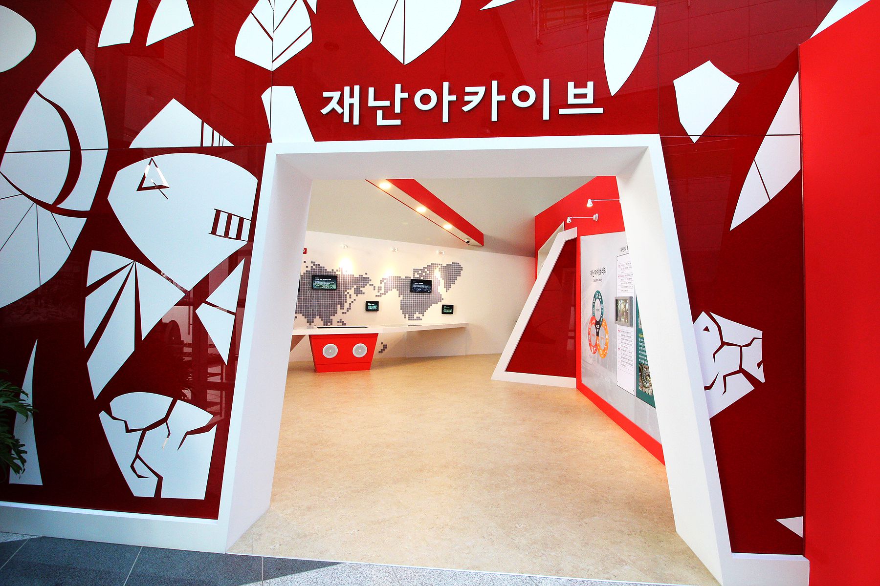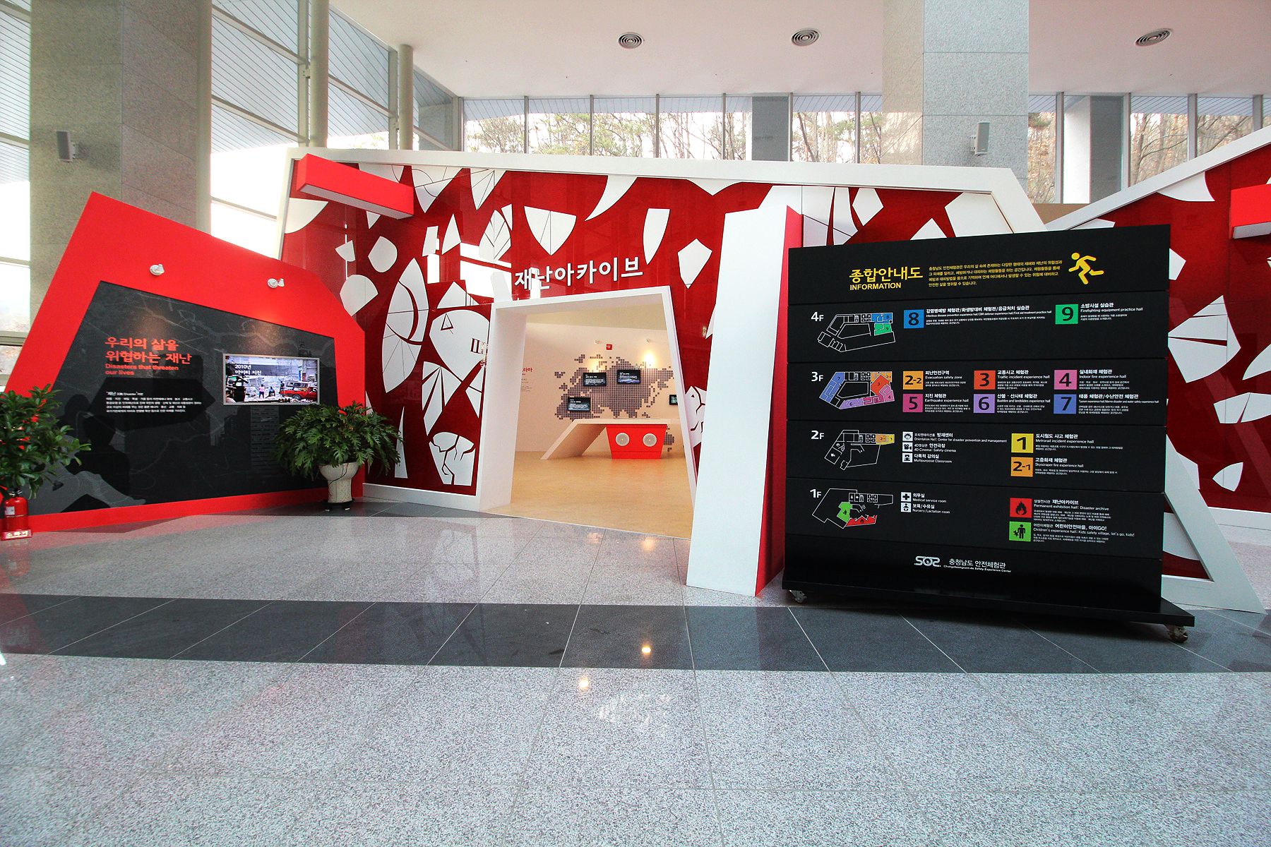 안전체험관 1층에는 상설 전시관인 '재난 아카이브'와 어린치 체험관인 '어린이 안전마을, 아이Go!'가 있습니다.
