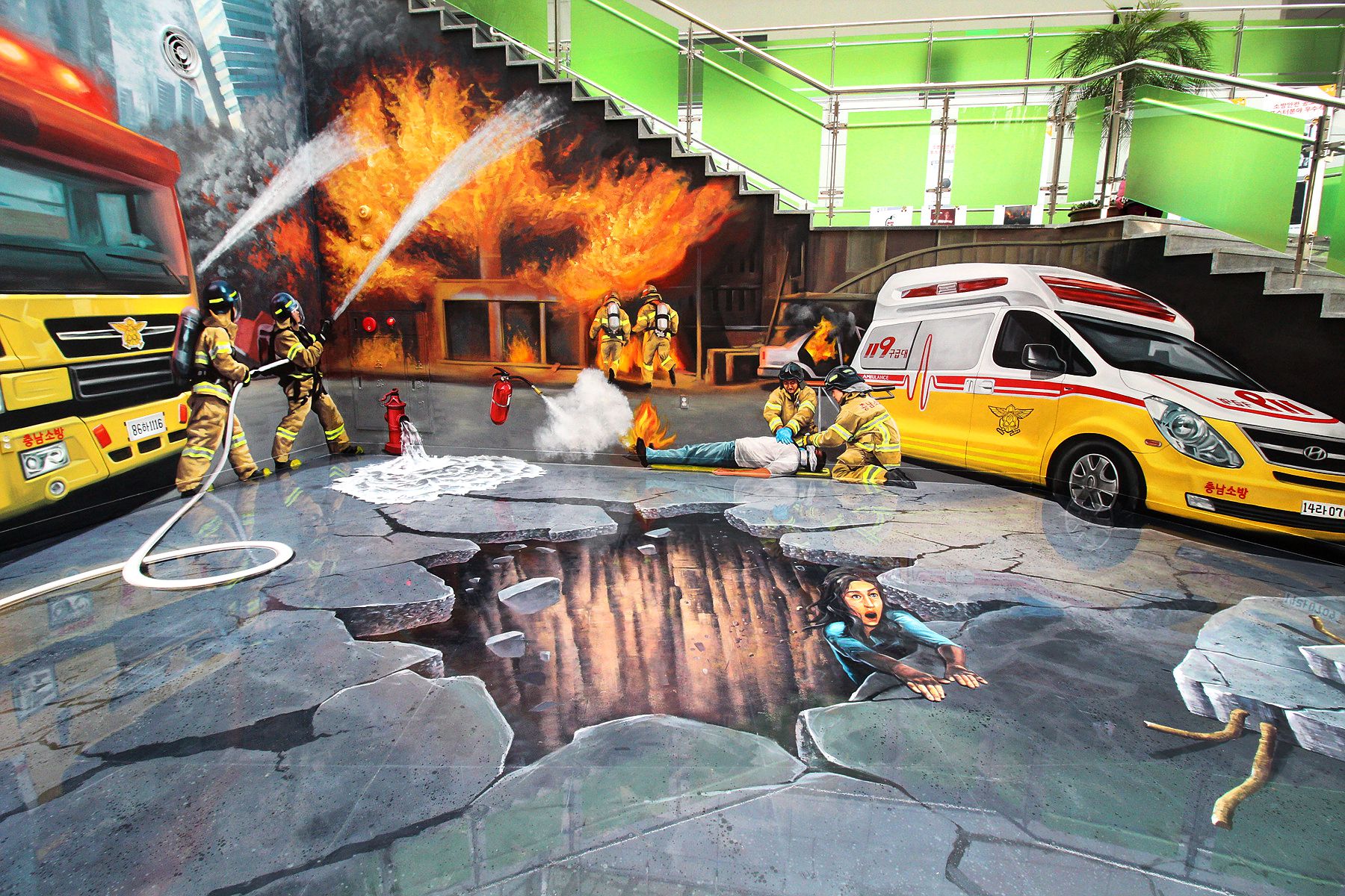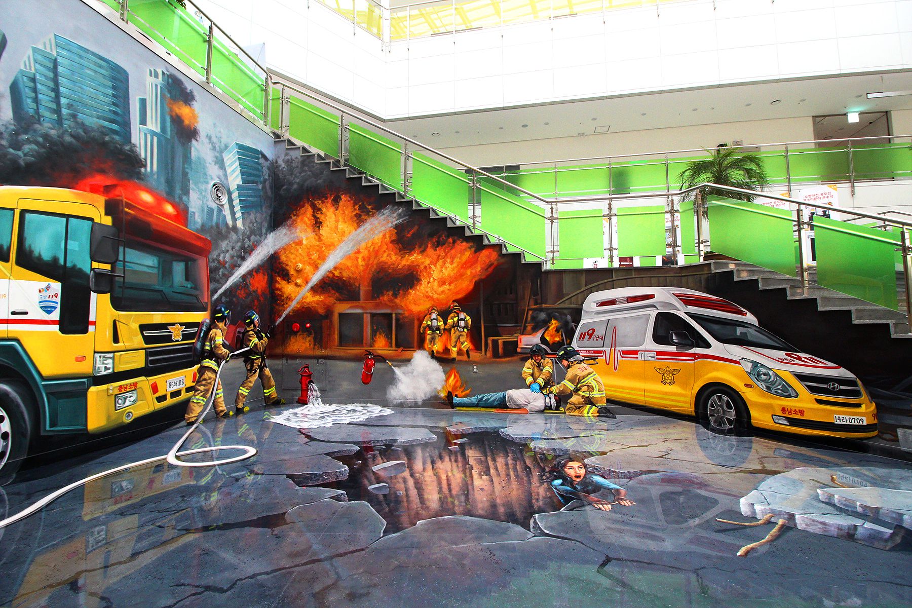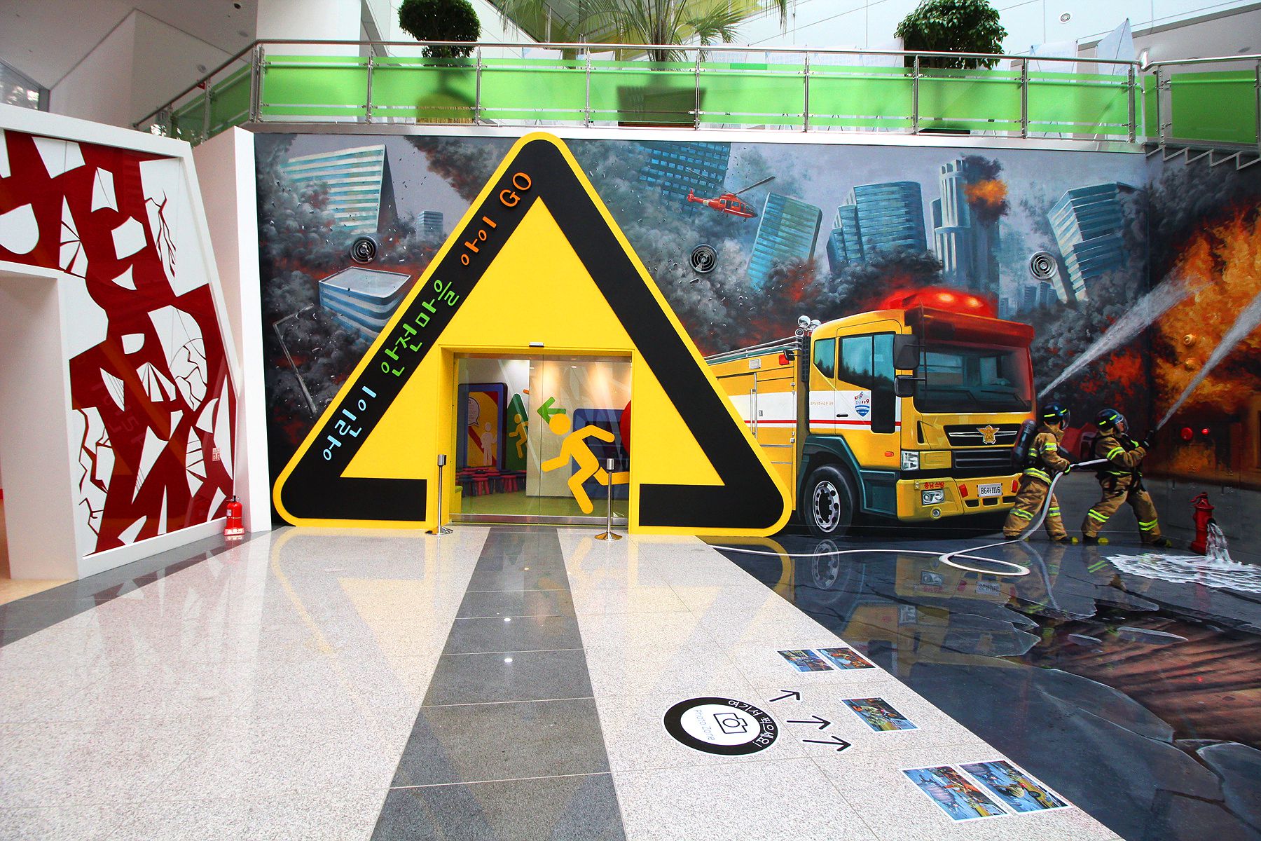 도시 안의 재난 관련 체험관은 3층에서 교통사고 체험관, 실내화재 체험관으로 이어집니다.
