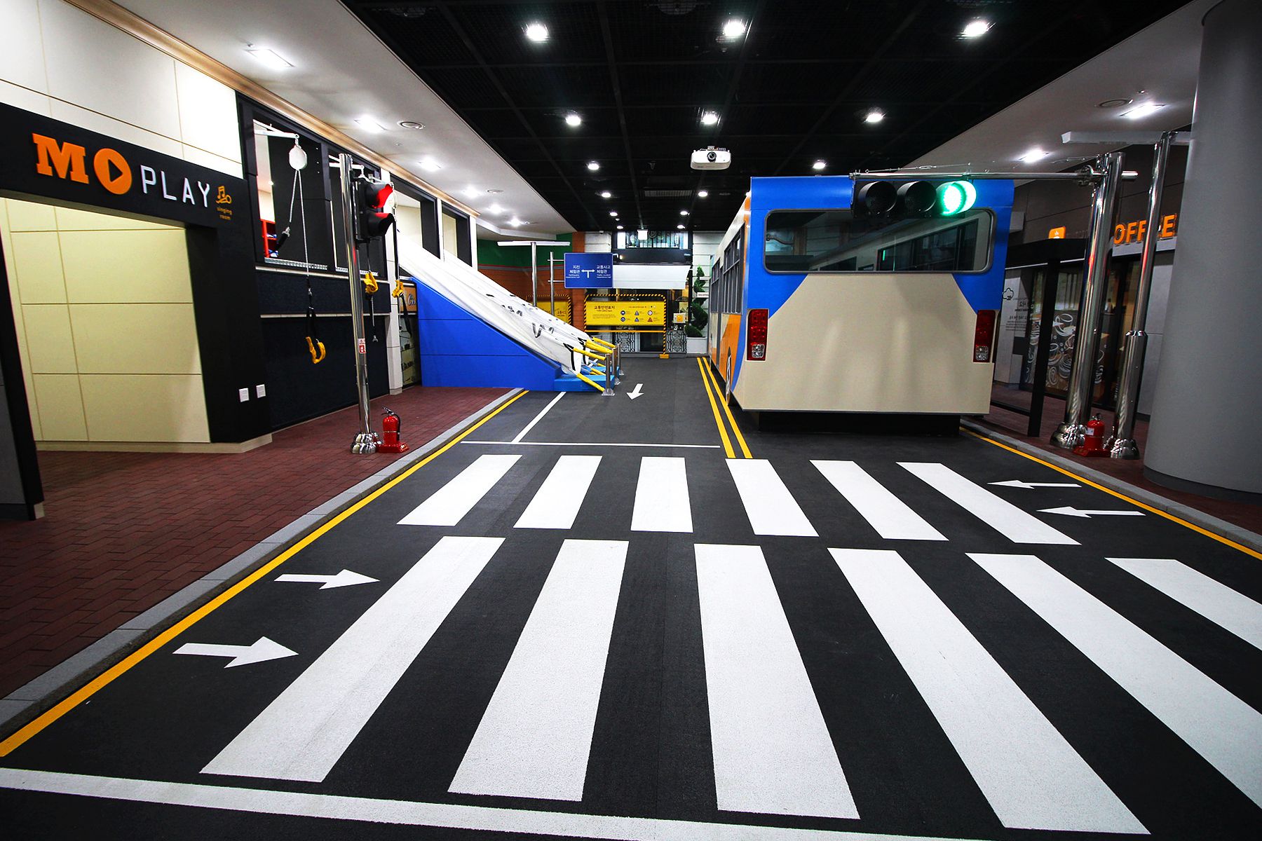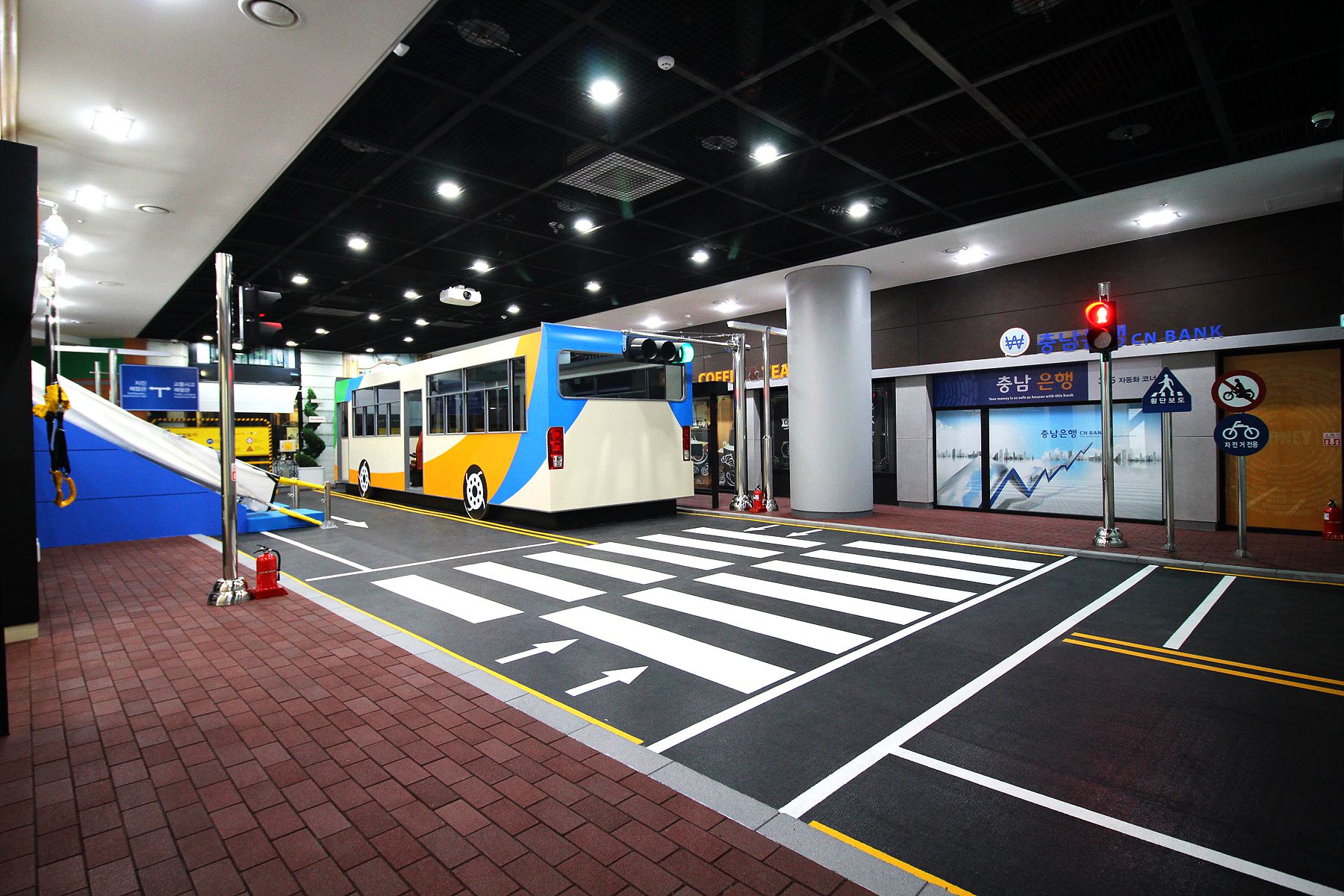 도로를 그대로 재현하여 도로 교통수칙을 학습하고 교통 안전 체험을 할 수 있는 교통사고 체험관은