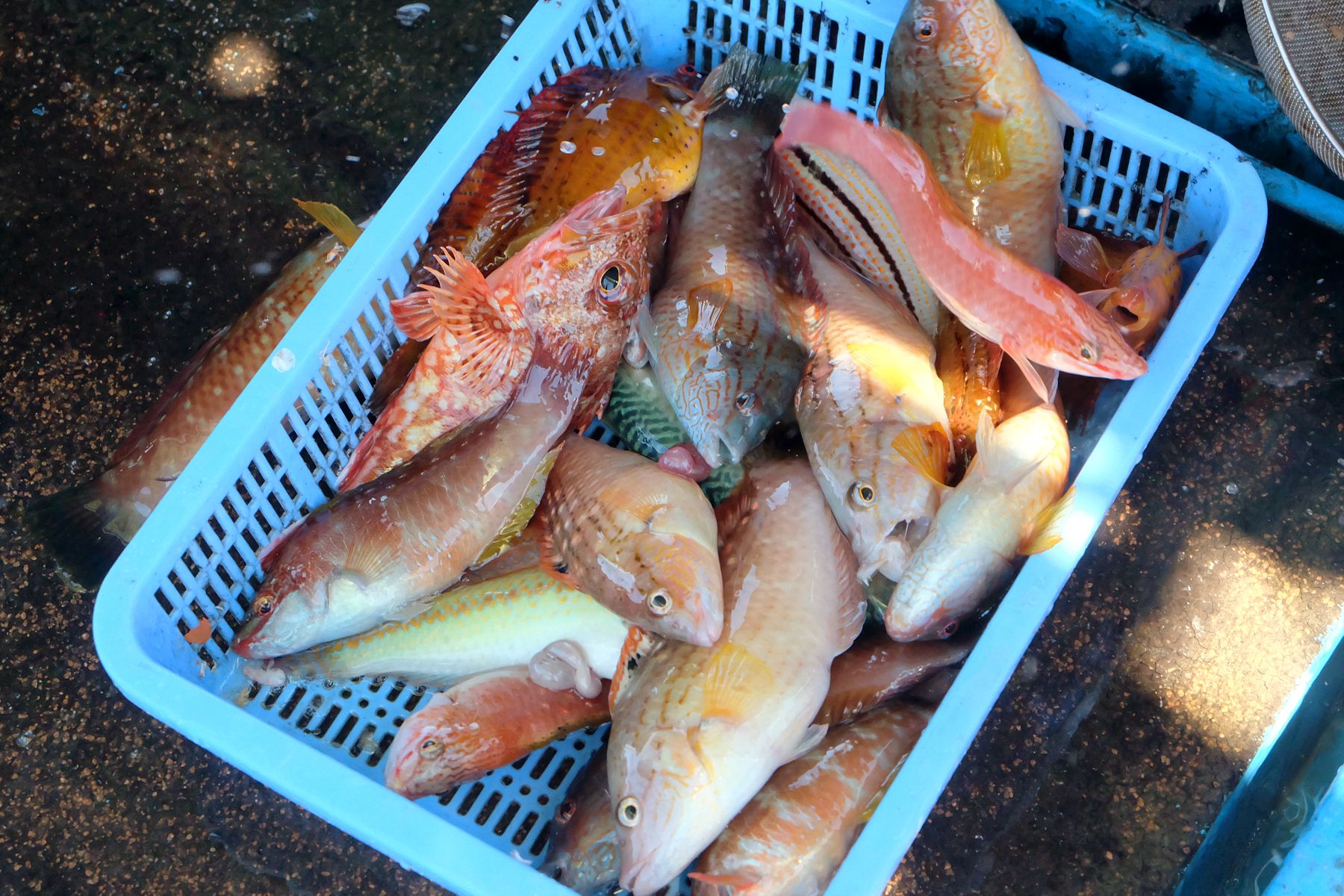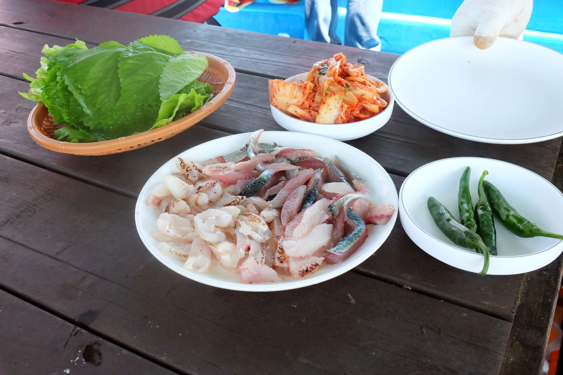 배에서 잡은 싱싱한 물고기들은 그 자리에서 회로 맛볼 수 있는데요,