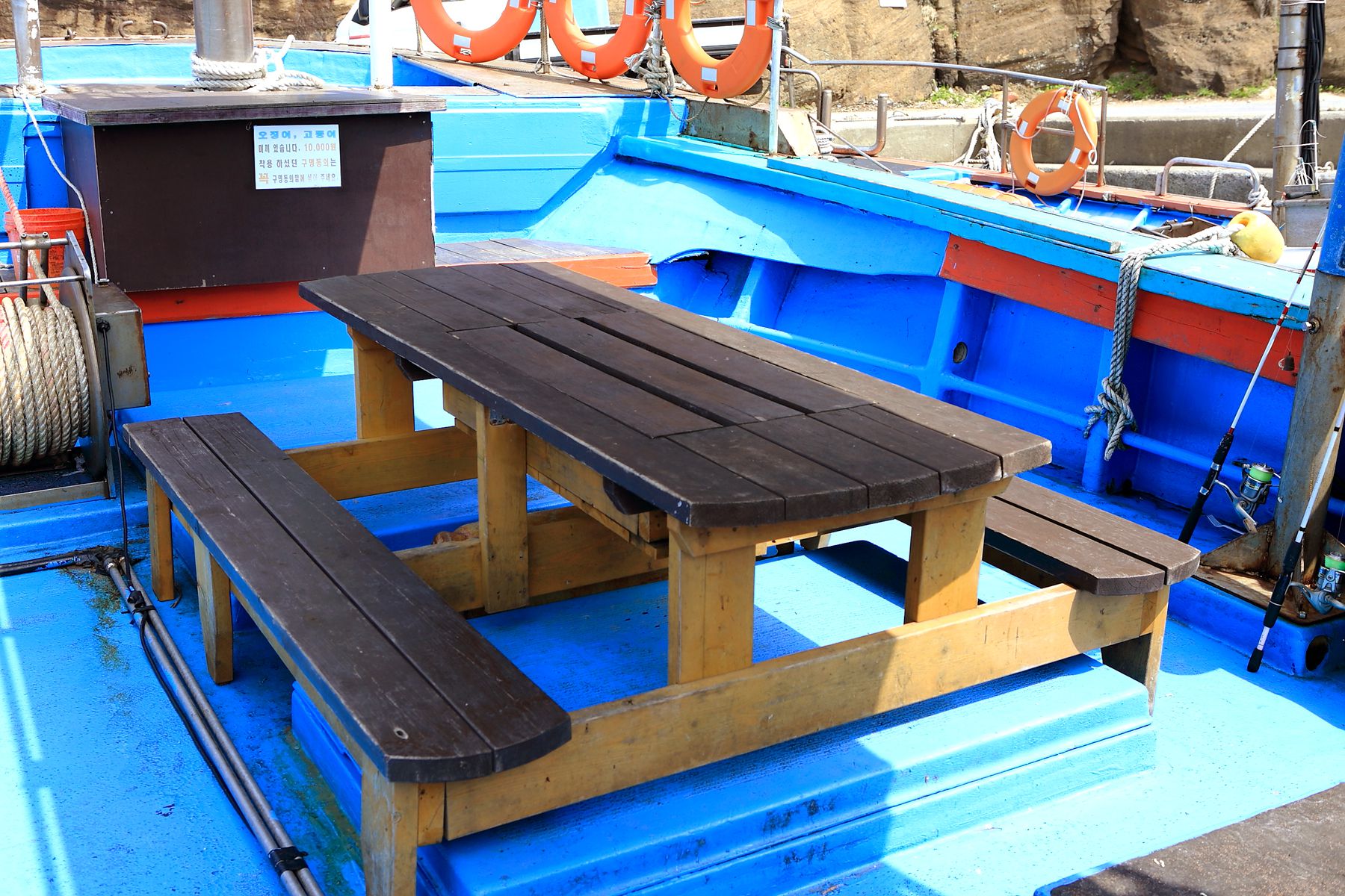 안전하고 즐거운 배낚시 체험이 될 수 있도록 어선 내부에 구명동의함을 갖추고 있으며,