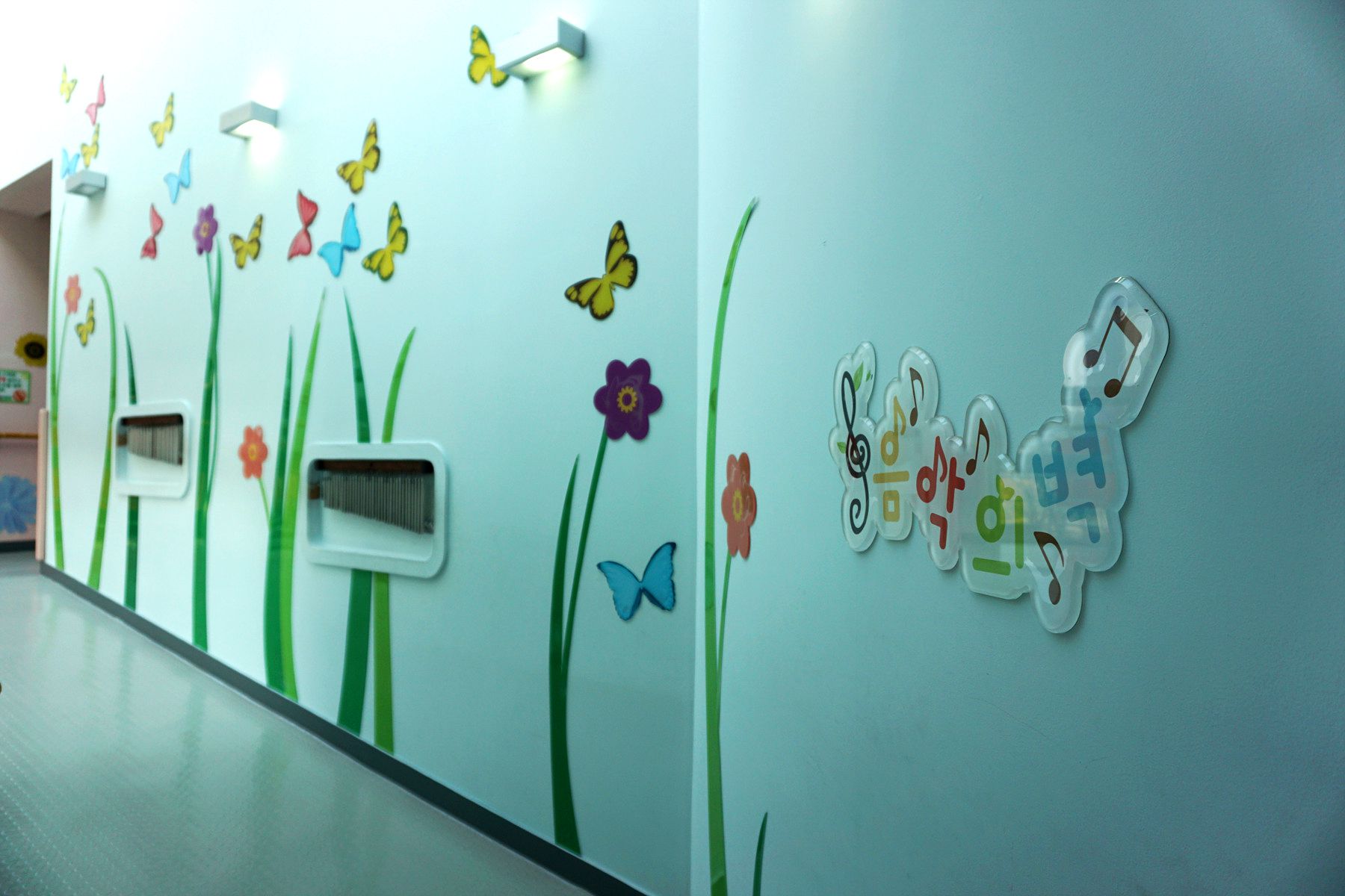 LED라이팅과 원드차임을 설치하여 복도 공간을 흥미롭게 연출해 놓았습니다.