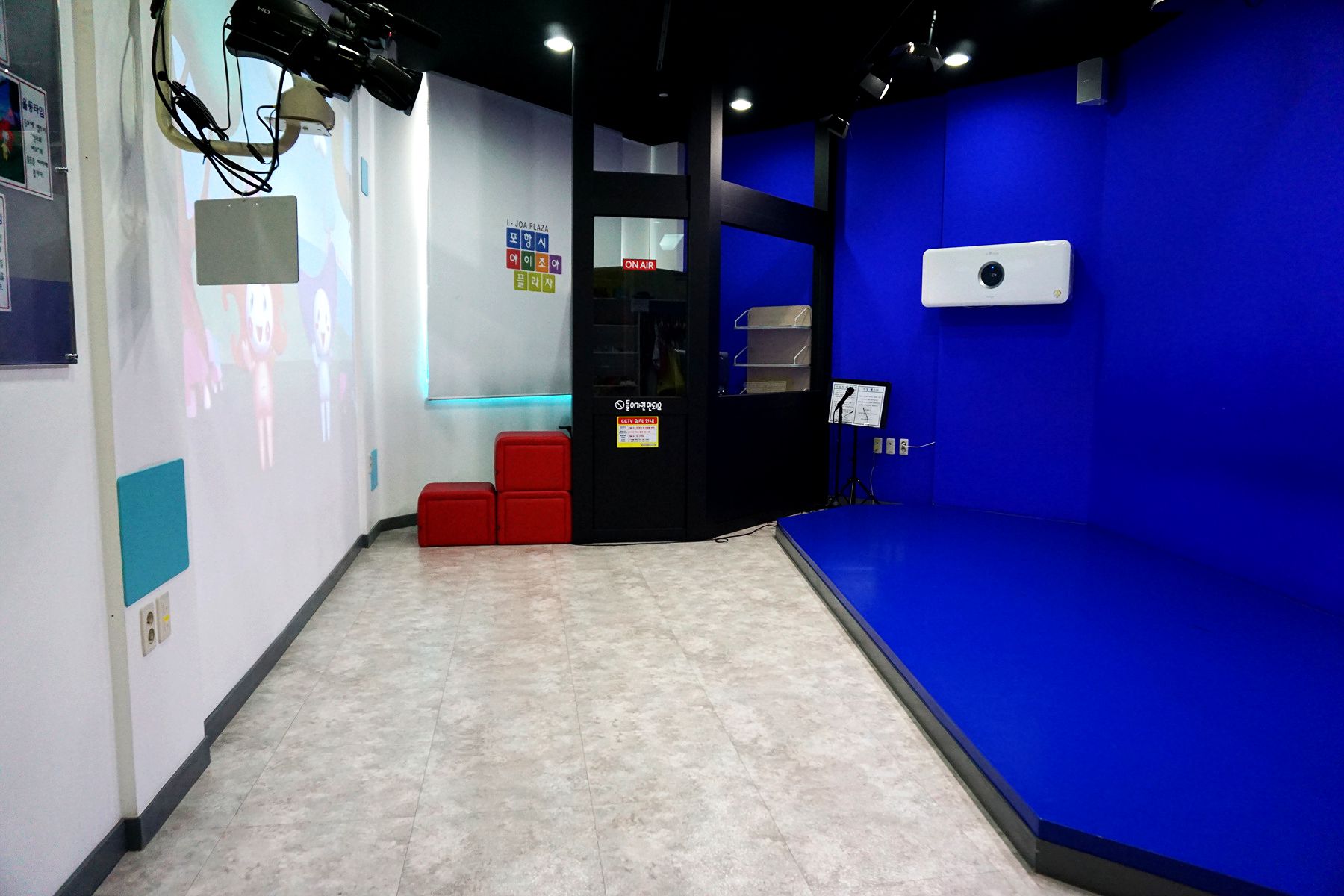 카메라를 통해 내 모습을 확인하며 촬영할 수 있는 어린이 방송국입니다.