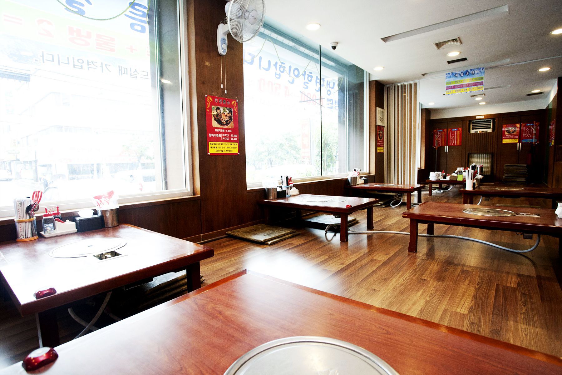 양 사이드로 마루형태의 홀이 마련되어 있고 가운데는 의자테이블 형식의 홀이 마련되어 있어