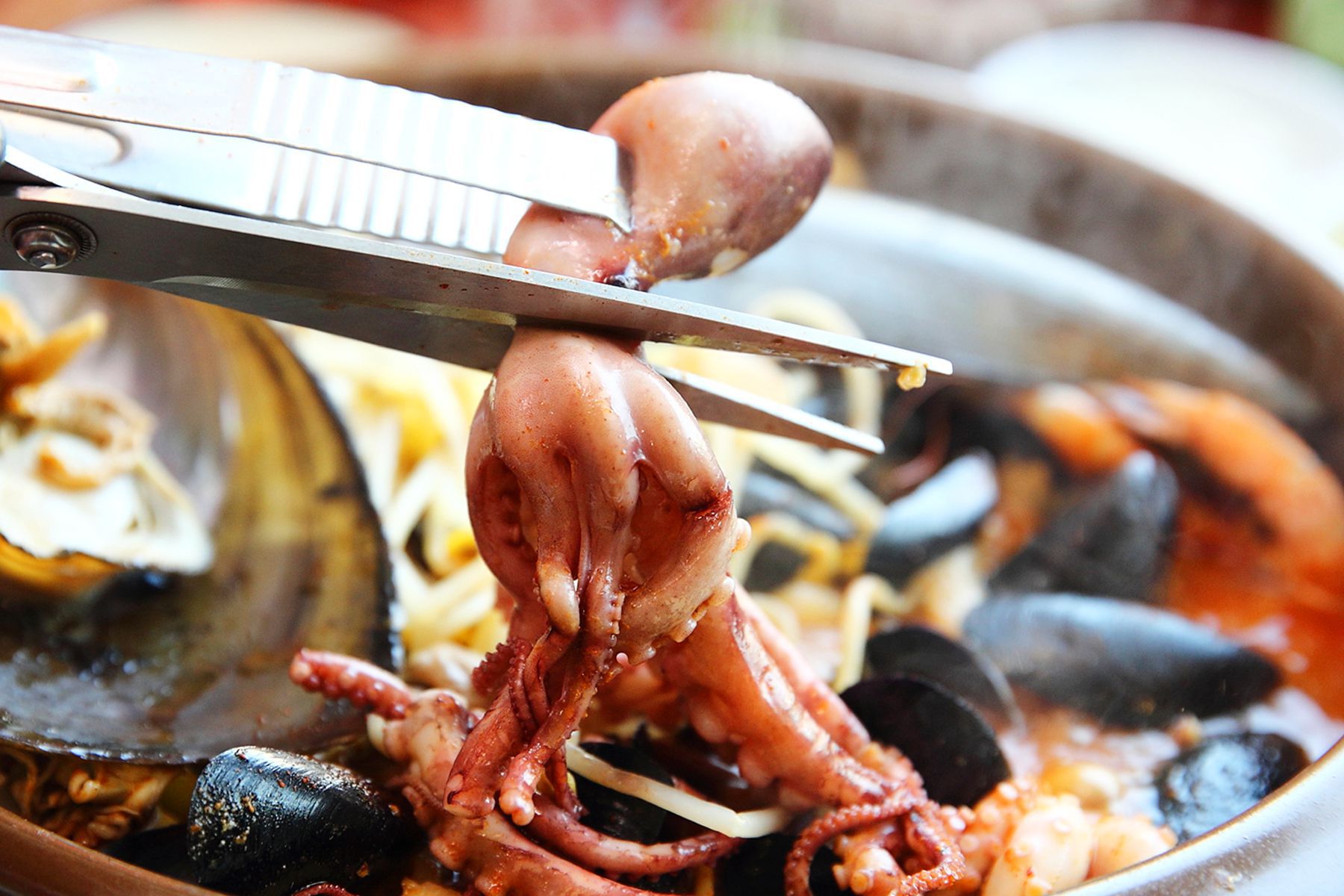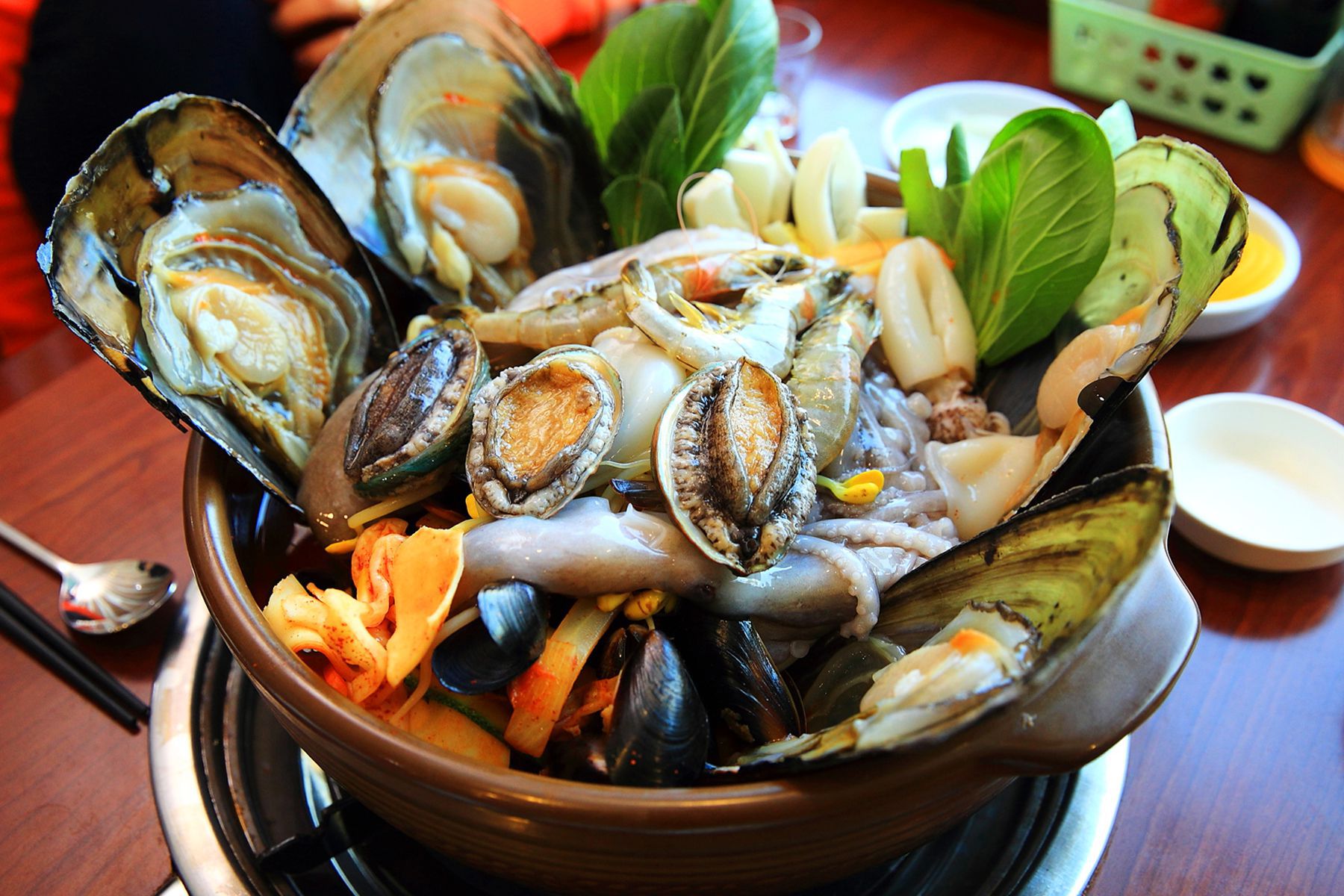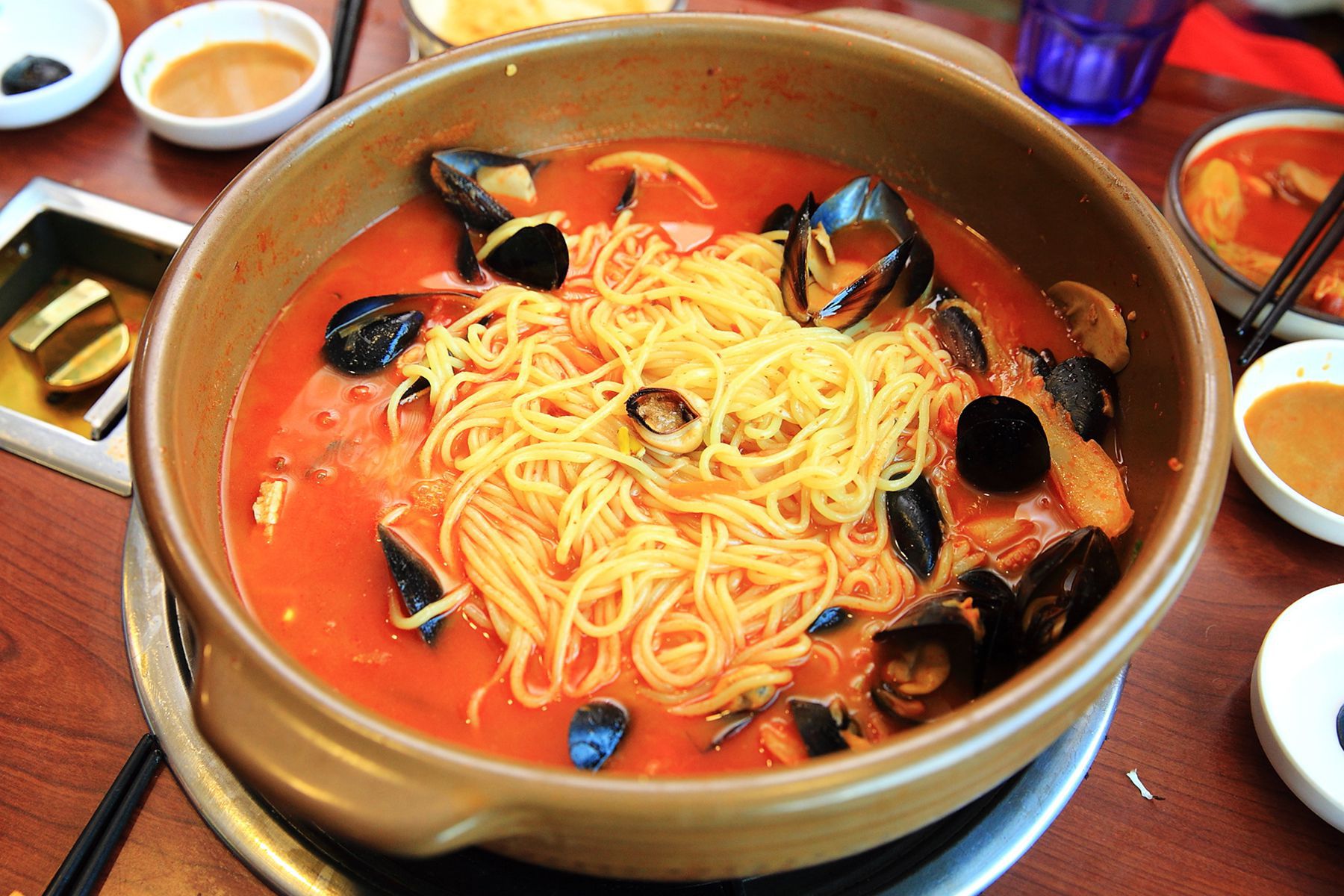 큼지막한 항아리위에 각종 푸짐한 해산물들이 올라가져있고 쫄깃한 면발이 그밑에 감춰져 있습니다.