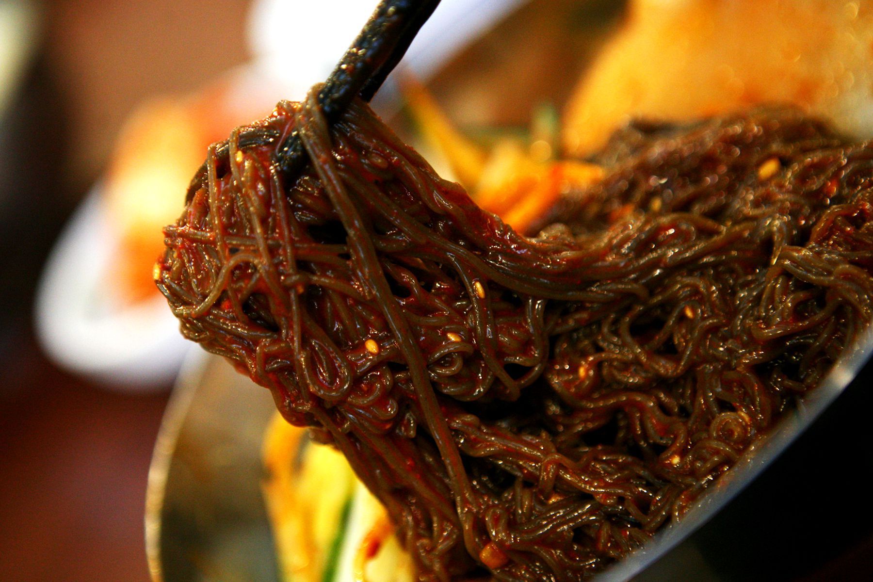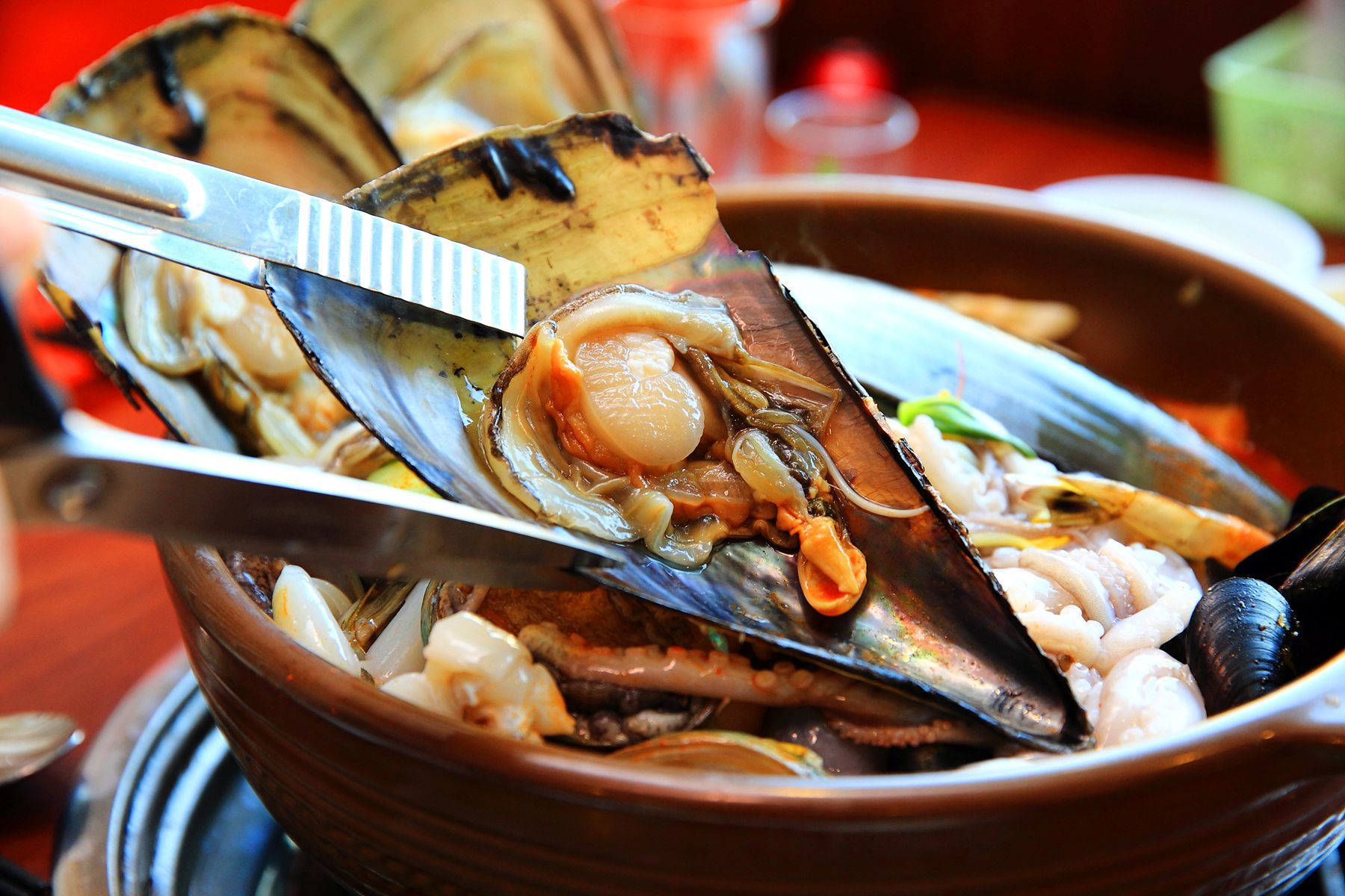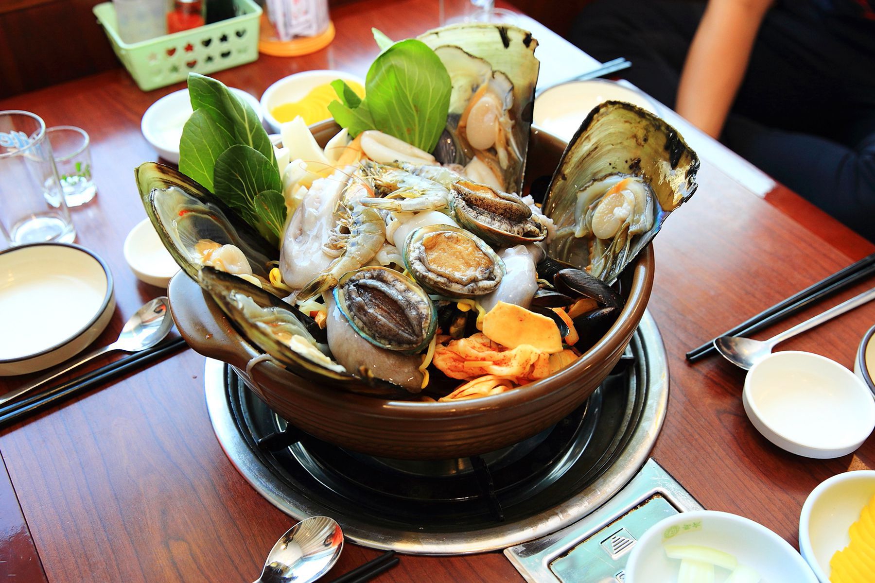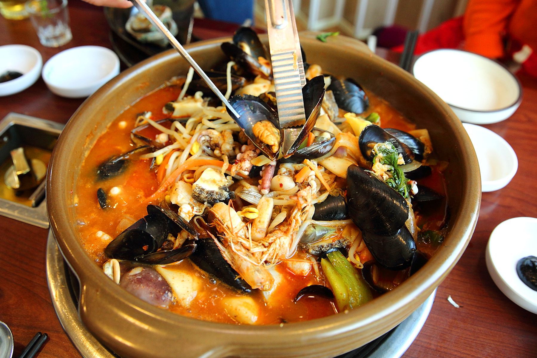 큼지막한 항아리위에 각종 푸짐한 해산물들이 올라가져있고 쫄깃한 면발이 그밑에 감춰져 있습니다.
