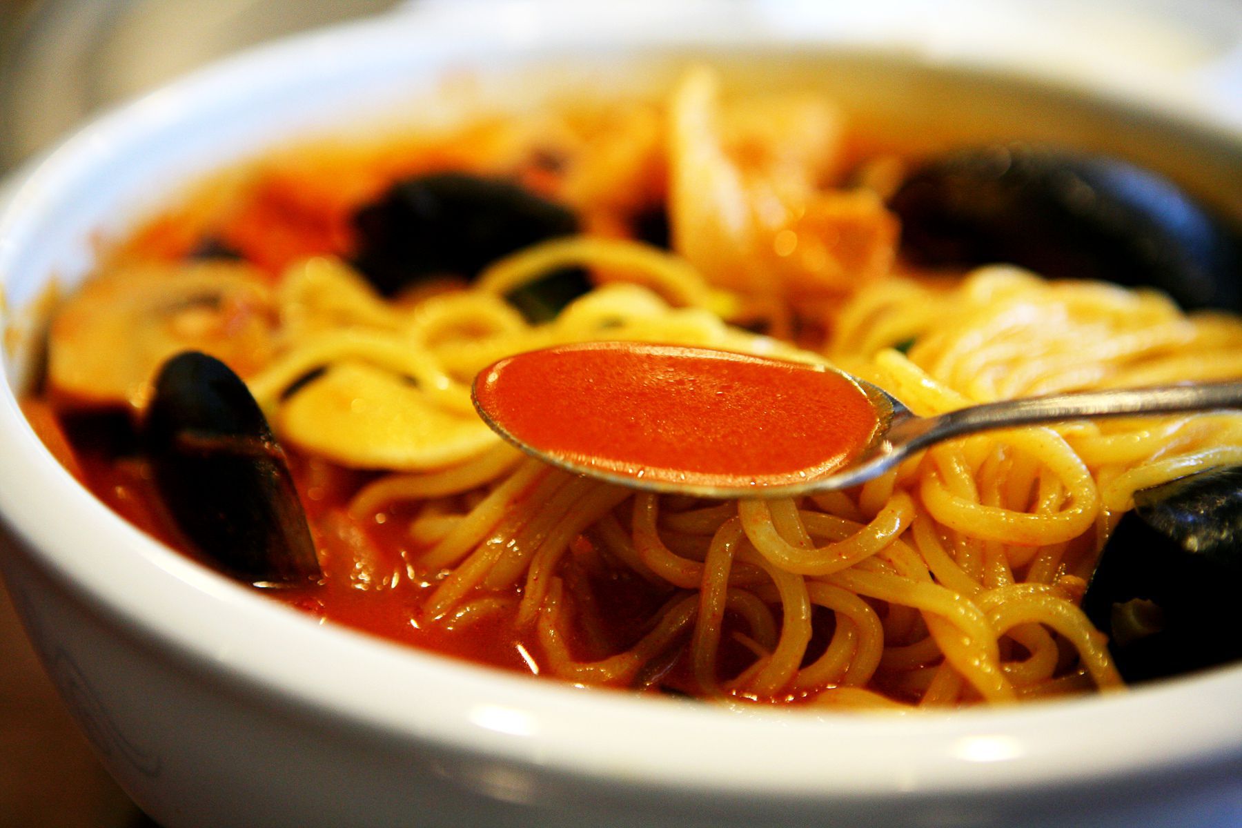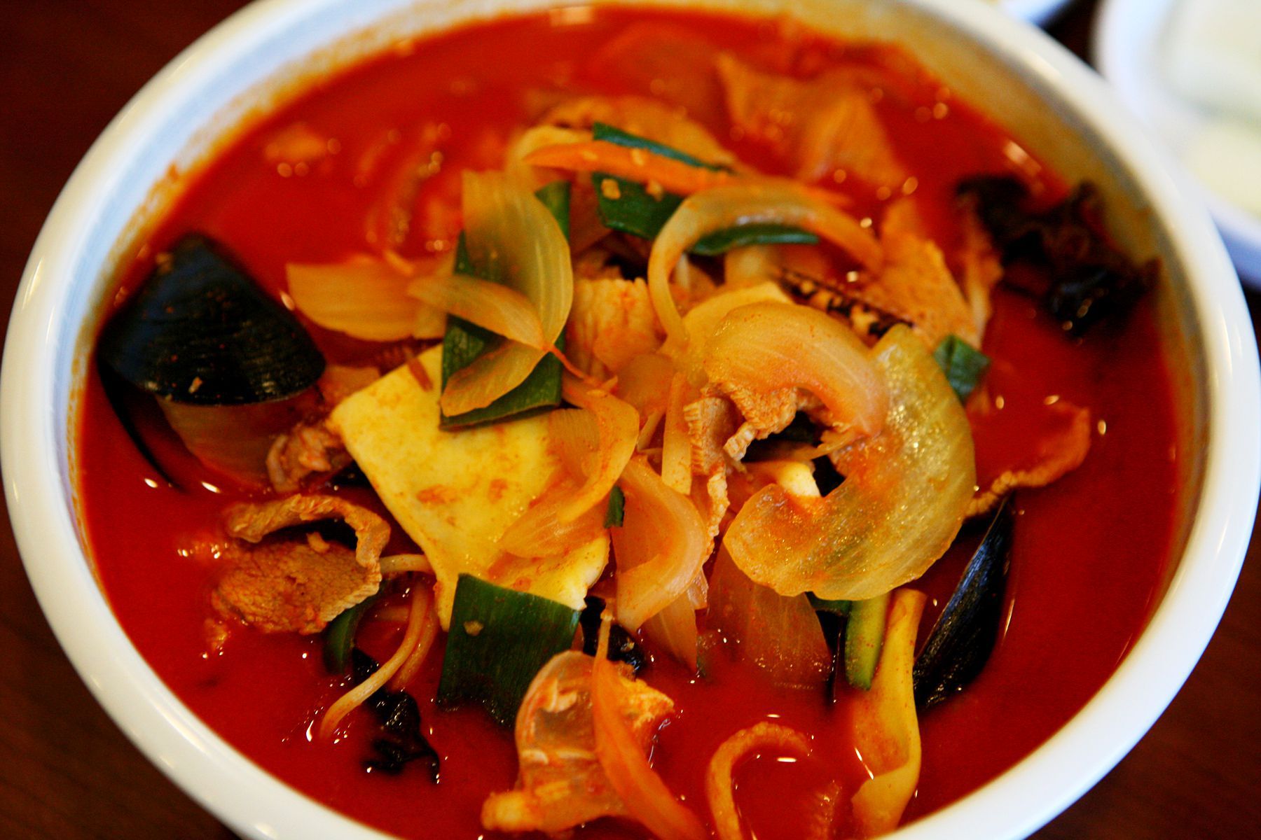 그저 맵기만 한 짬뽕이 아닌 콩나물과 고기, 떡사리, 오징어, 홍합이 들어가서