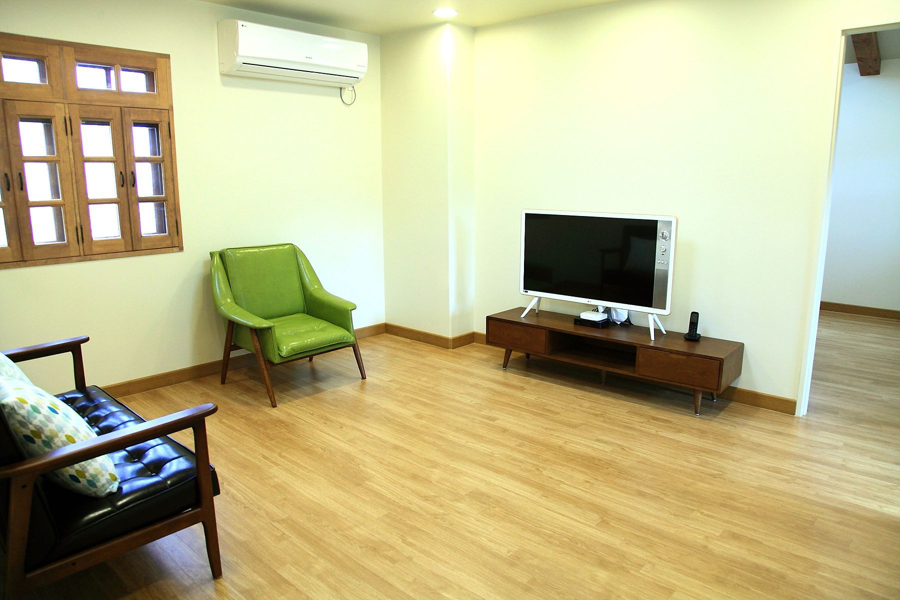 1층은 26평형으로 침대방 1실, 온돌방 2실, 거실, 부엌, 샤워실(화장실)로 구성되어져 있습니다.