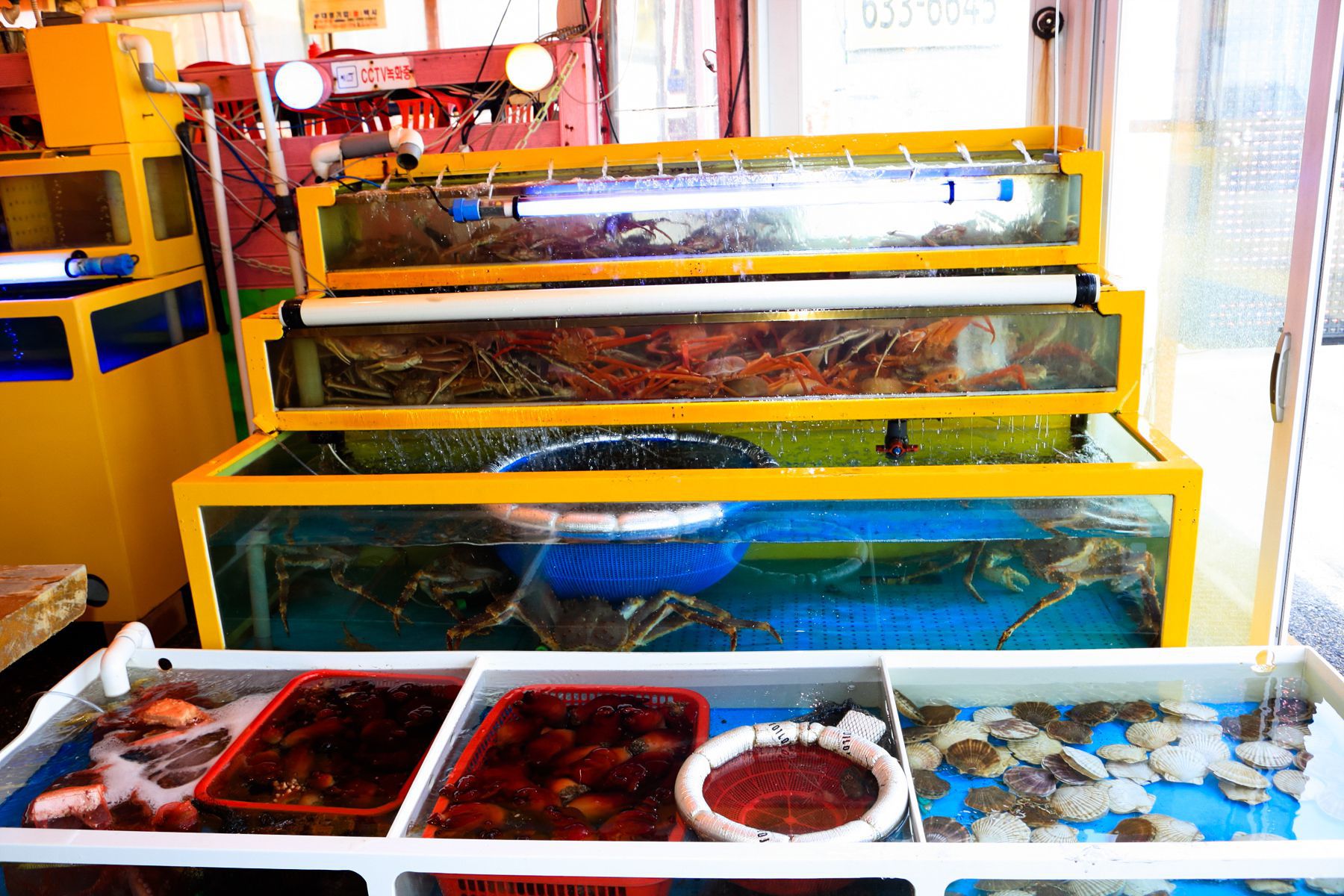 바닷가에 위치한 횟집답게 언제나 신선한 어류와 해산물이 가득한 수족관에서 갓 잡아올려 요리하기 때문에