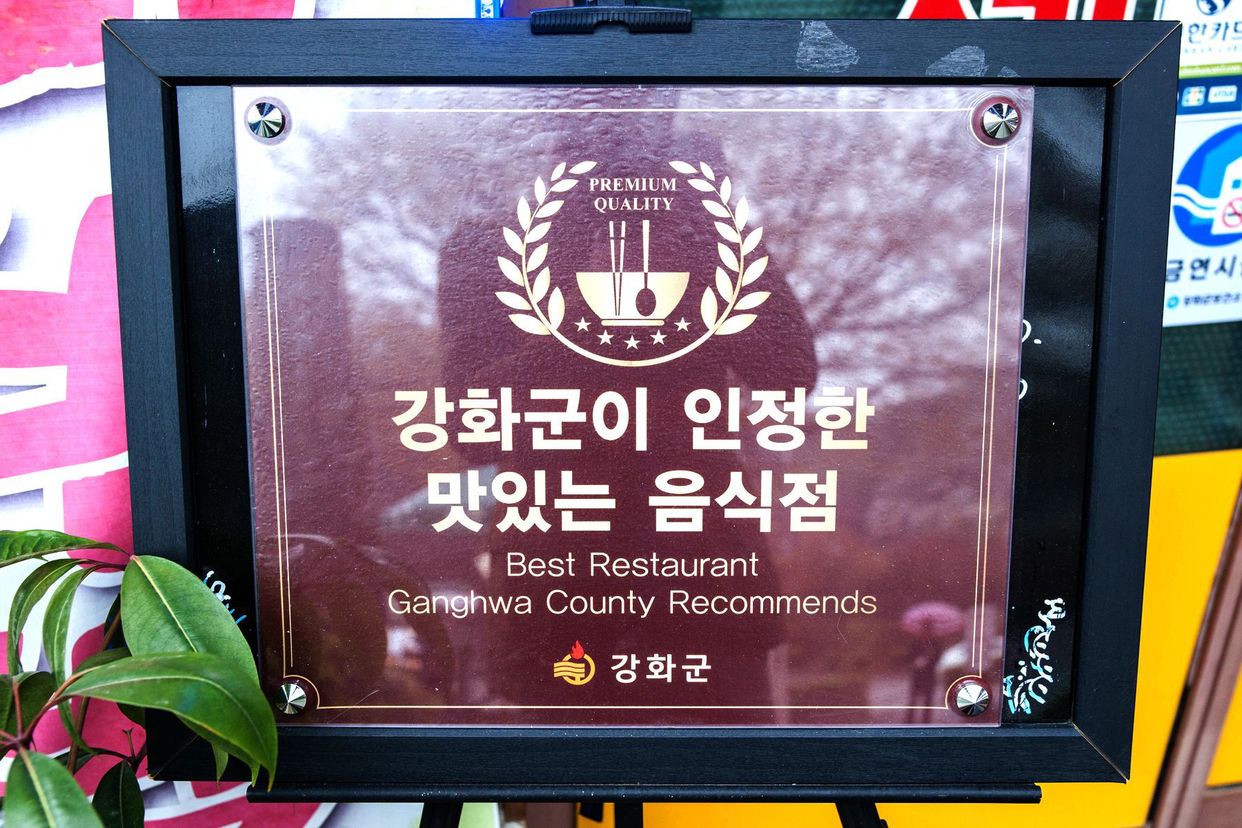 강화도에서 맛집으로 인정하여 임명장을 받은업체입니다.^^