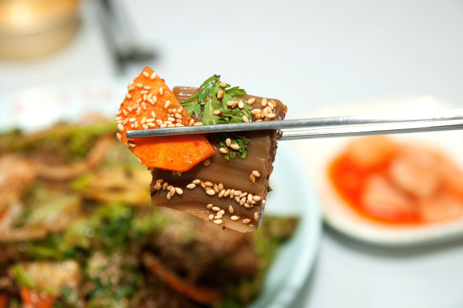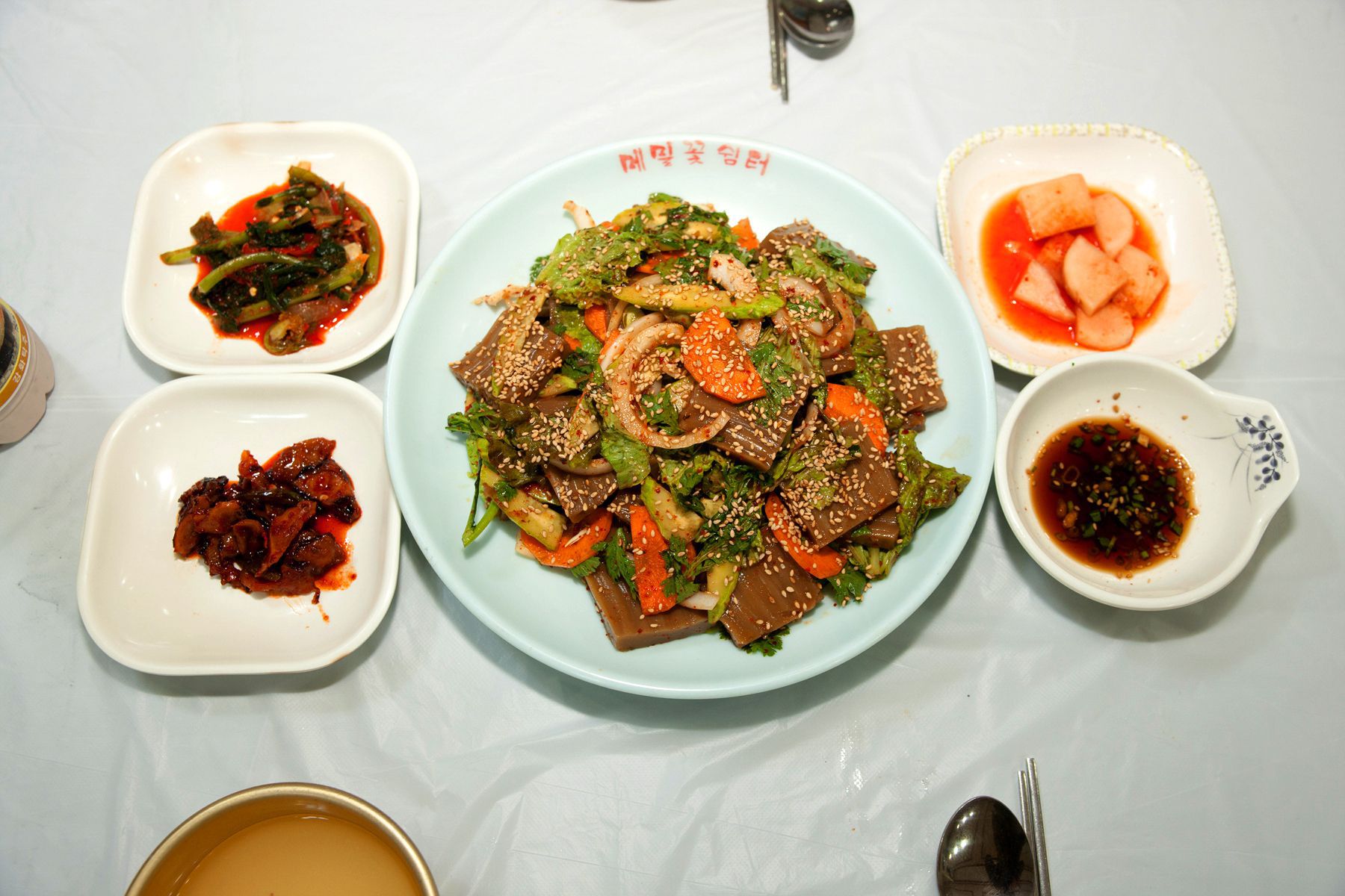 또 직접 만드셨다는 야채와 함께 맛깔스럽게 무쳐낸 도토리묵무침도