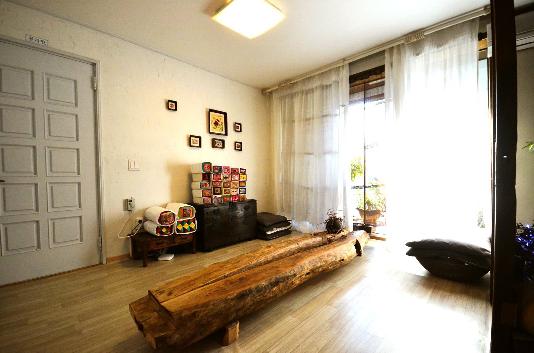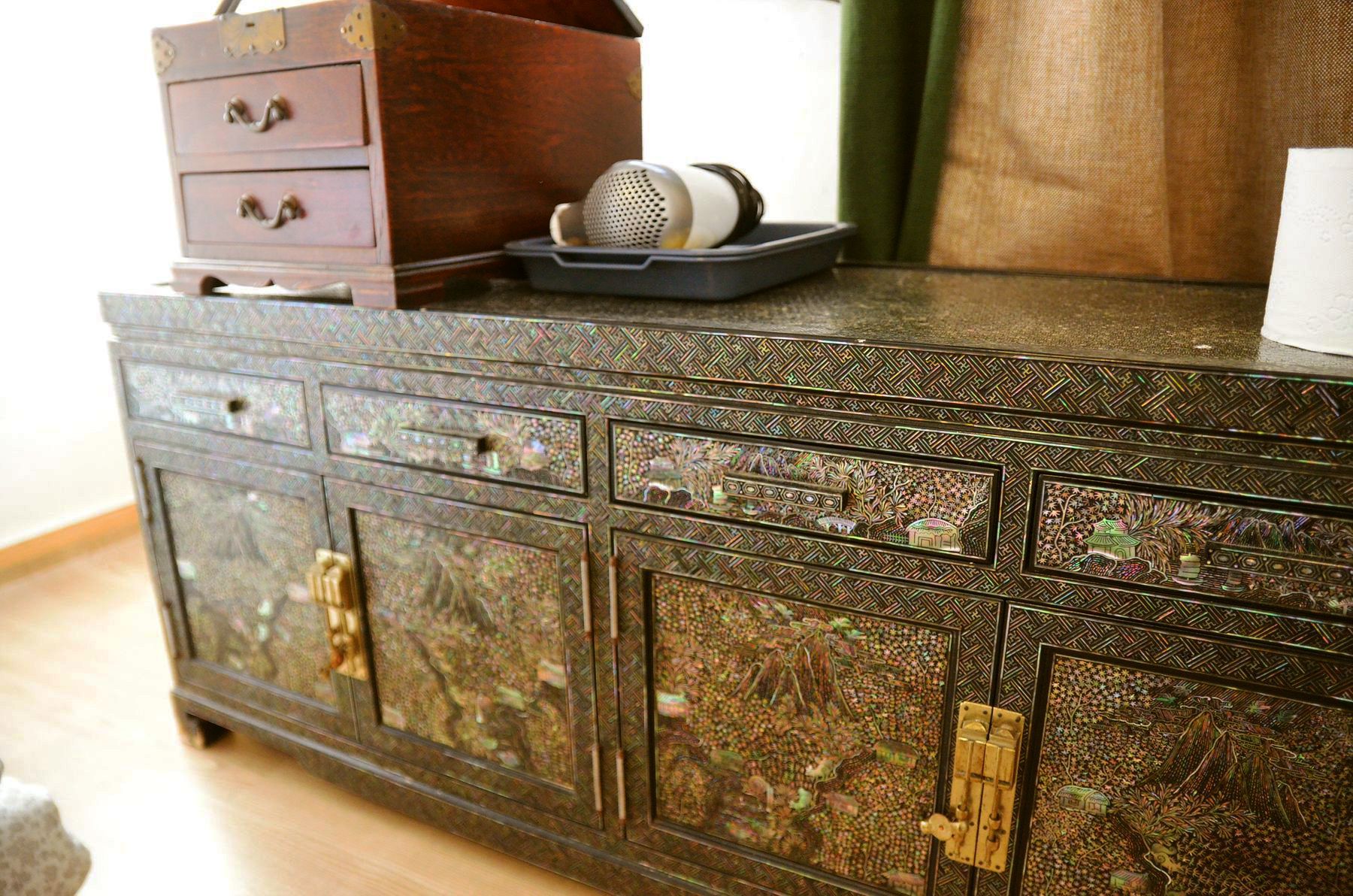 고재 문으로 만든 거울, 반닫이 통창이 있는 202호 '앵두나무방'