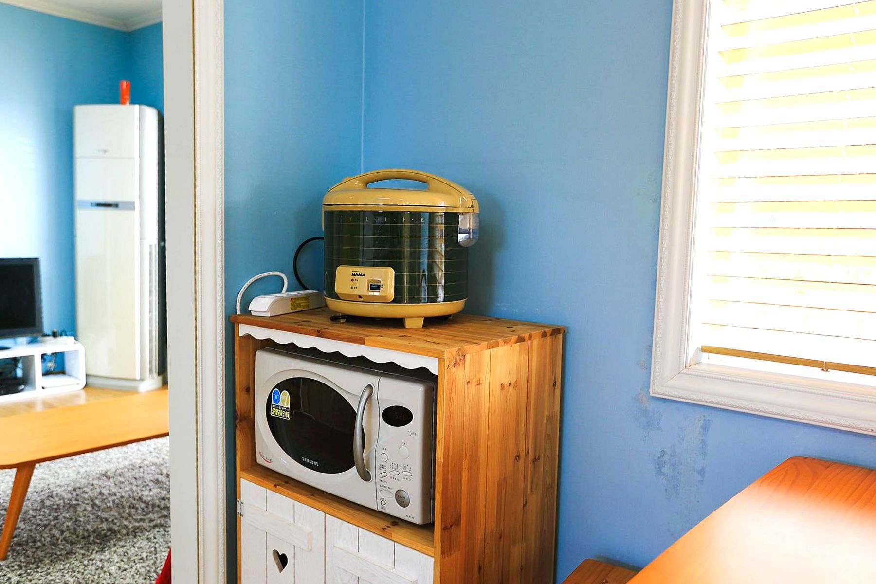 냉장고, 가스렌지, 전자렌지, 전기밥솥 등 기본적인 주방 가전제품이 비치되어 있고,