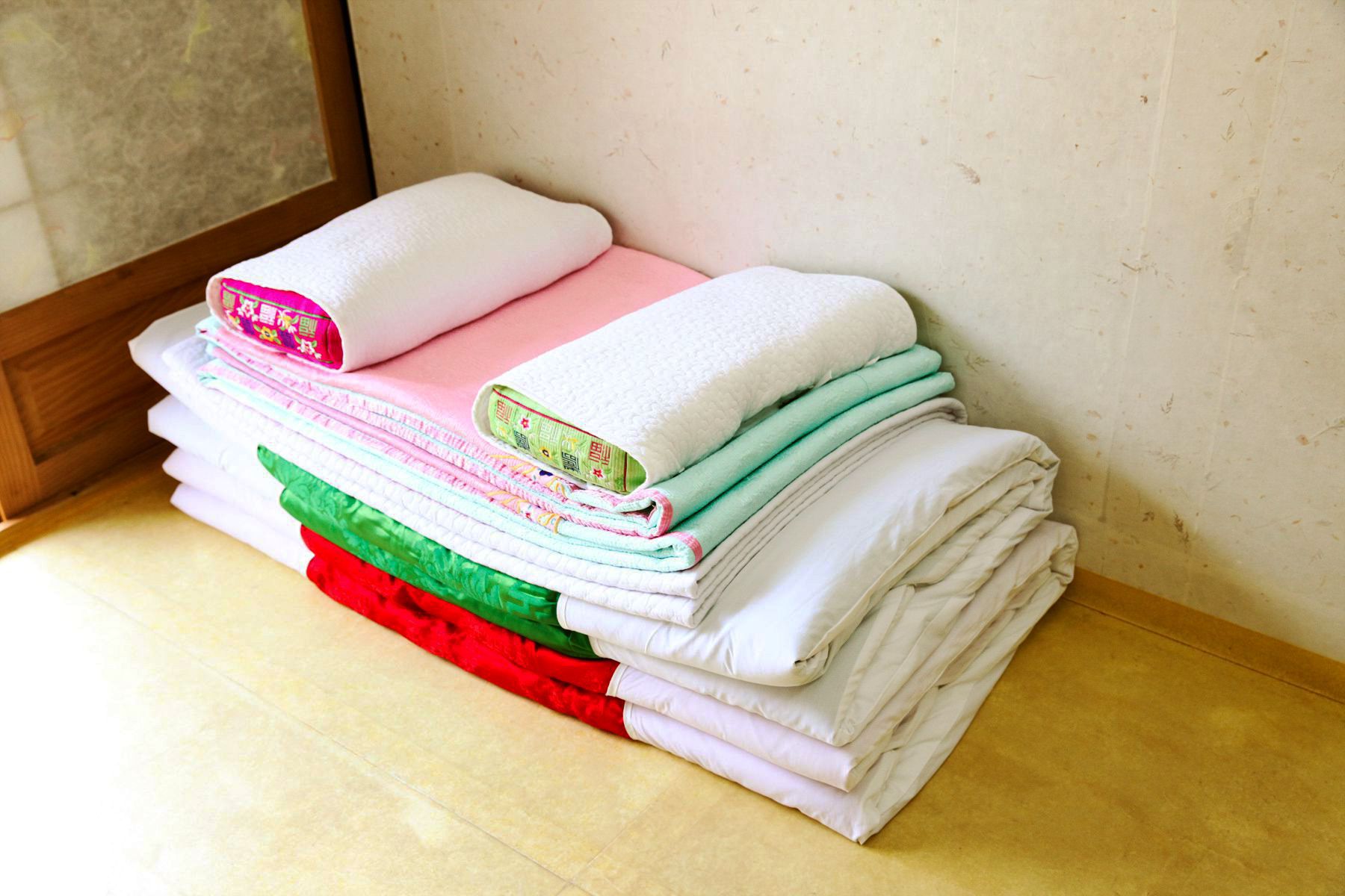 꽃방에 들어서자마자 가지런히 개여있는 이불이 인상적이랍니다.