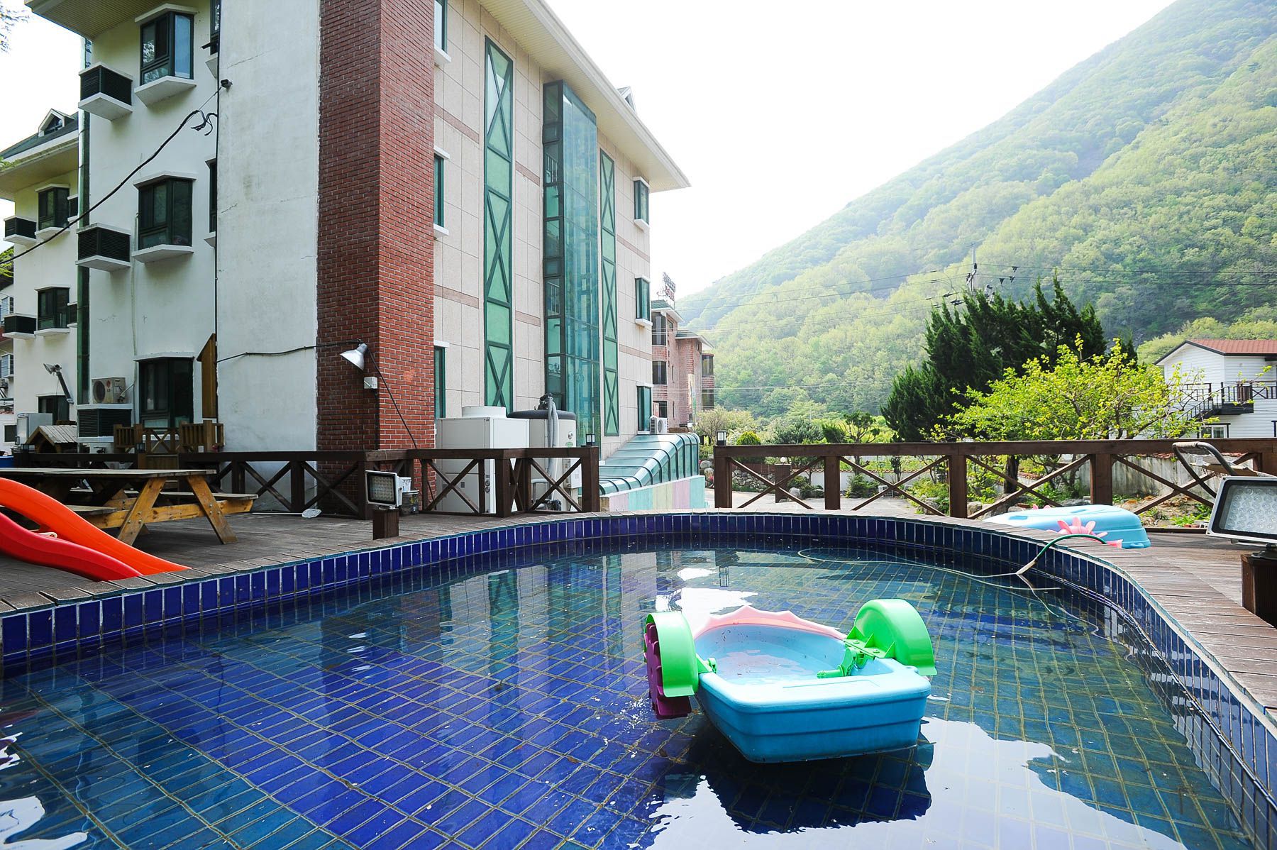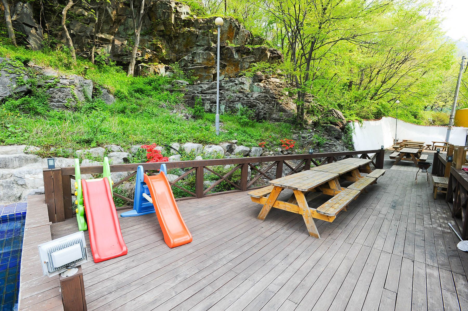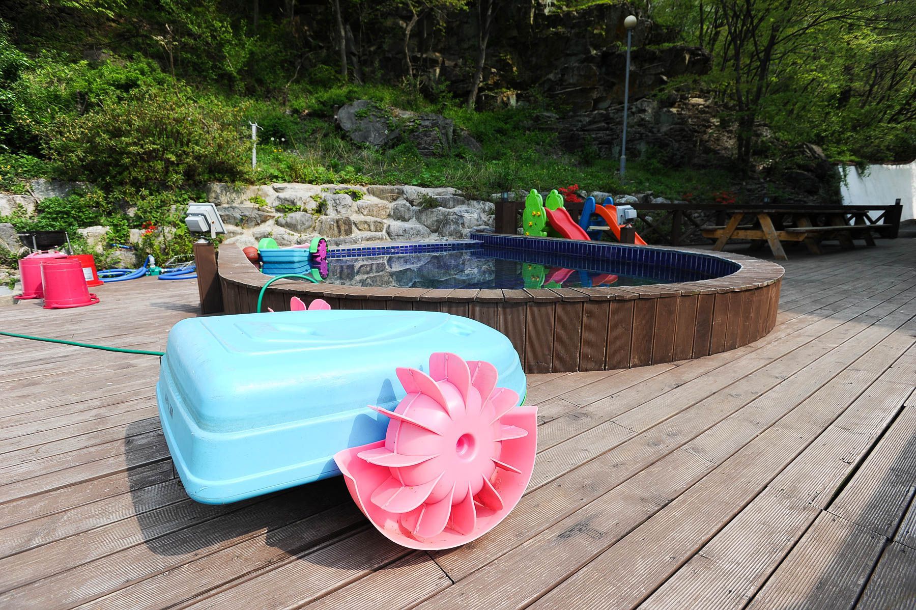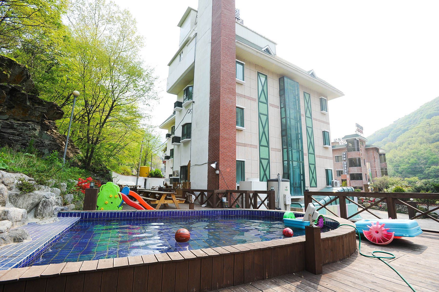산장 뒷편에는 계곡물에서 놀기에 아직 어린 친구들을 위하여,