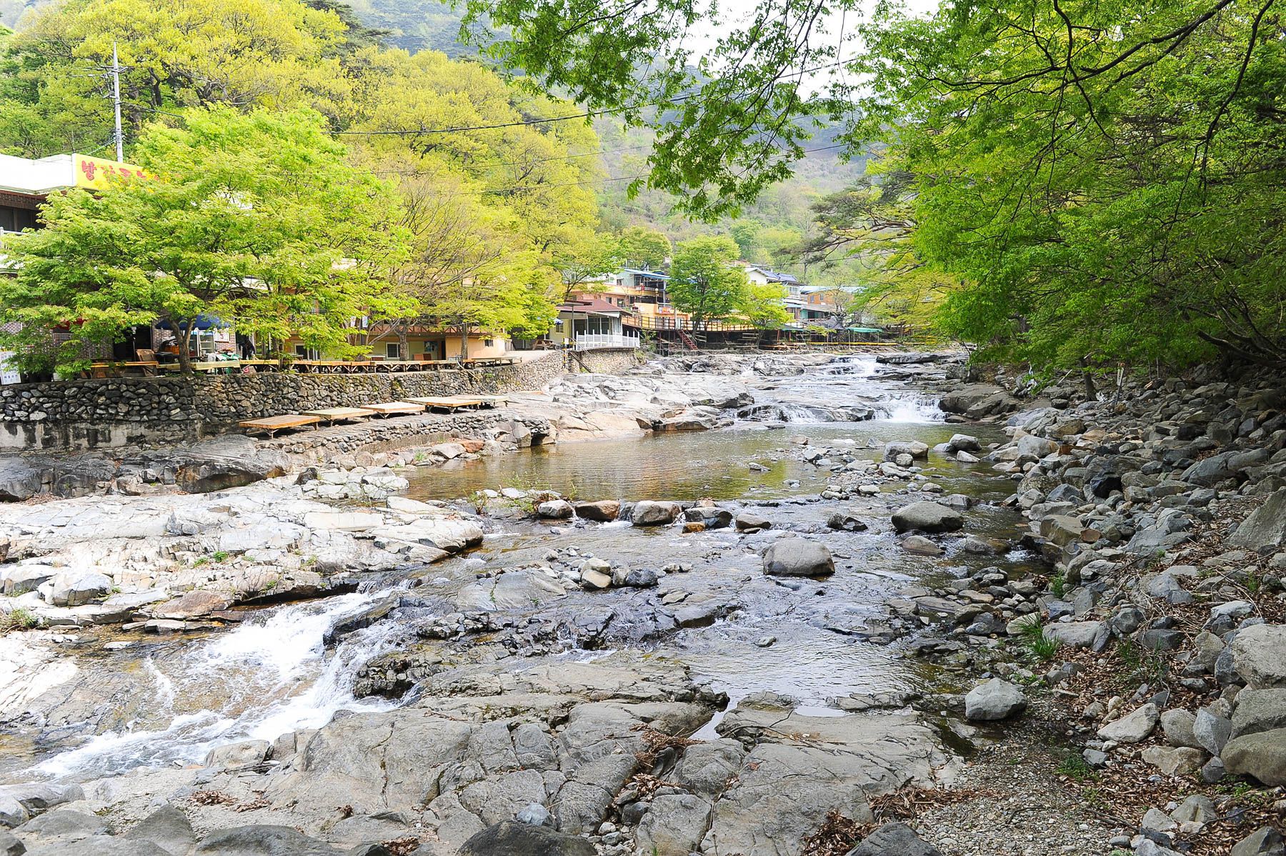 계곡을 따라 캠핑장과 숙박업소들이 들어서 있지요.