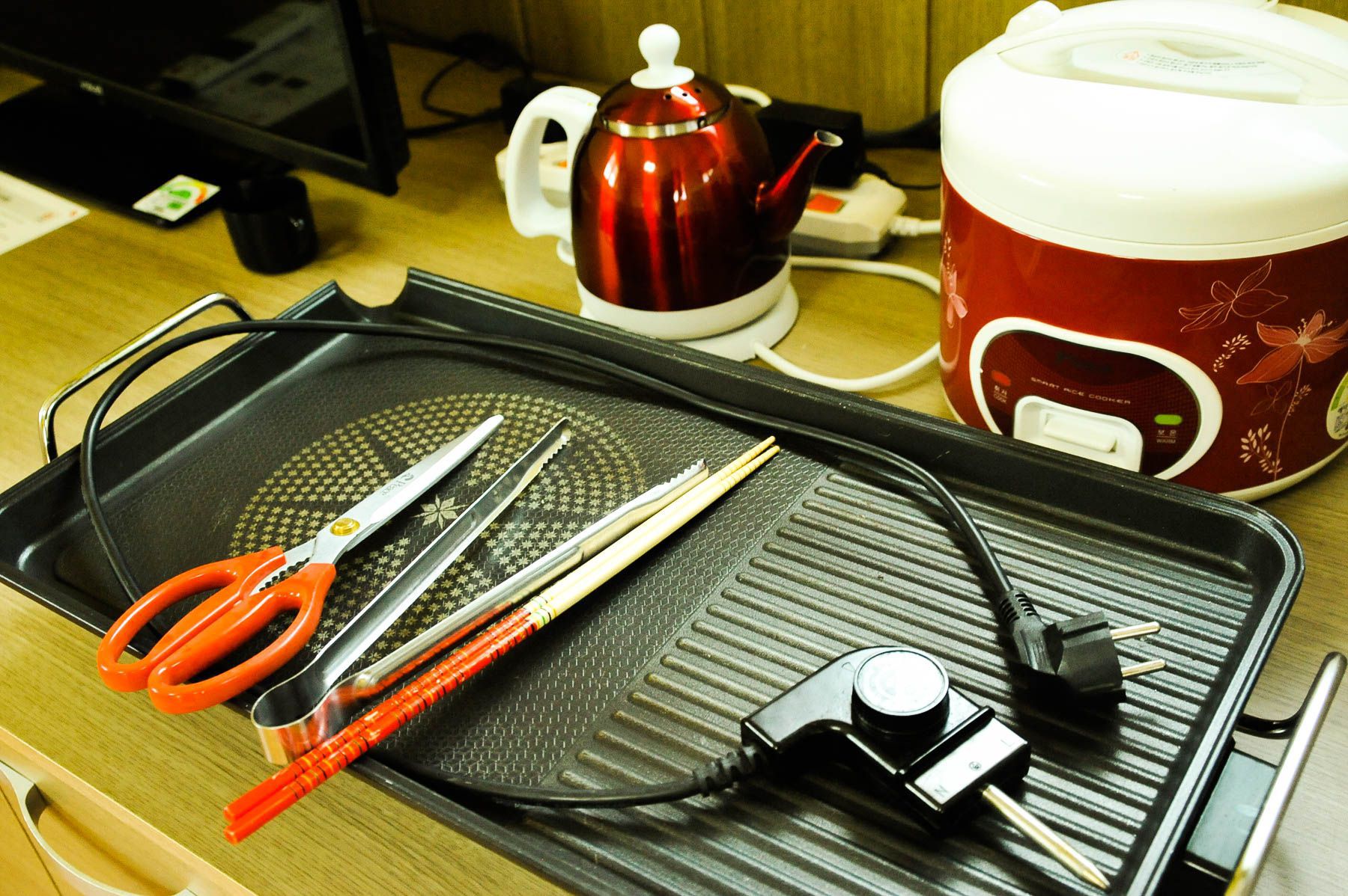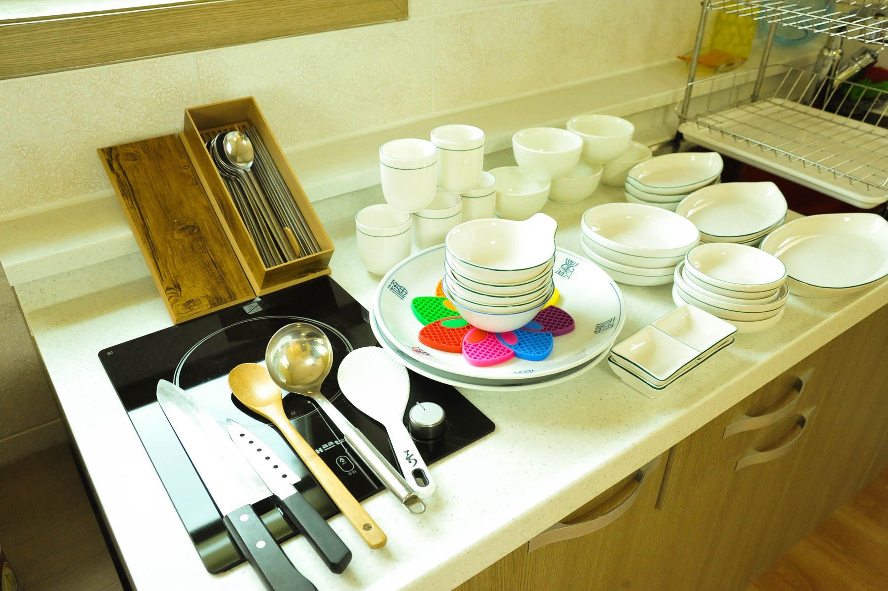 집에서 준비해온 요리를 데우거나 조리가 가능하도록 쿡탑이 설치된 주방이 있습니다.