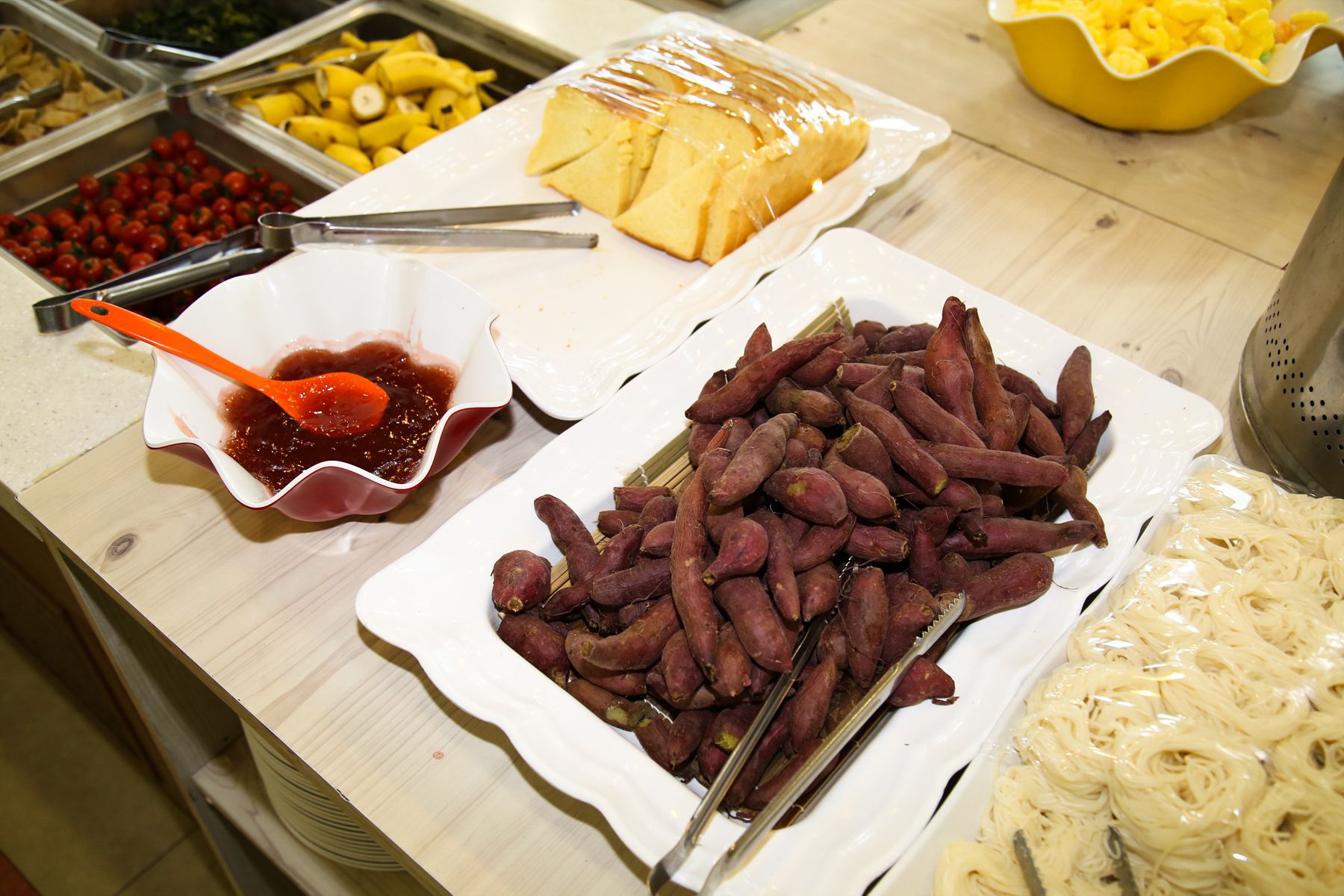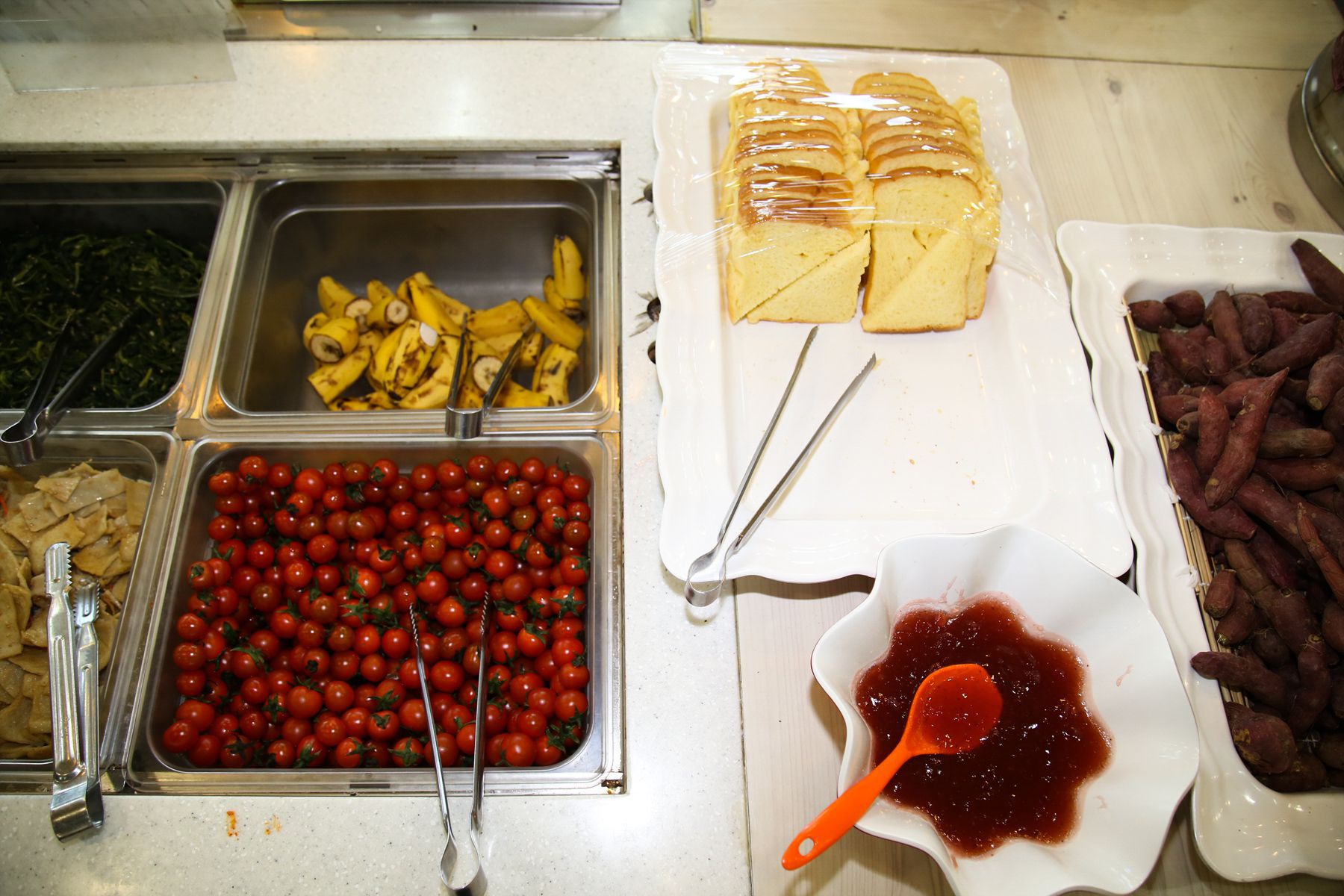 각종 신선한 과일과 토스트,과자류, 달달한 고구마까지 다양하게 준비되어있답니다.