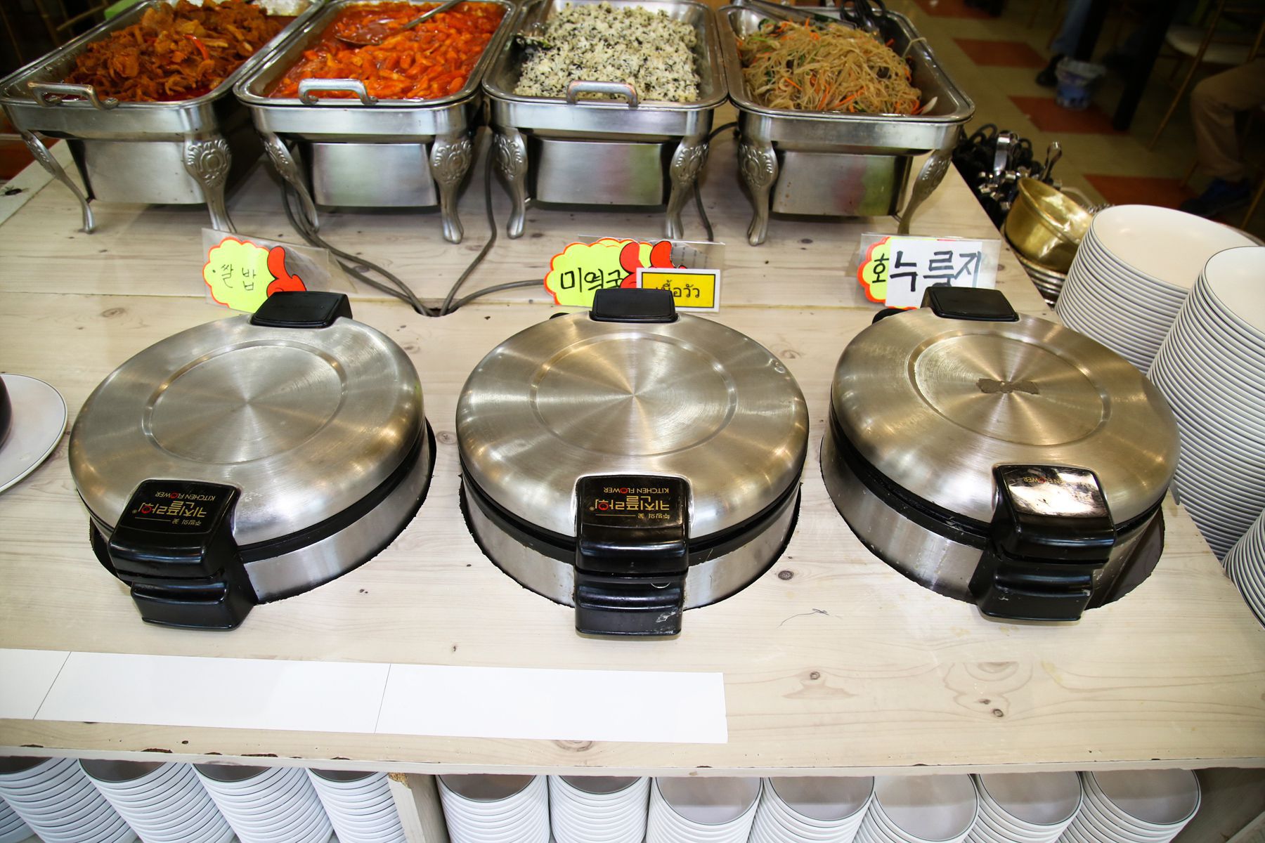 밥과 함께 미역국,누룽지를 비롯해 아이들이 좋아하는 소세지,떡볶이등 준비되어있으며 고기와 함께 드시면 맛 좋은 신선한 채소들도 한켠에 마련되어있답니다.