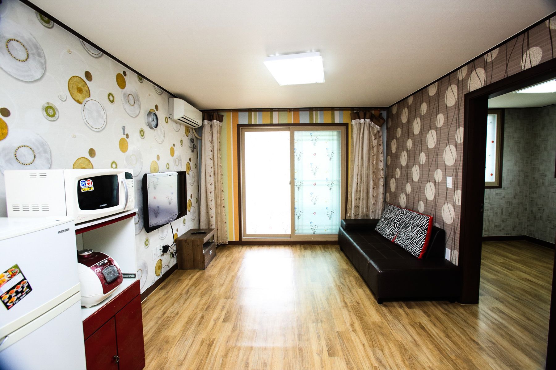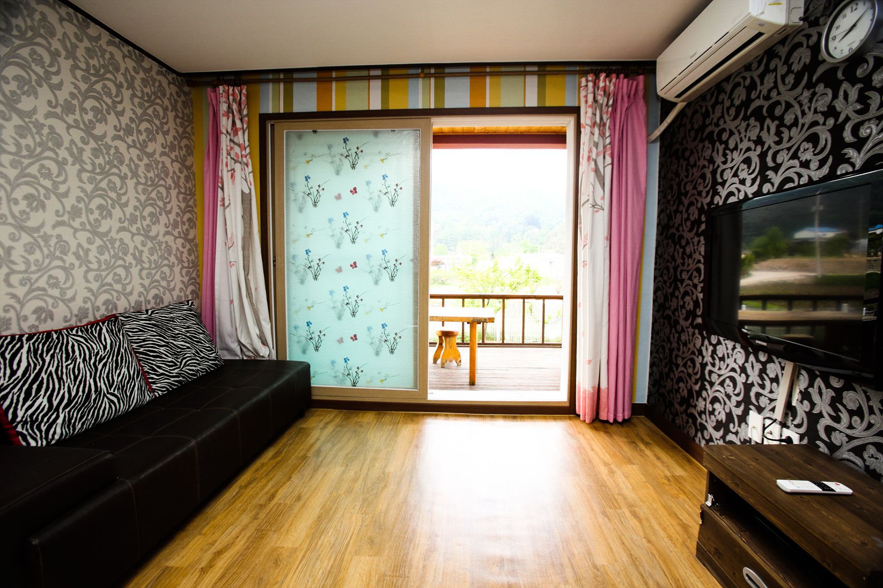 인원 4명 최대 7명까지 머물 수 있는 들꽃객실은 투룸으로 구성되어있으며