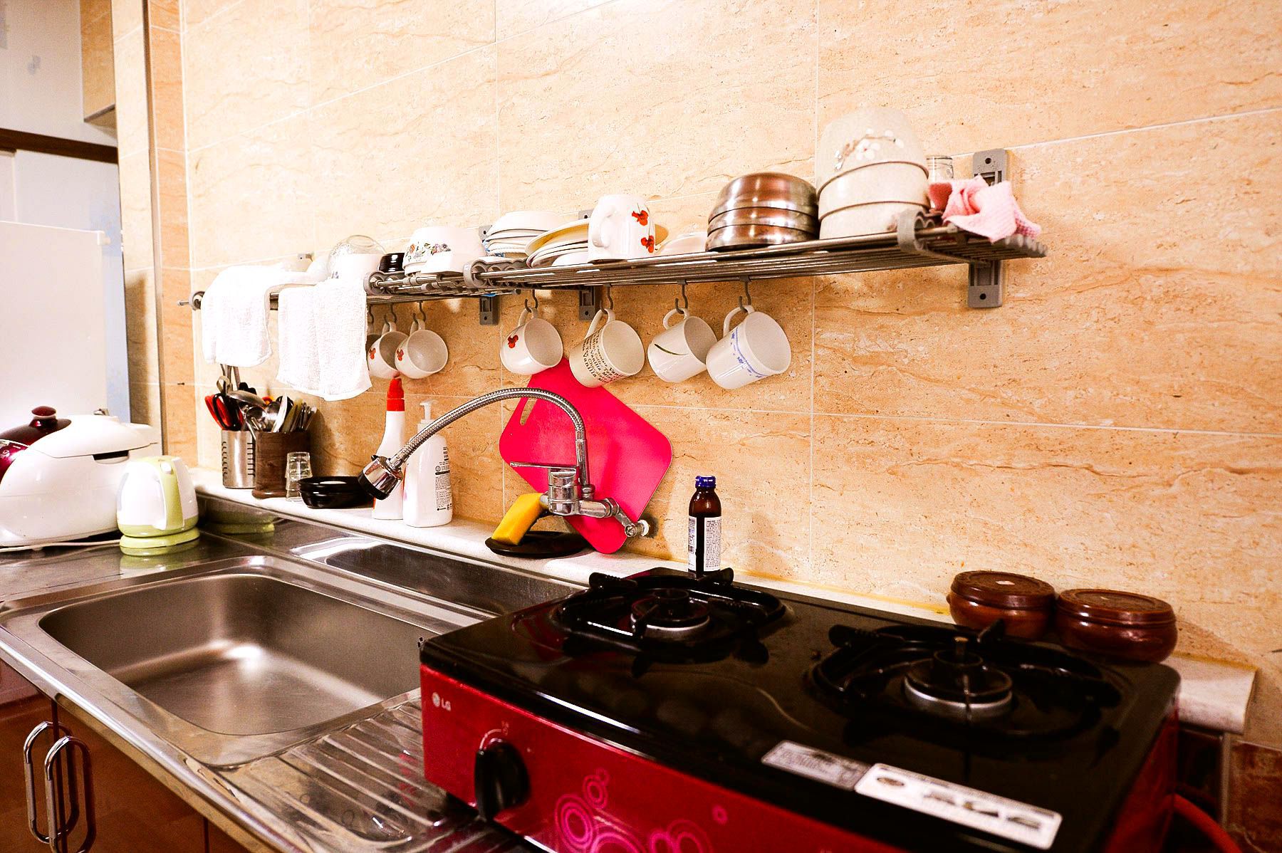 위생적고 깔끔한 식기류는 넉넉하게 준비되어 있고 청결하고 뽀송한 침구류는