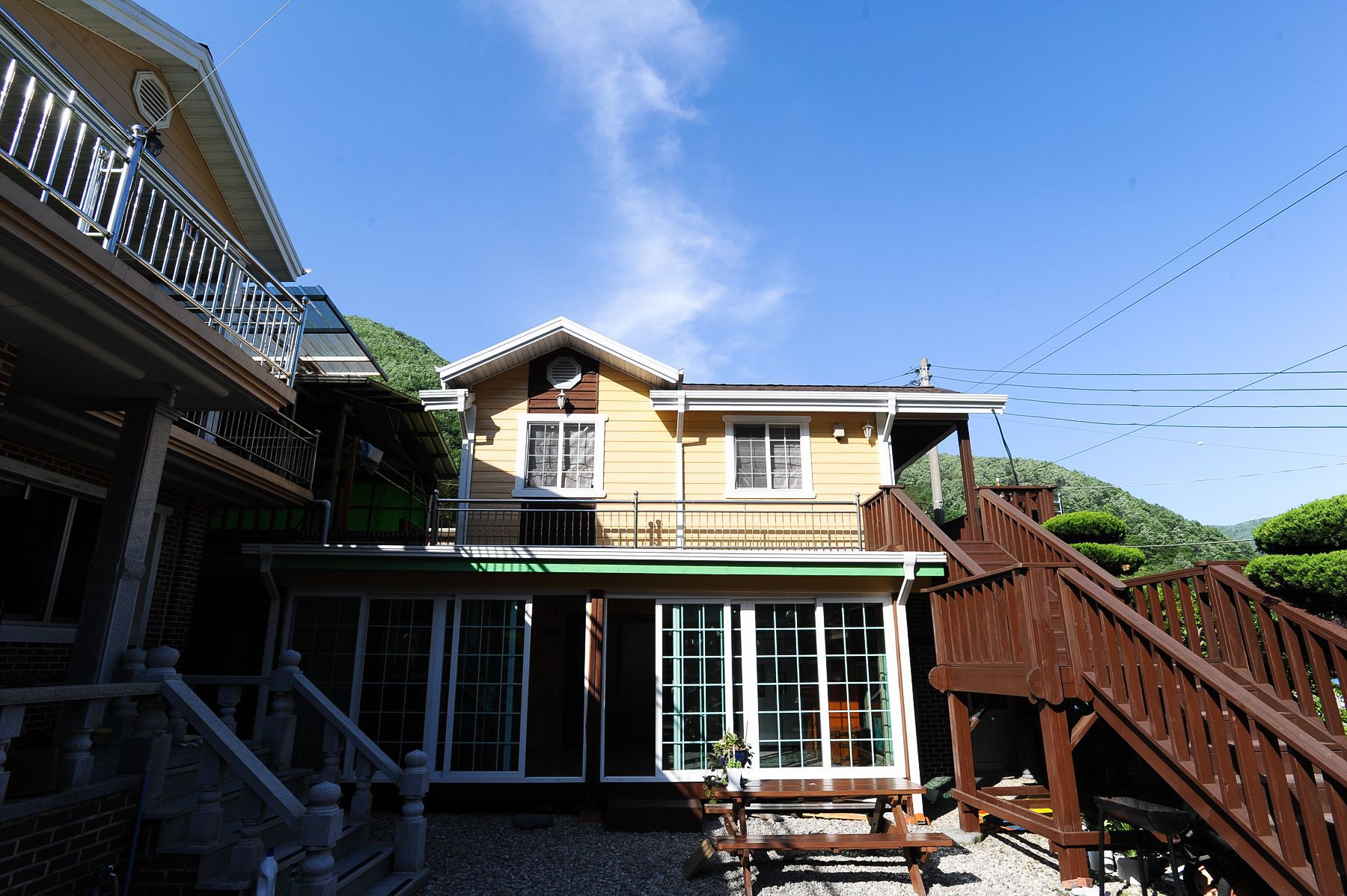 편션앞을 흐르는 그린계곡은 맑고 깨끗해 청량감을 주고 여름엔 더할나위 없이 시원합니다.
