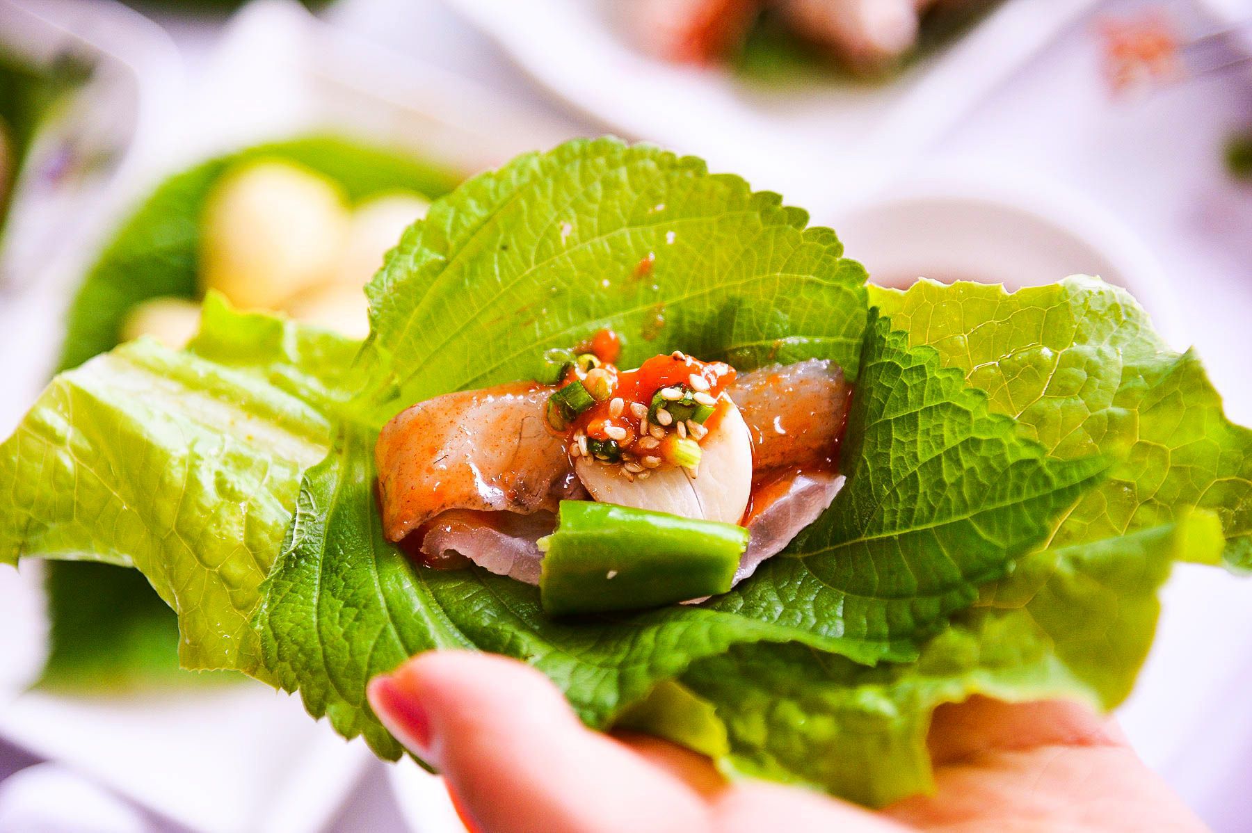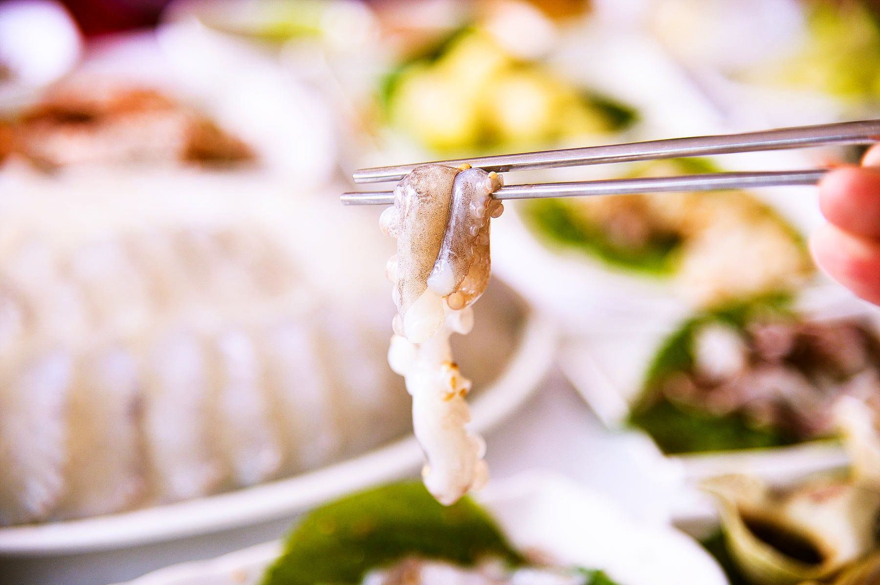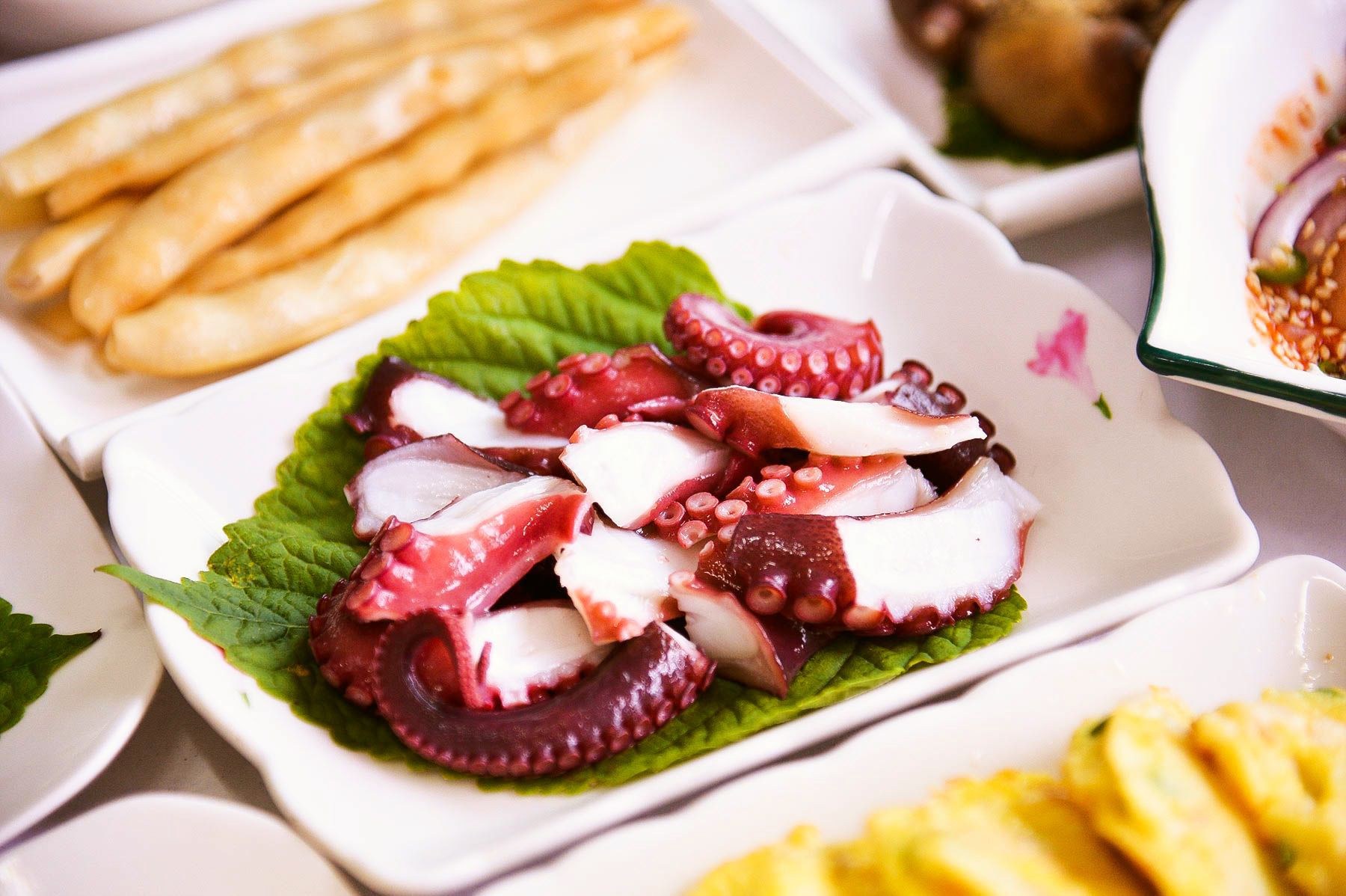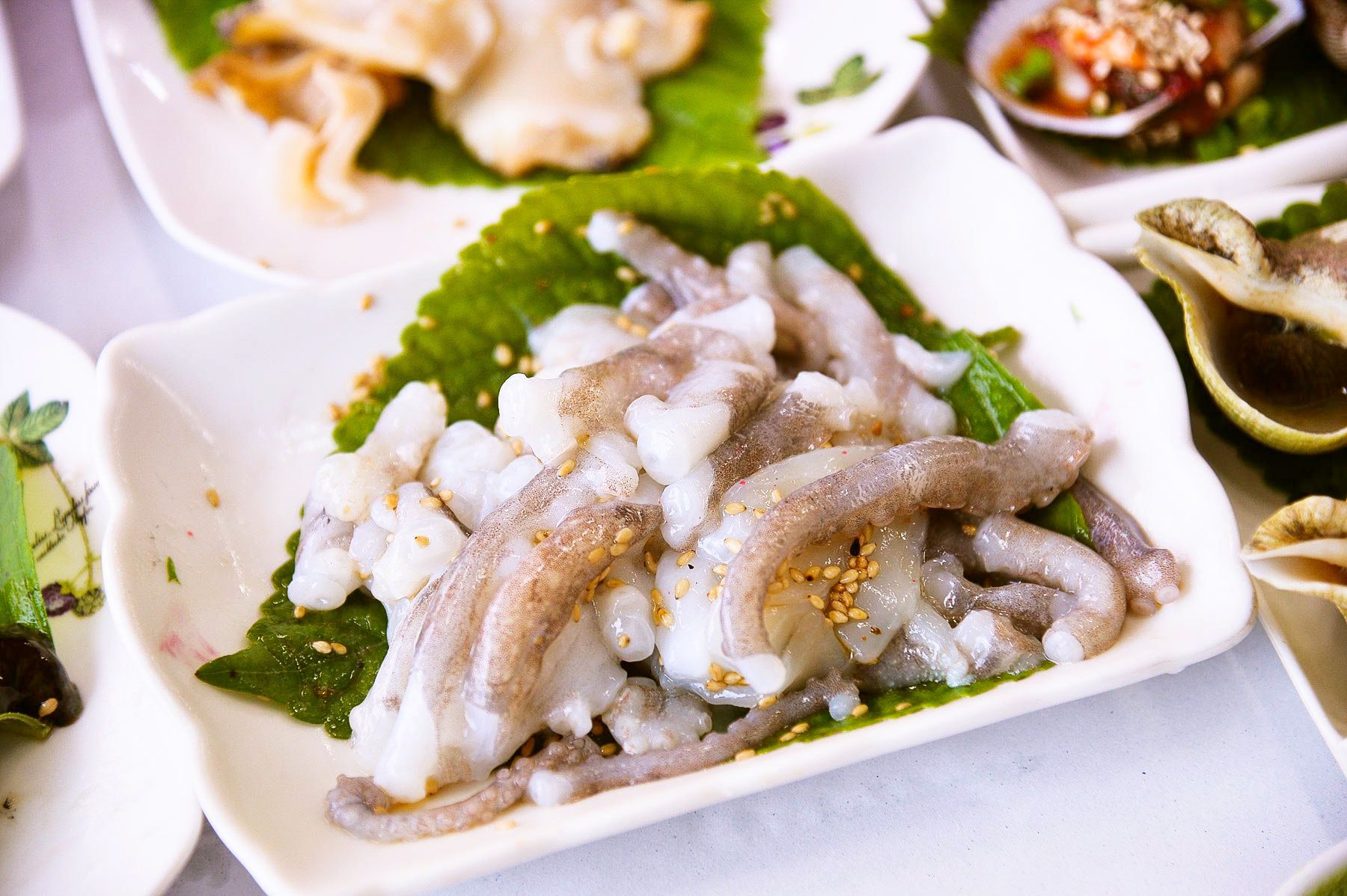 쫄깃쫄깃한 낙지, 질기지 않고 잘 데쳐진 문어숙회,전혀 비리지 않고 향긋한 멍게, 오독오독한 식감이 좋은 전복,