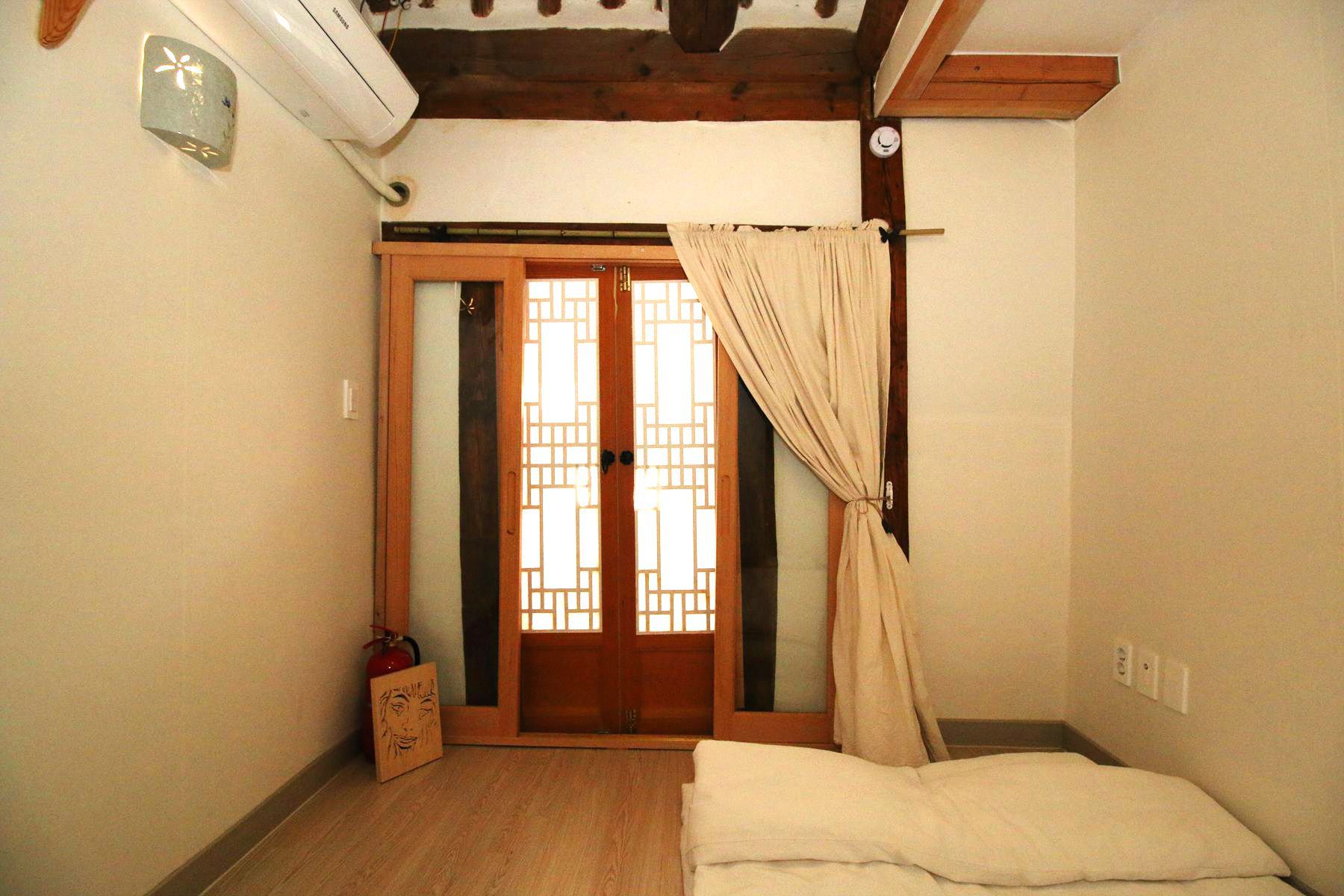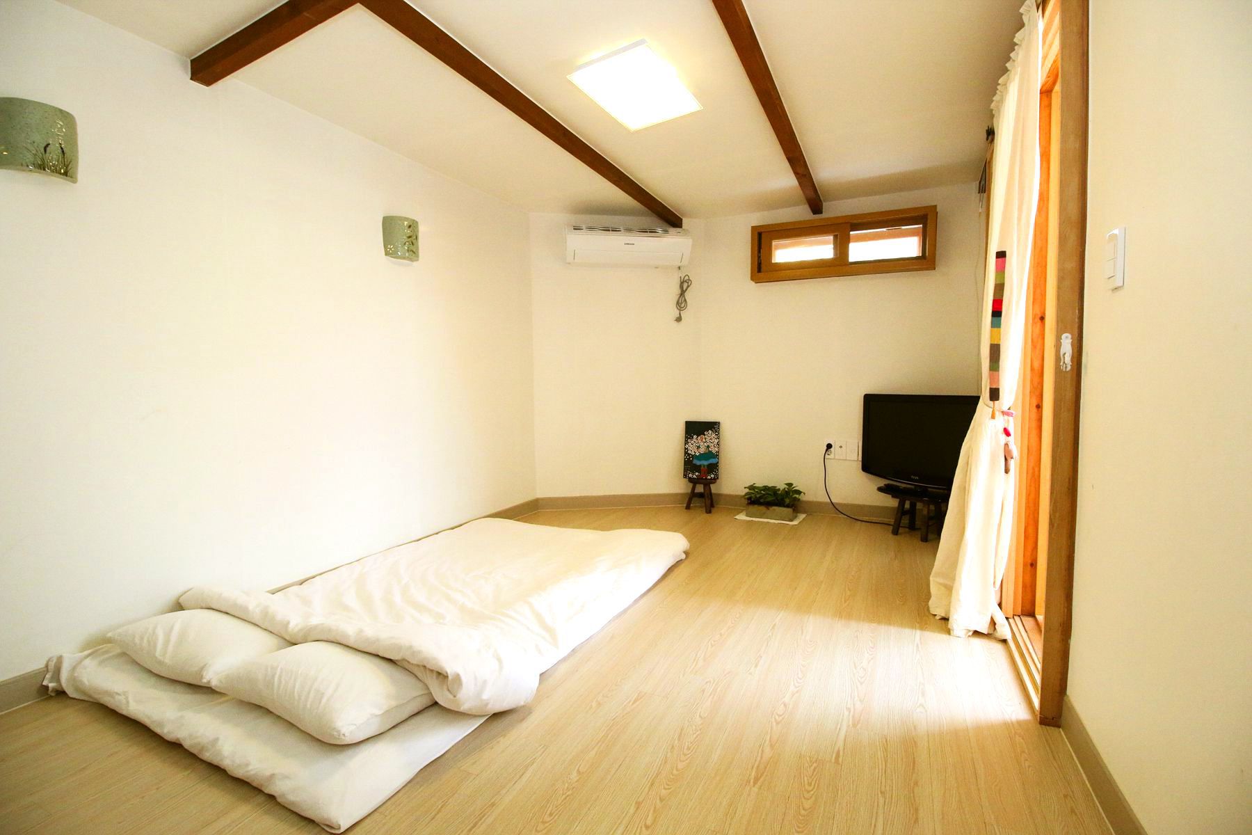 '그림게스트하우스'는 객실들이 온돌방이지만 매트리스에 가까운 푹신함을 느낄 수 있는 두툼하고 깨끗한 광목 이불이 준비되어있으며,