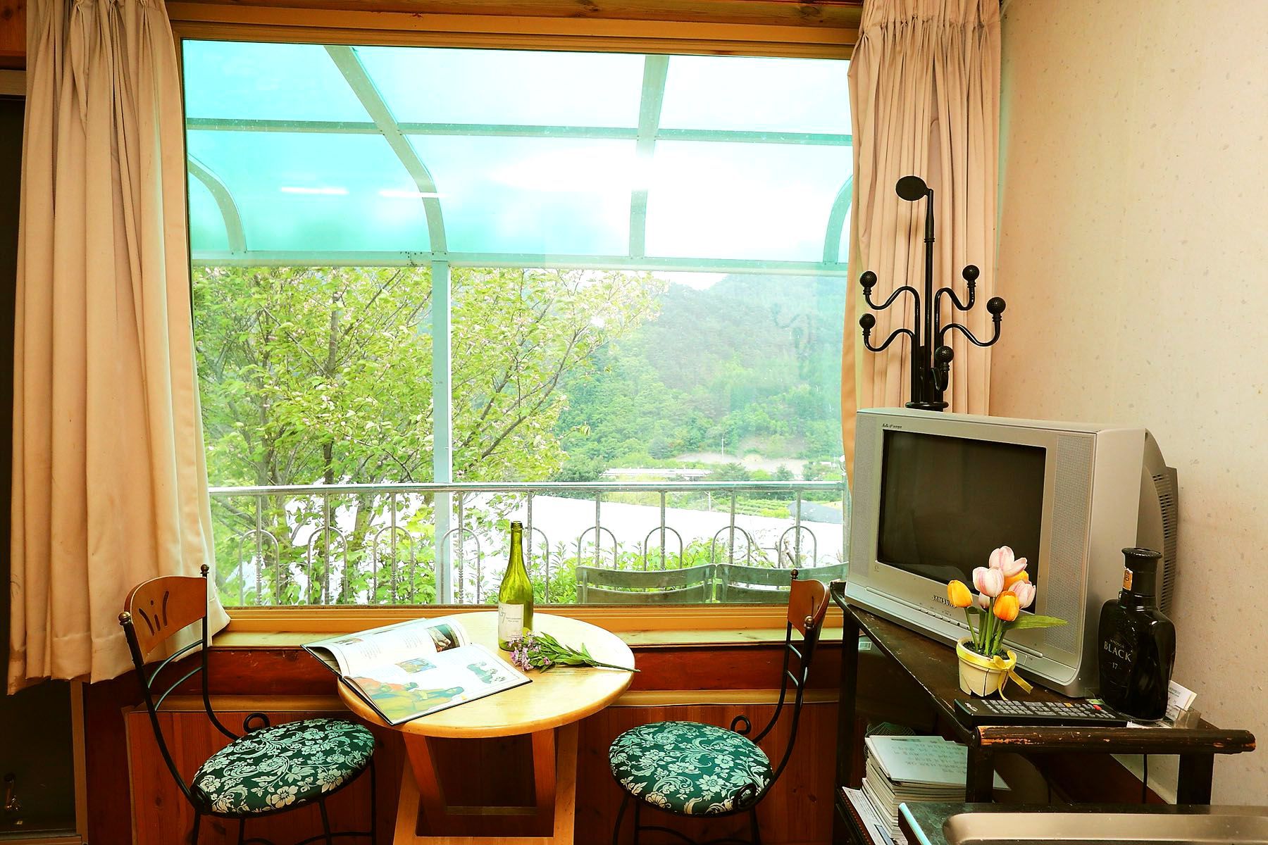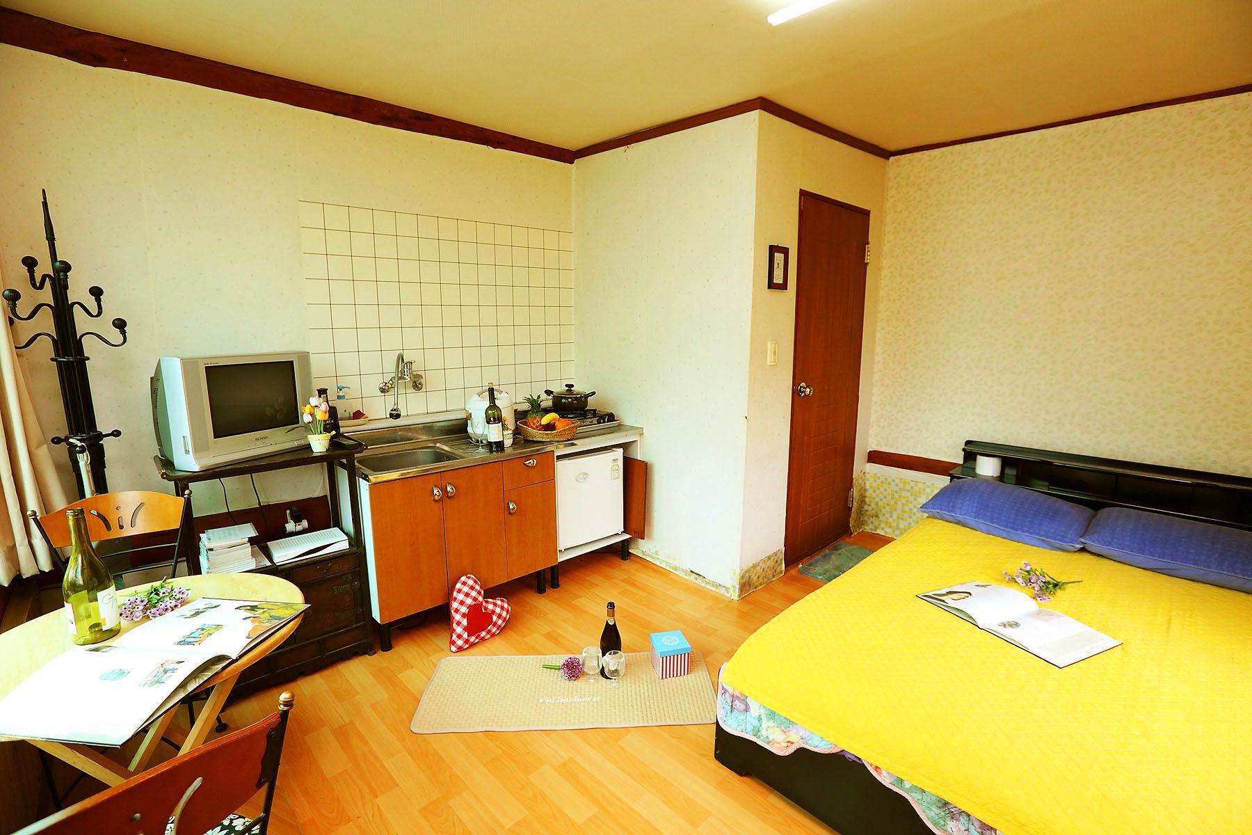 깨끗하고 깔끔한 원룸형 객실이며 외부 바베큐 가능합니다.