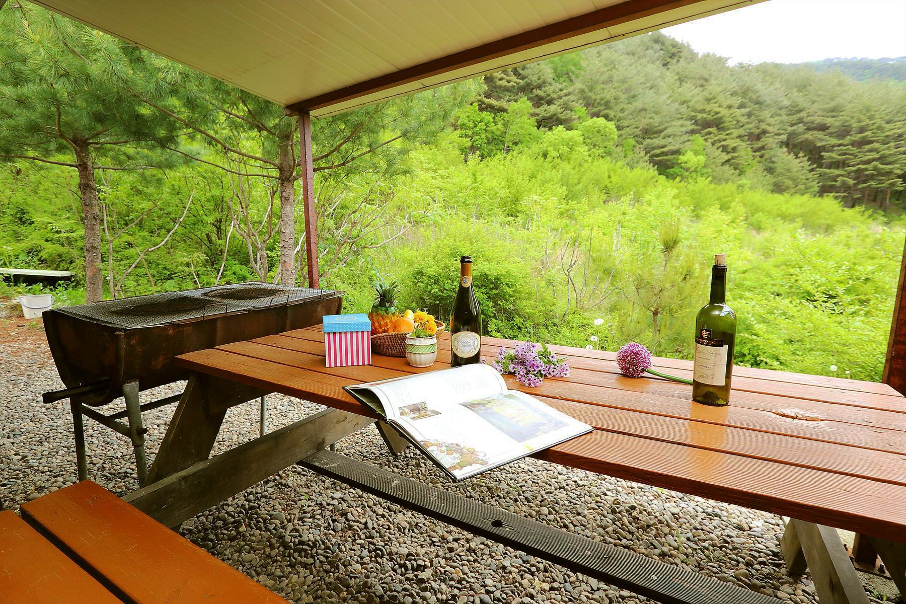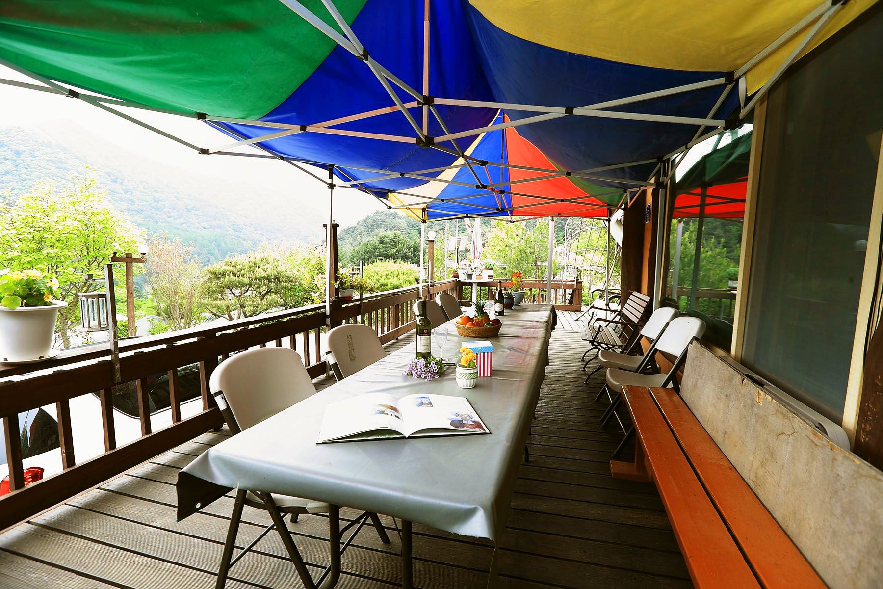 옥외 바베큐를 즐기시면서 족구, 배구, 배드민턴, 캄프파이어 등 위락시설을 항시 이용할 수 있어