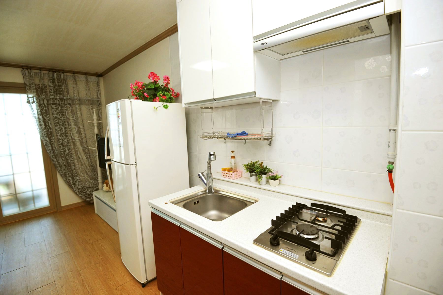 간단히 요리할 수 있게 전기밥솥,가스렌지,후라이팬,냄비등이 준비되어 있으며