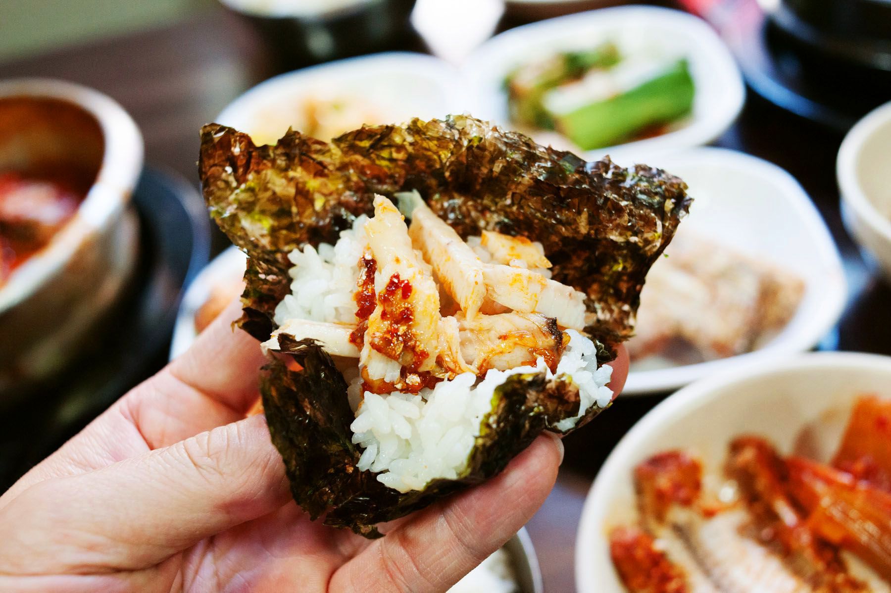 김 위에 고슬고슬 밥을 얹어 갈치조림 싸서 먹으면 그 맛도 정말 예술입니다.